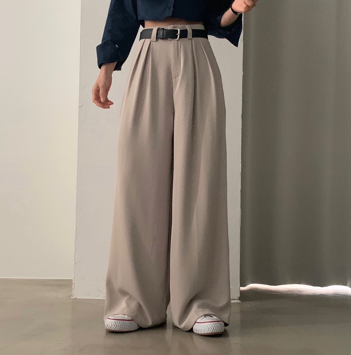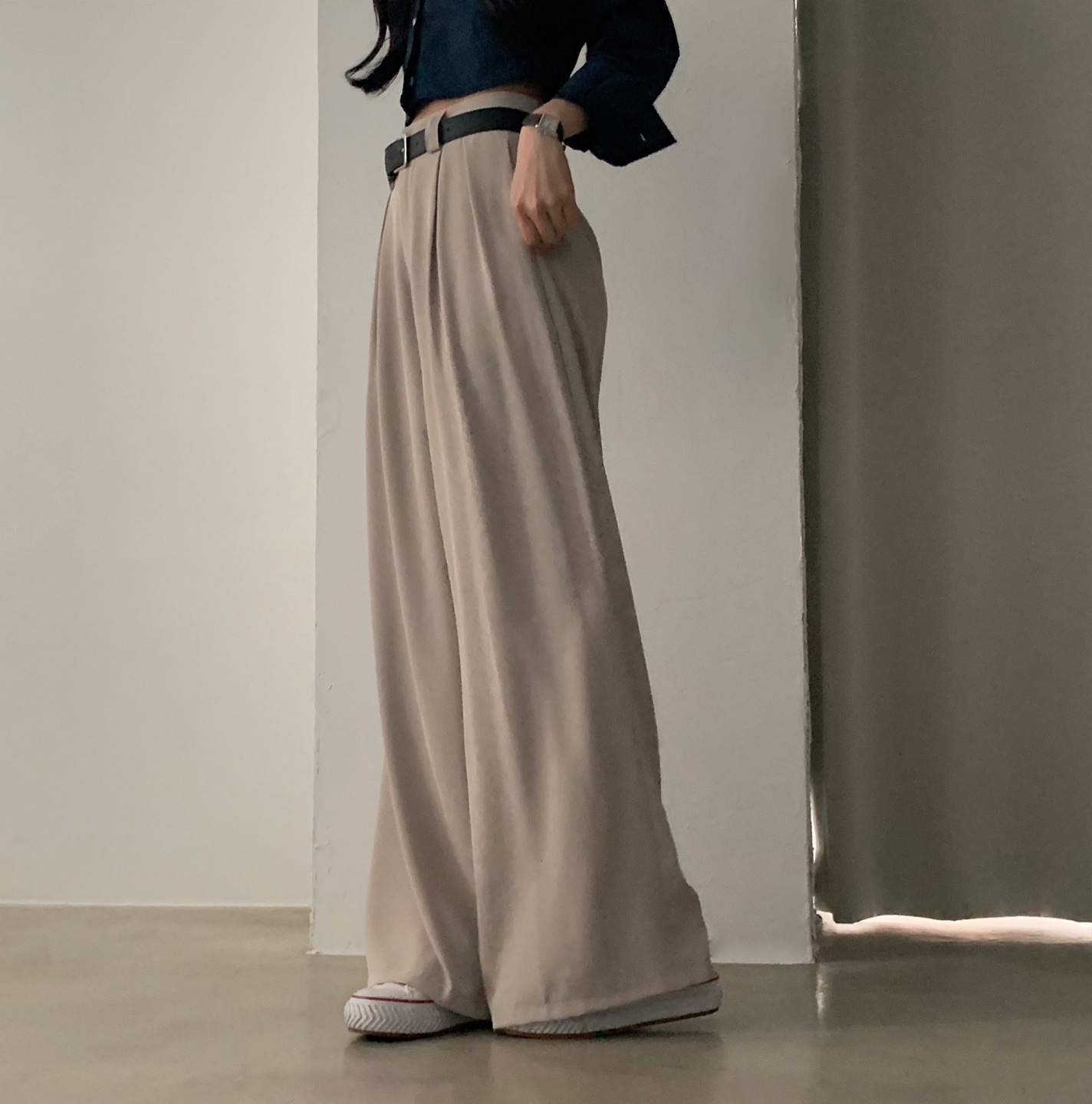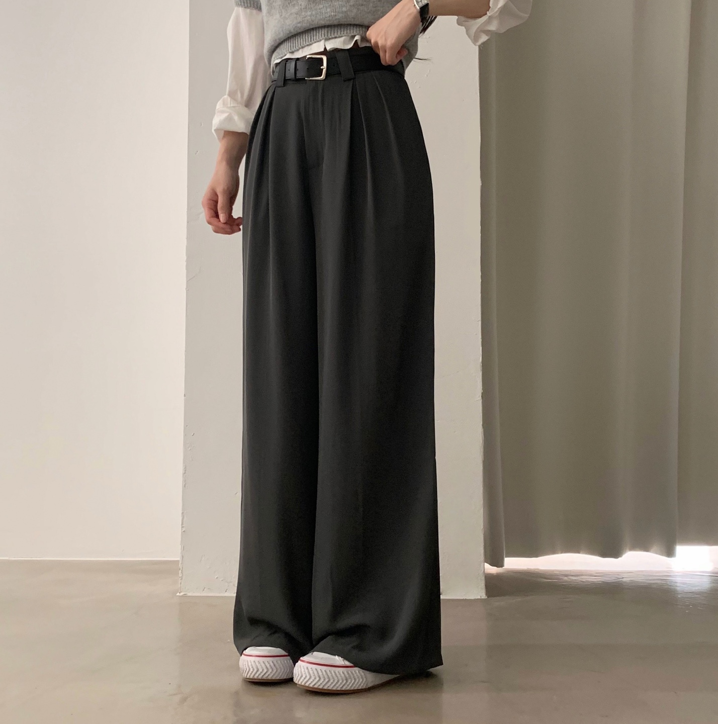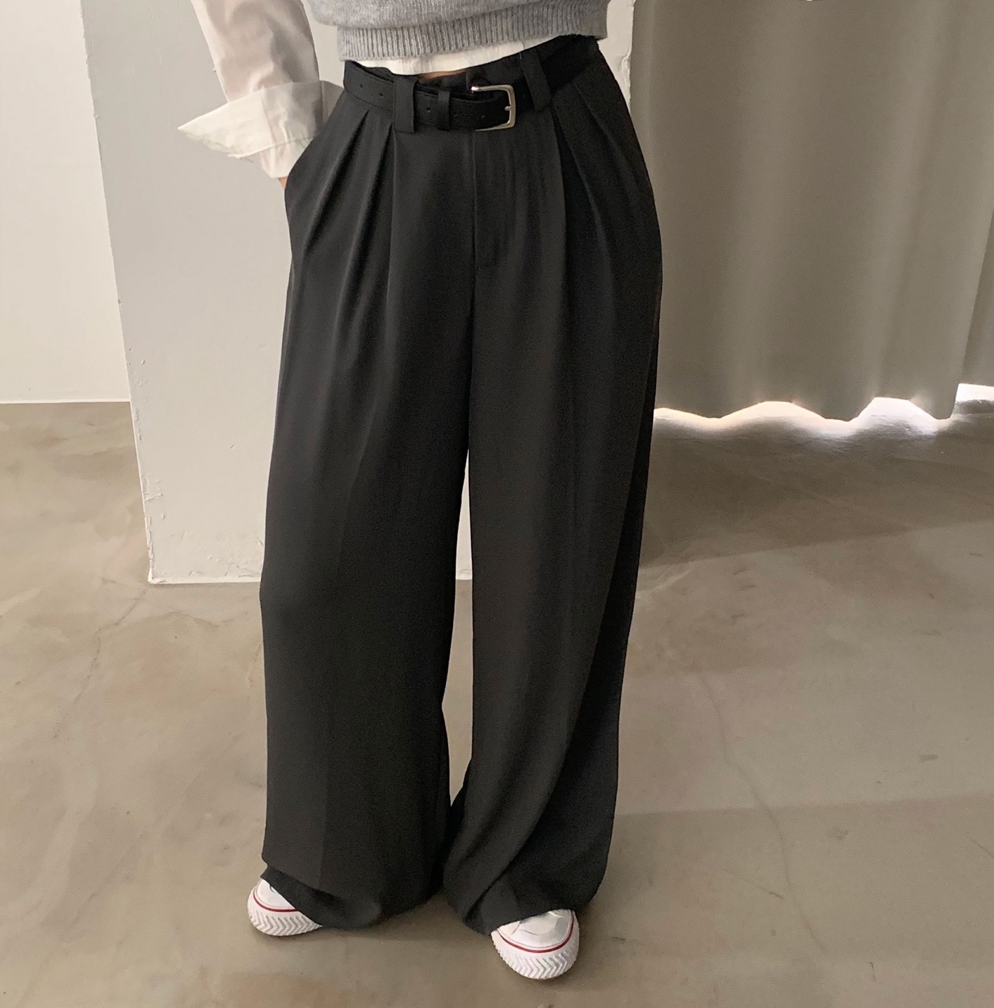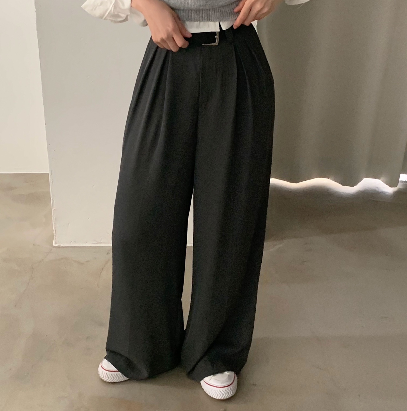 タック入りロングワイドスラックスパンツ-3color