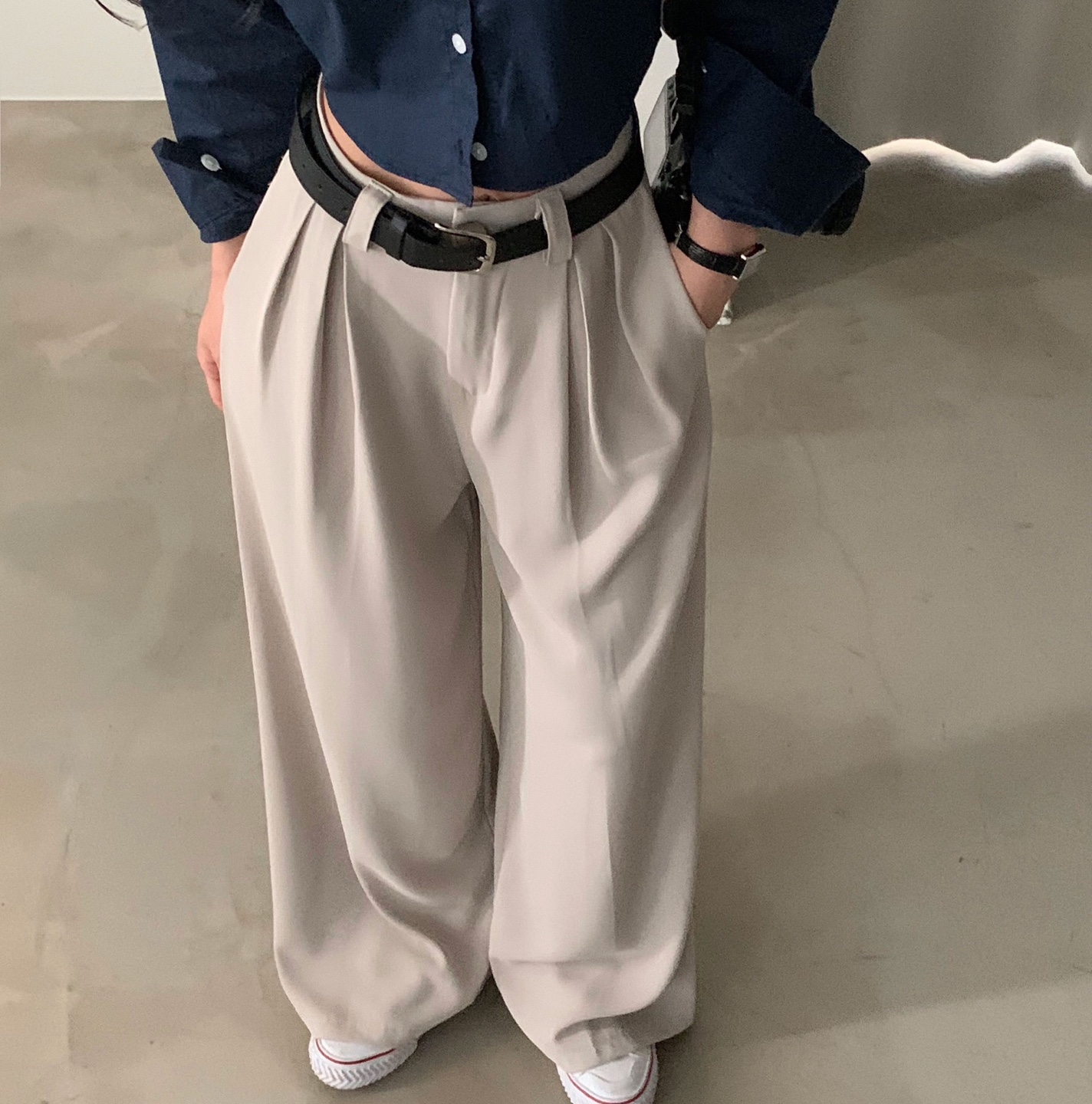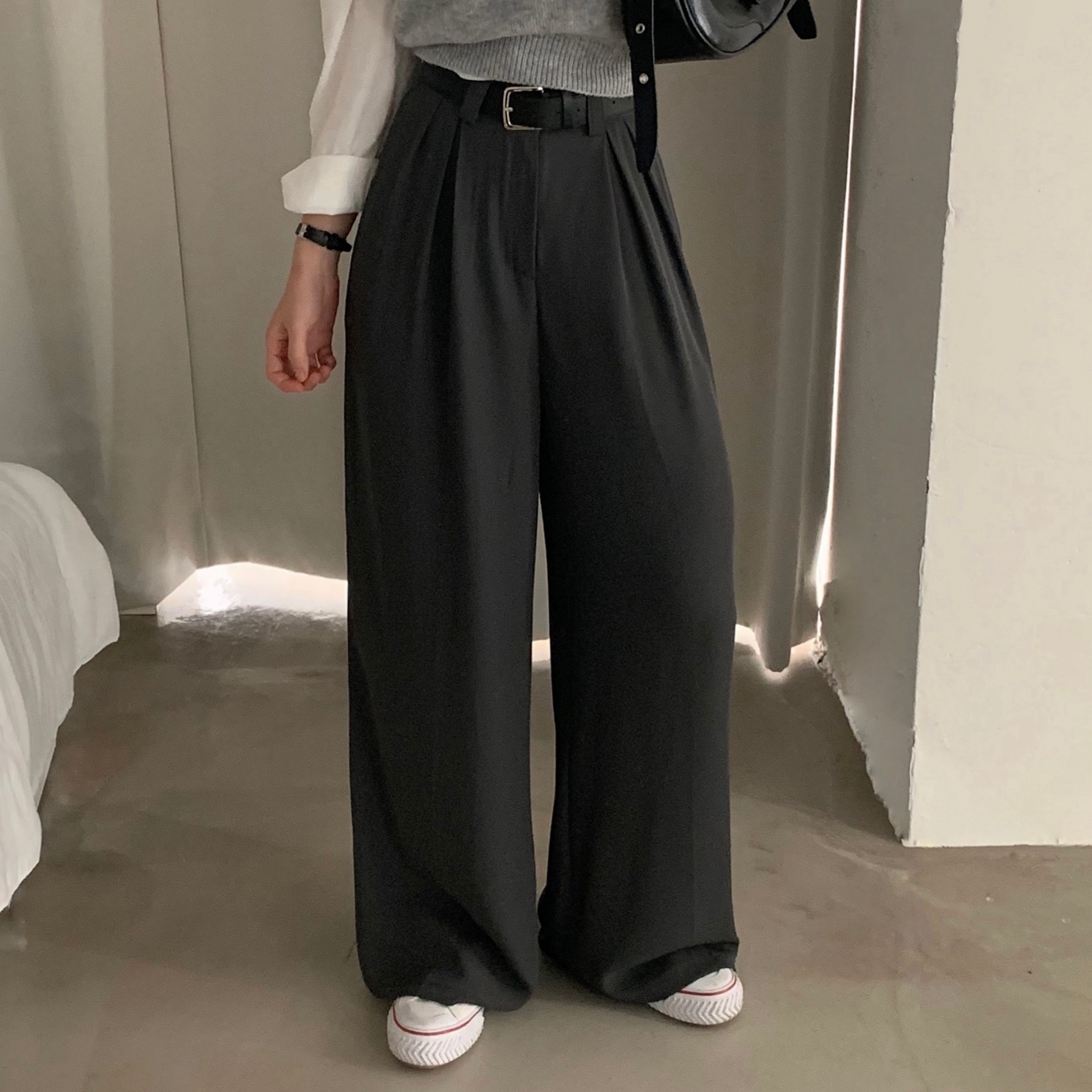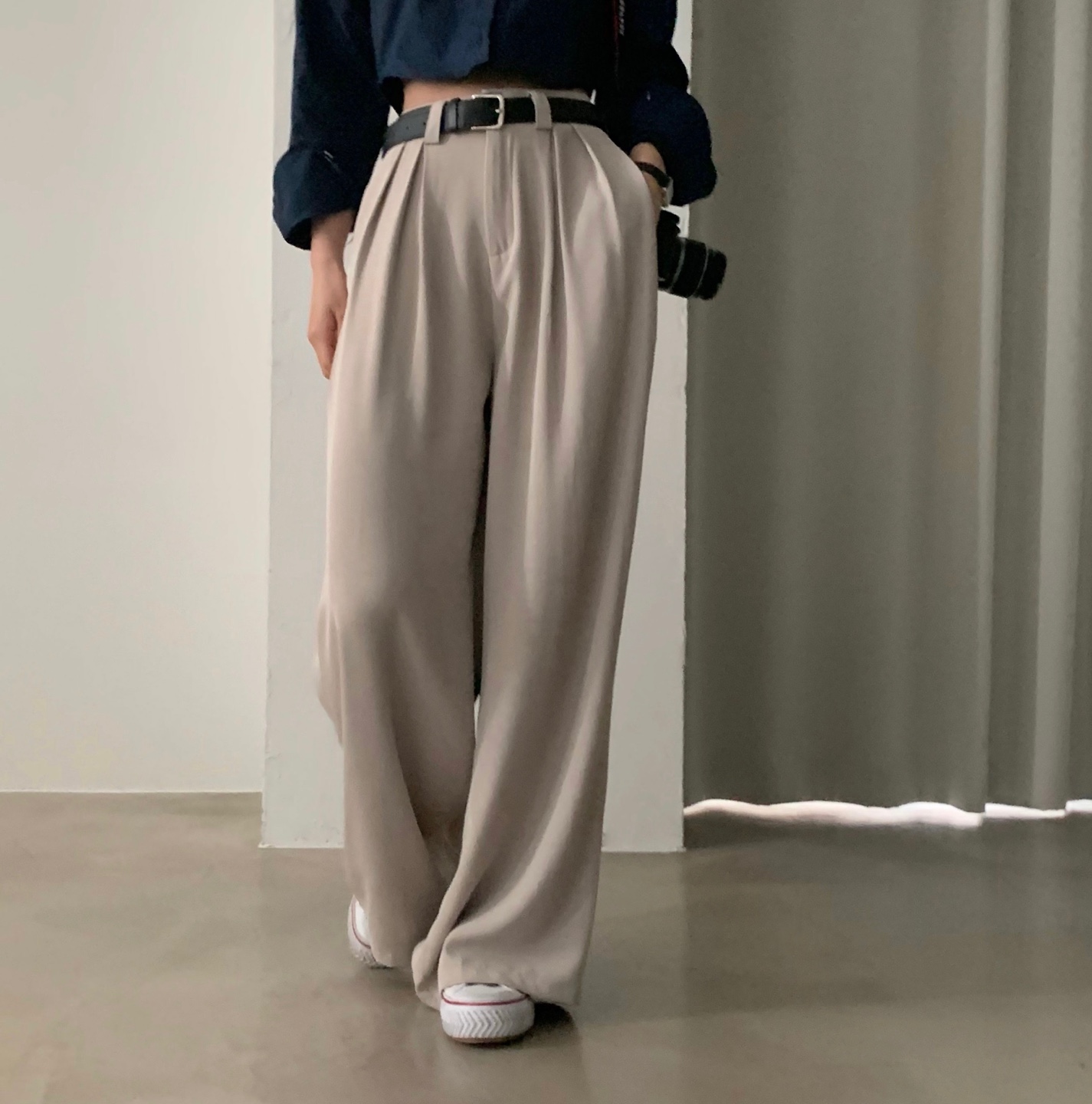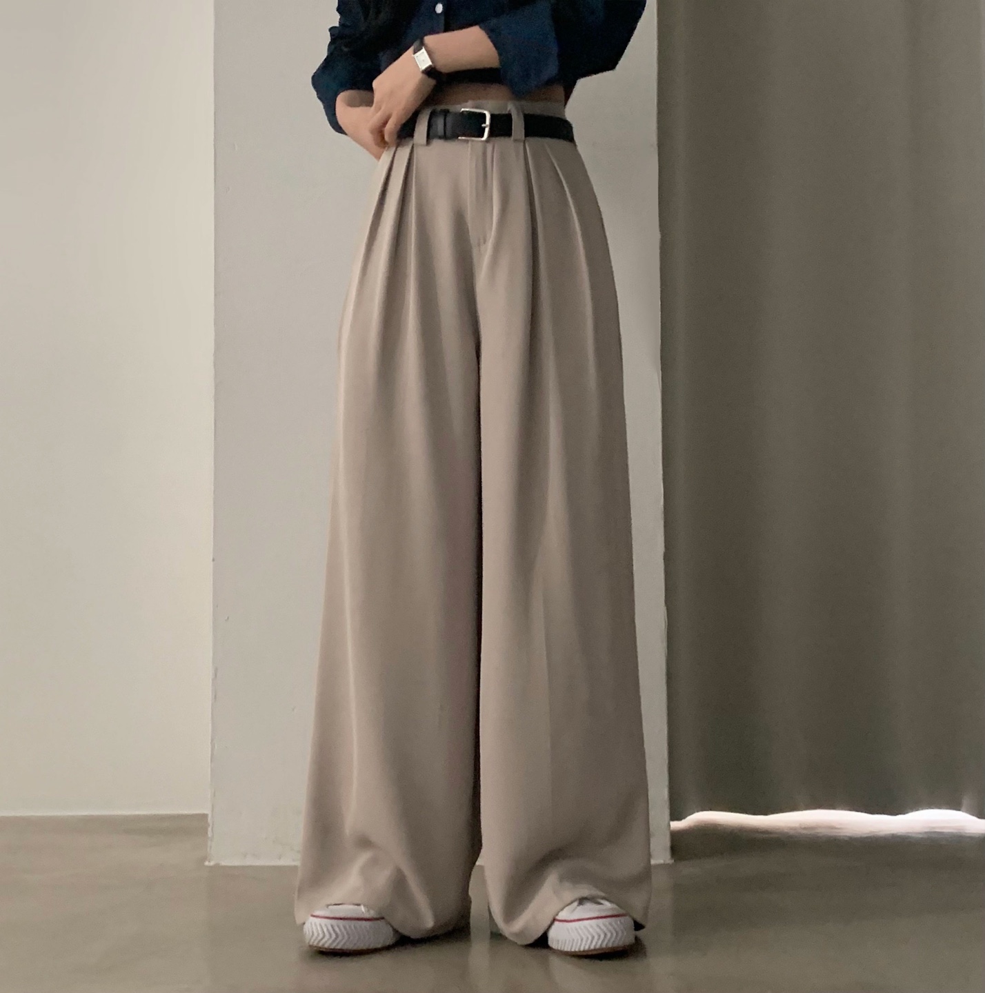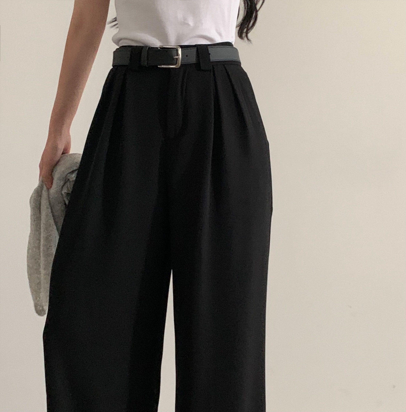 タック入りロングワイドスラックスパンツ-3color