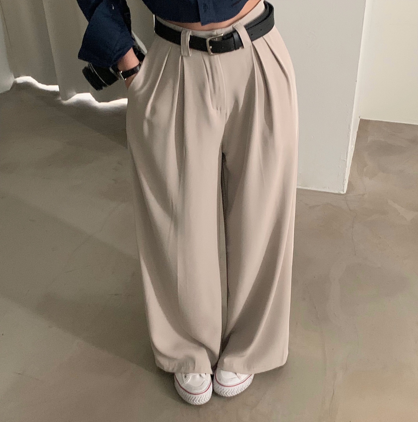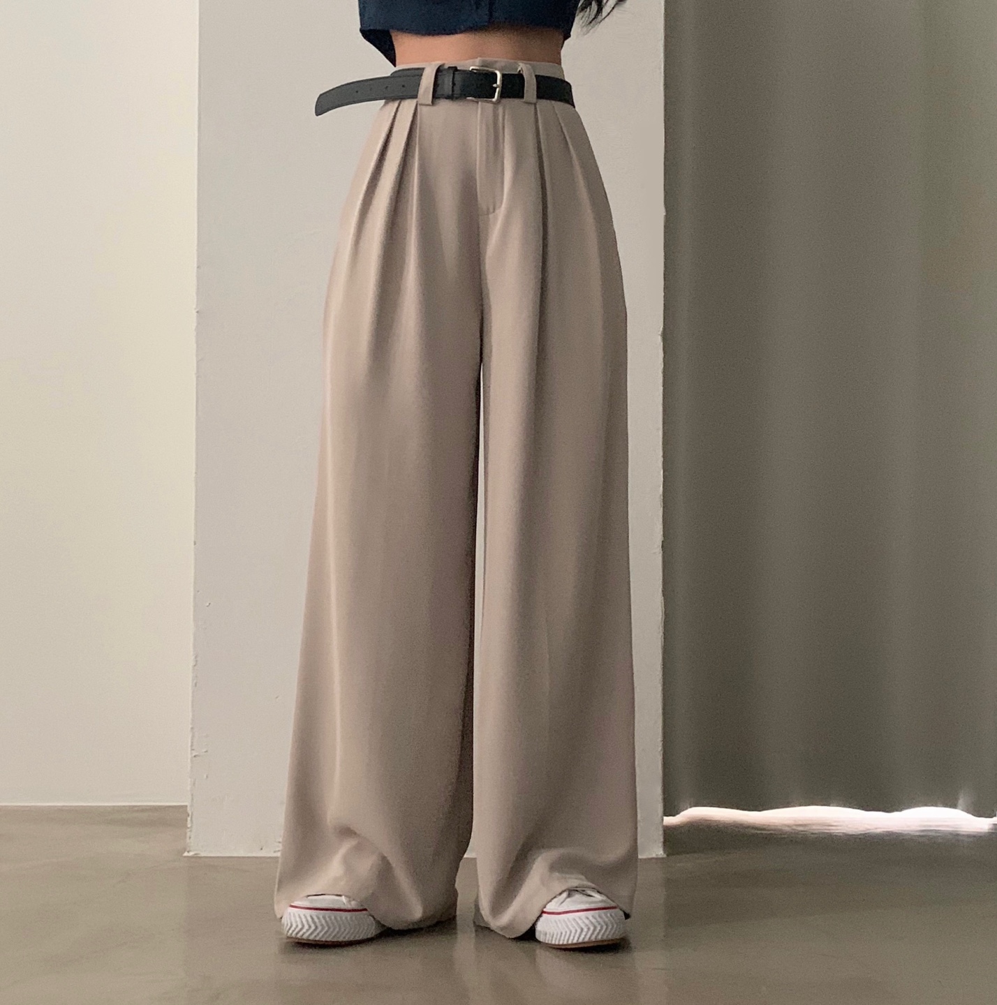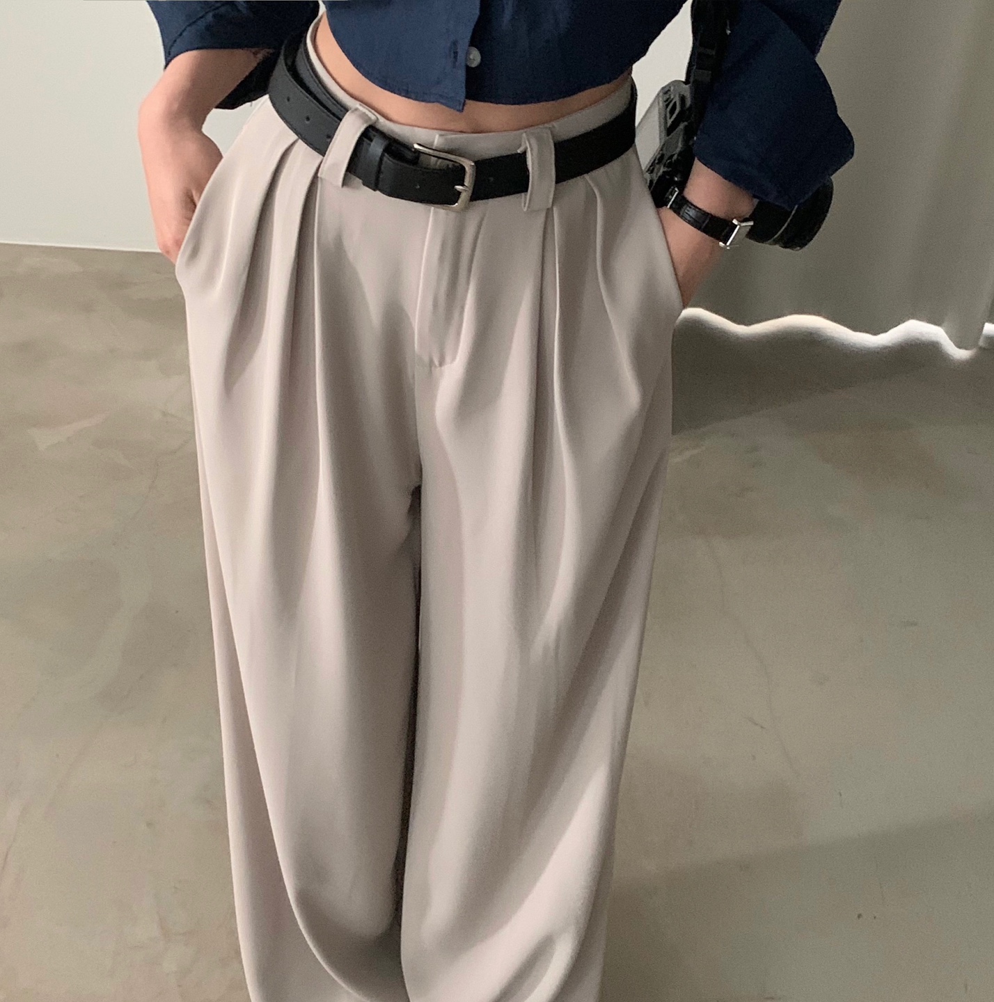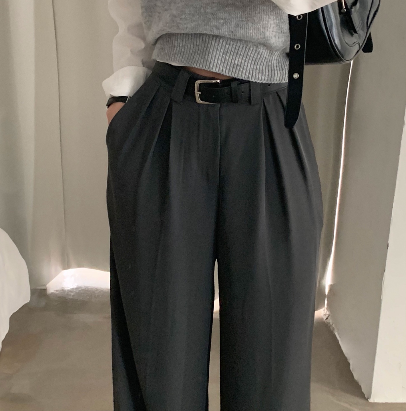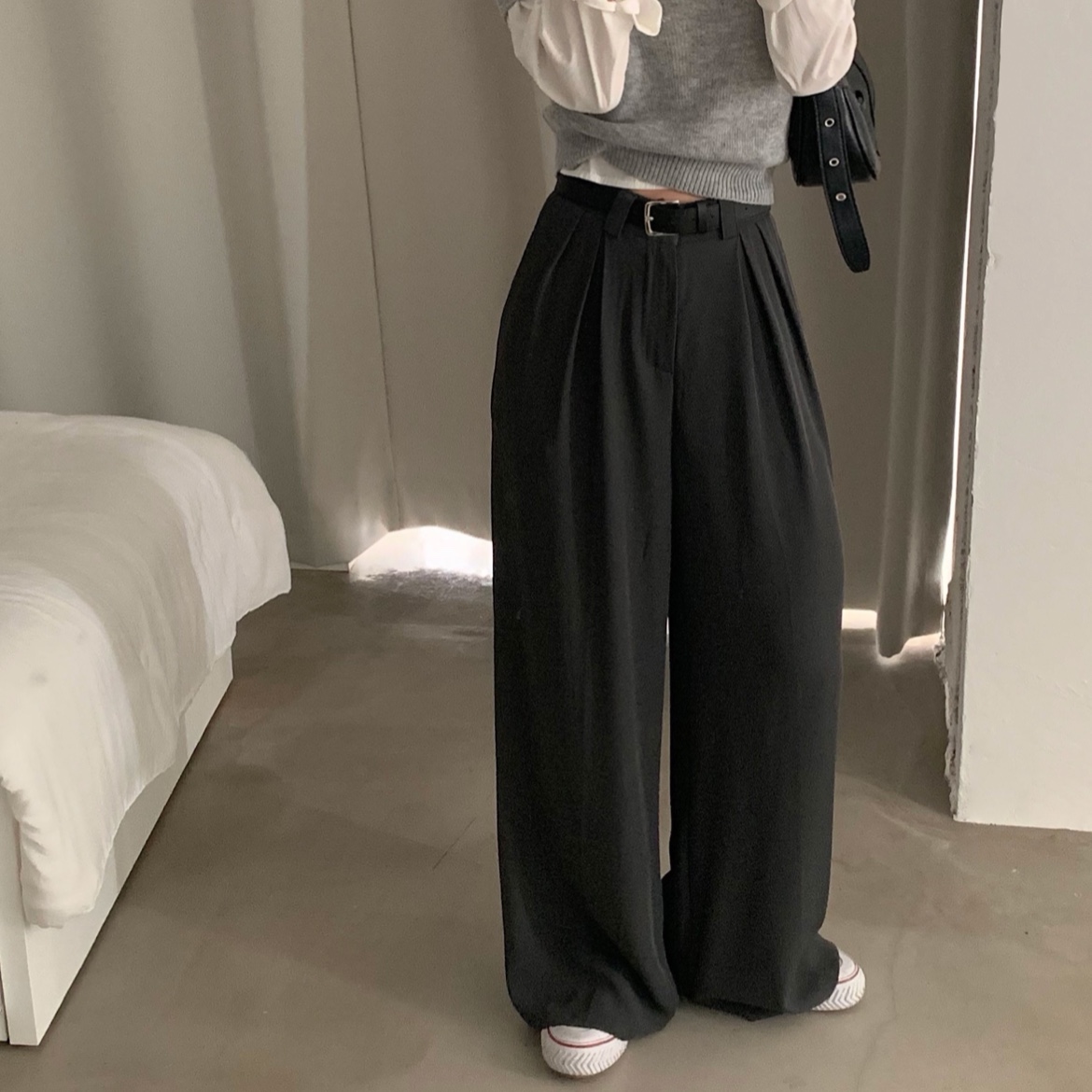 タック入りロングワイドスラックスパンツ-3color