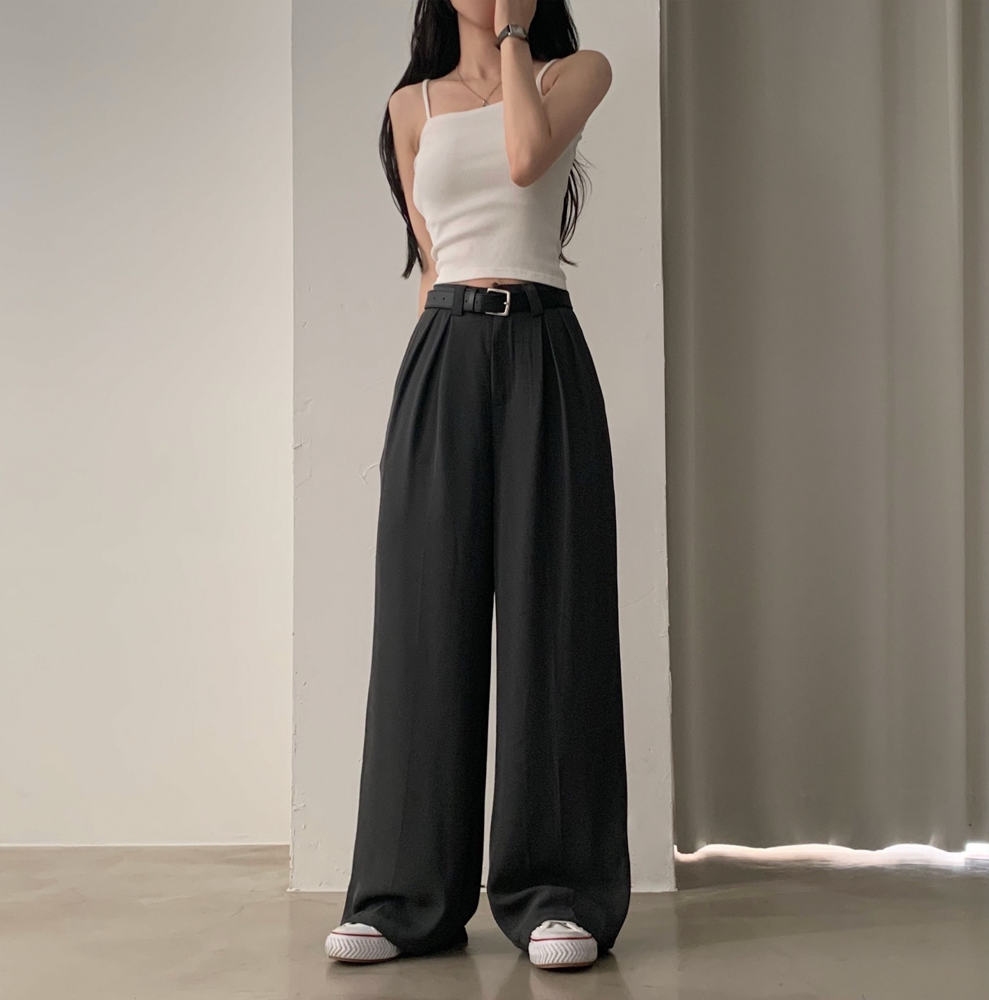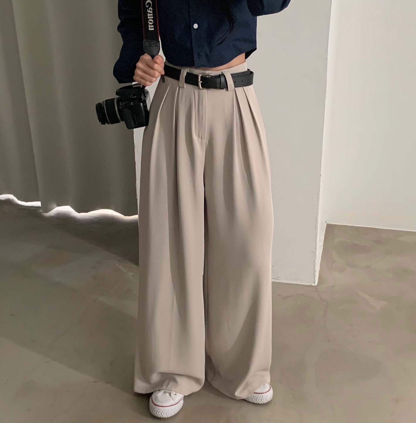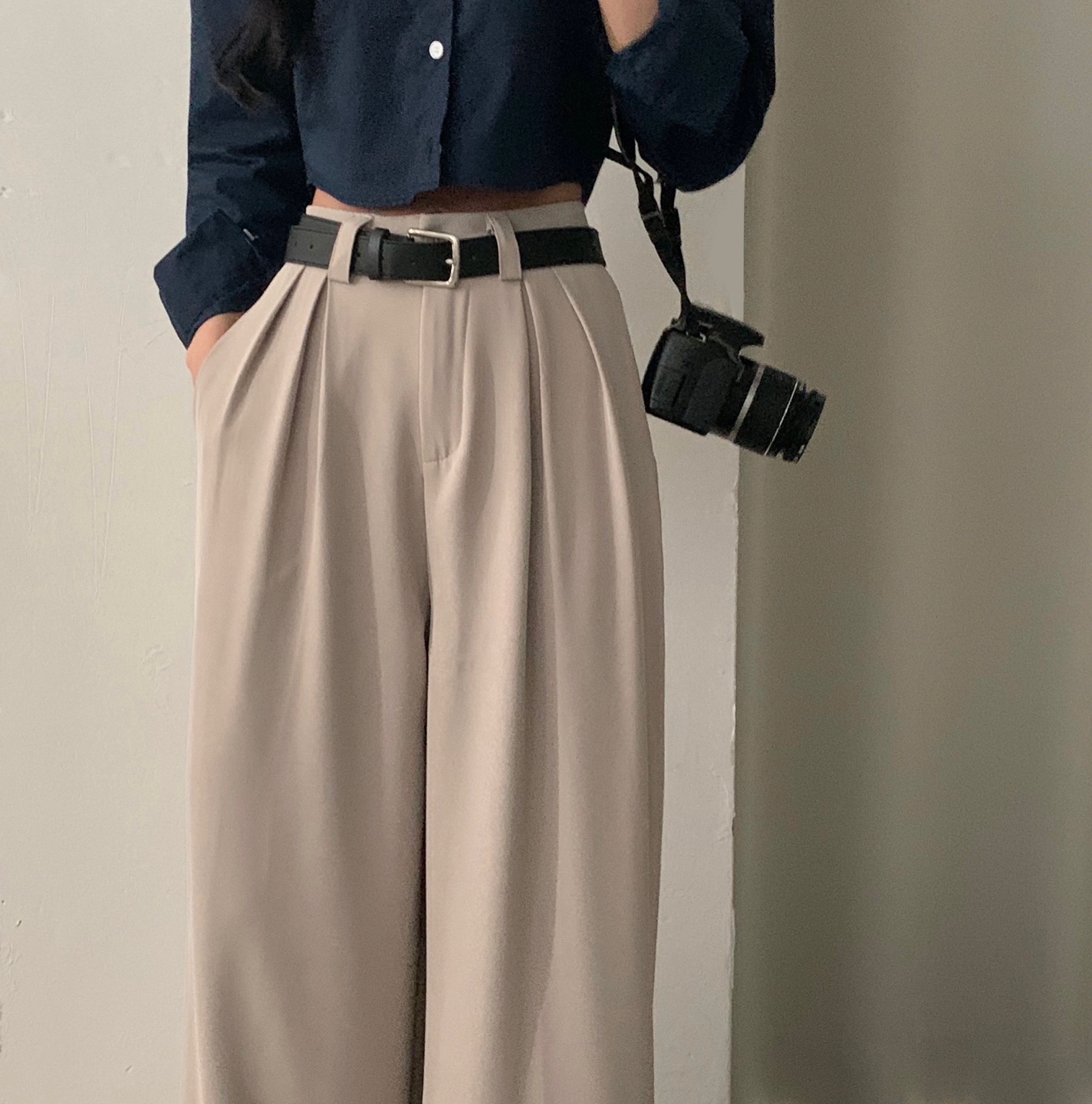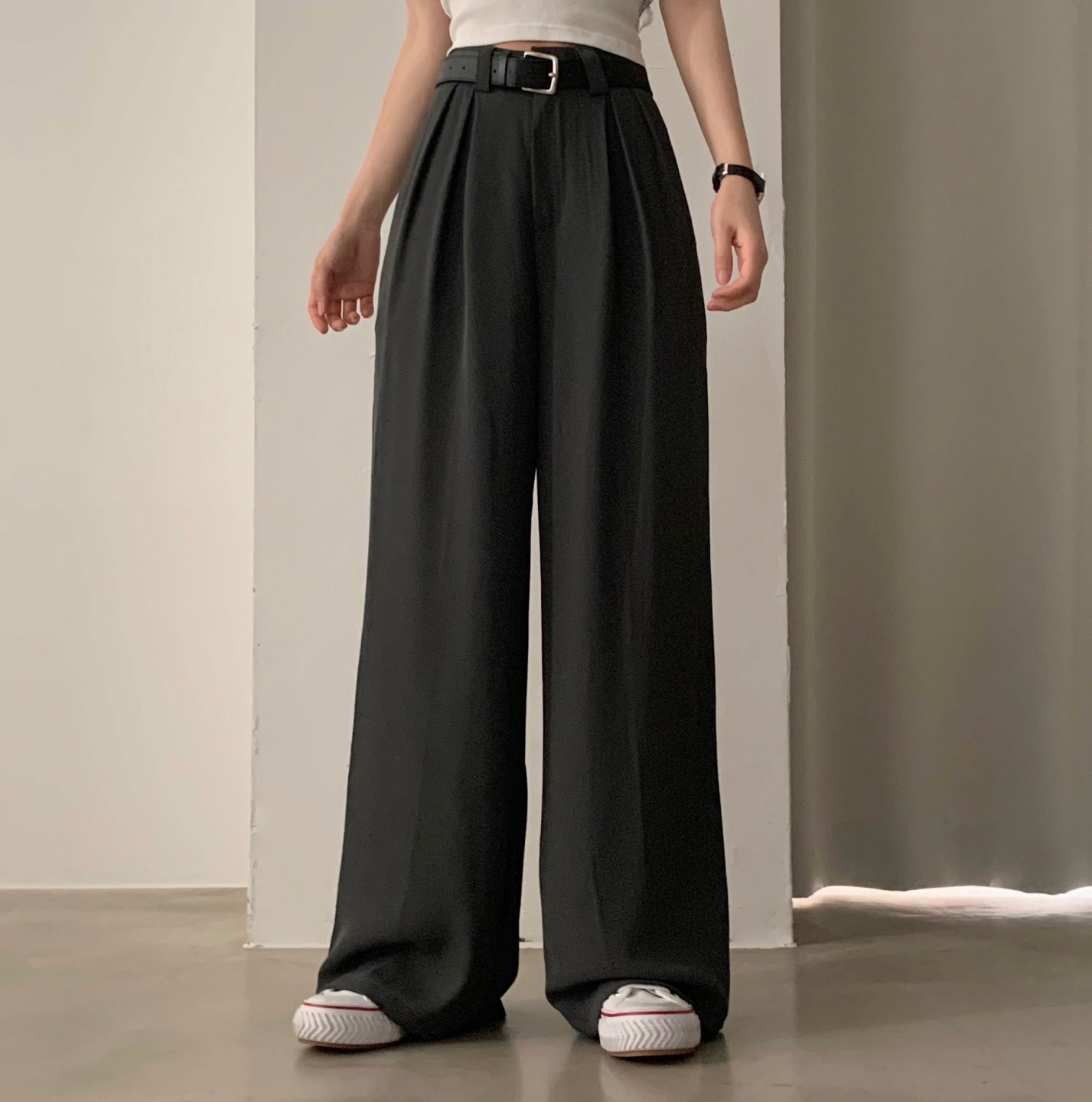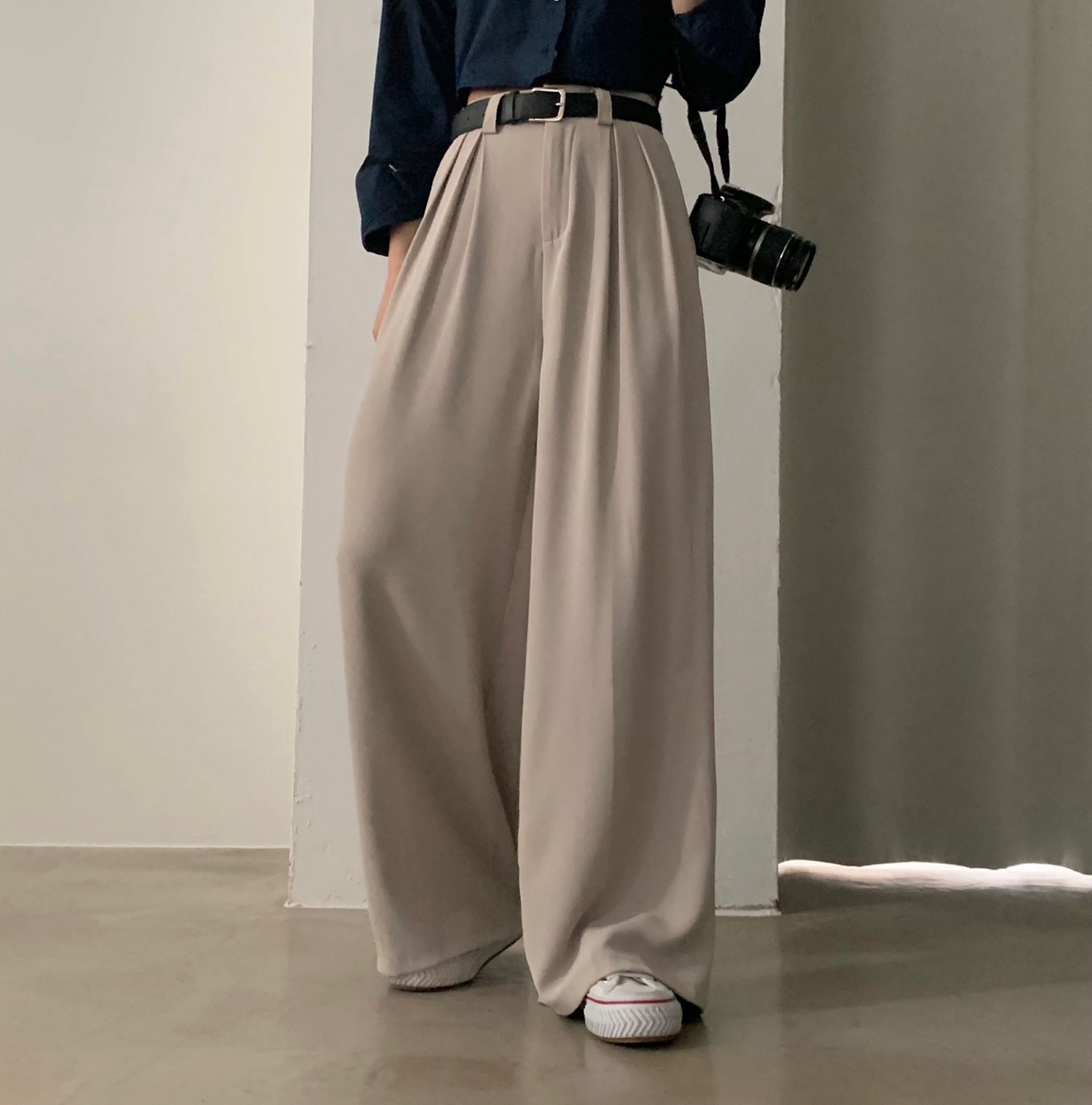 タック入りロングワイドスラックスパンツ-3color