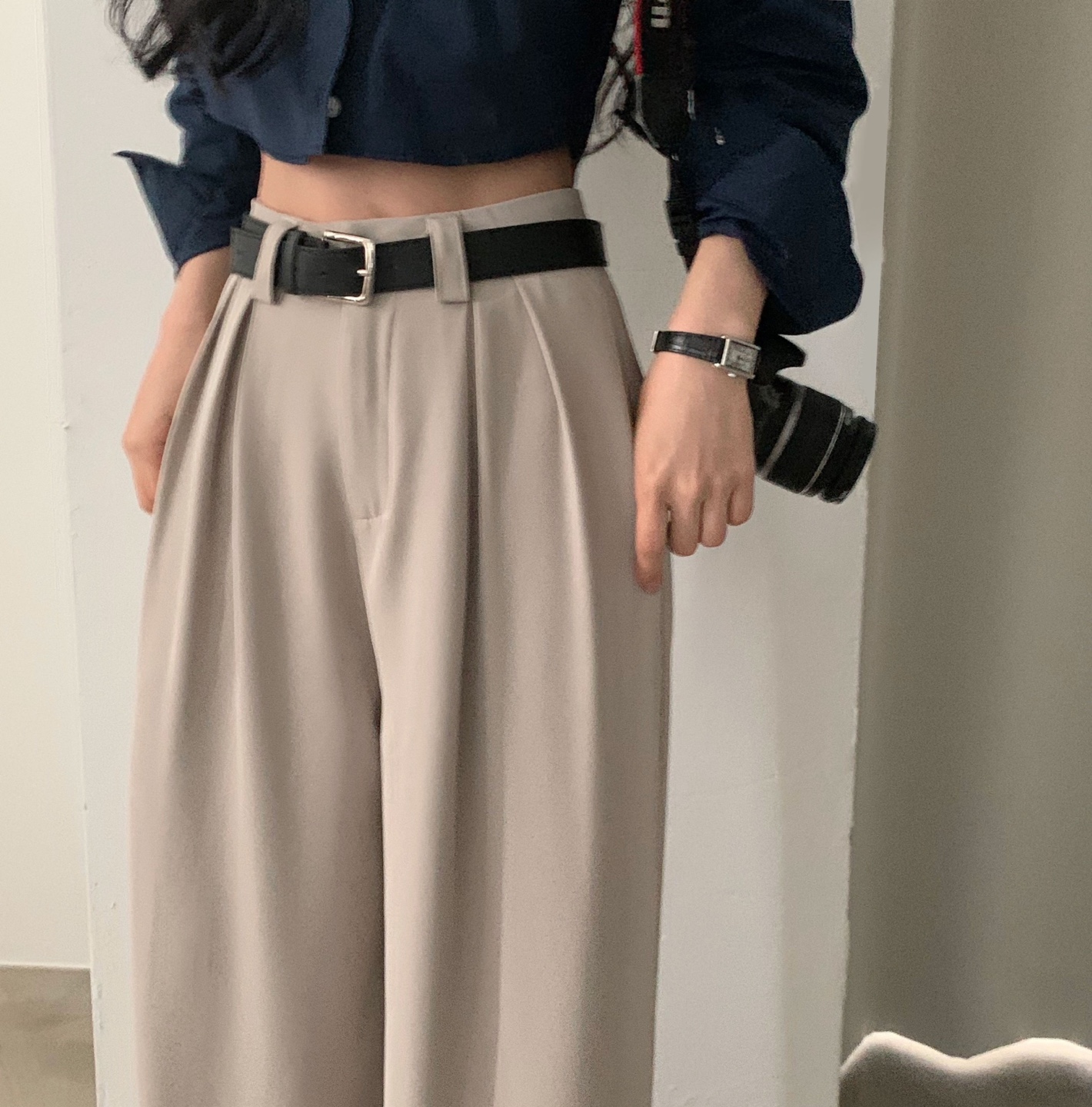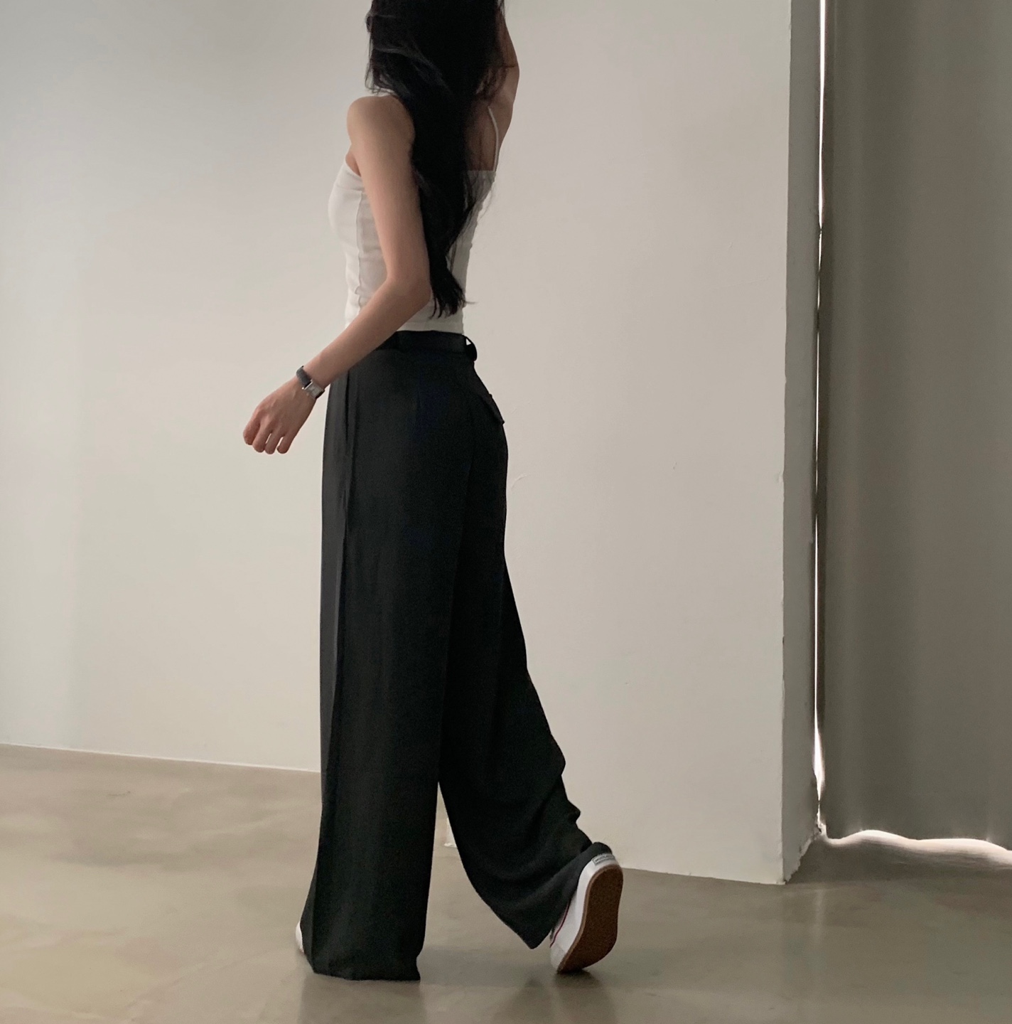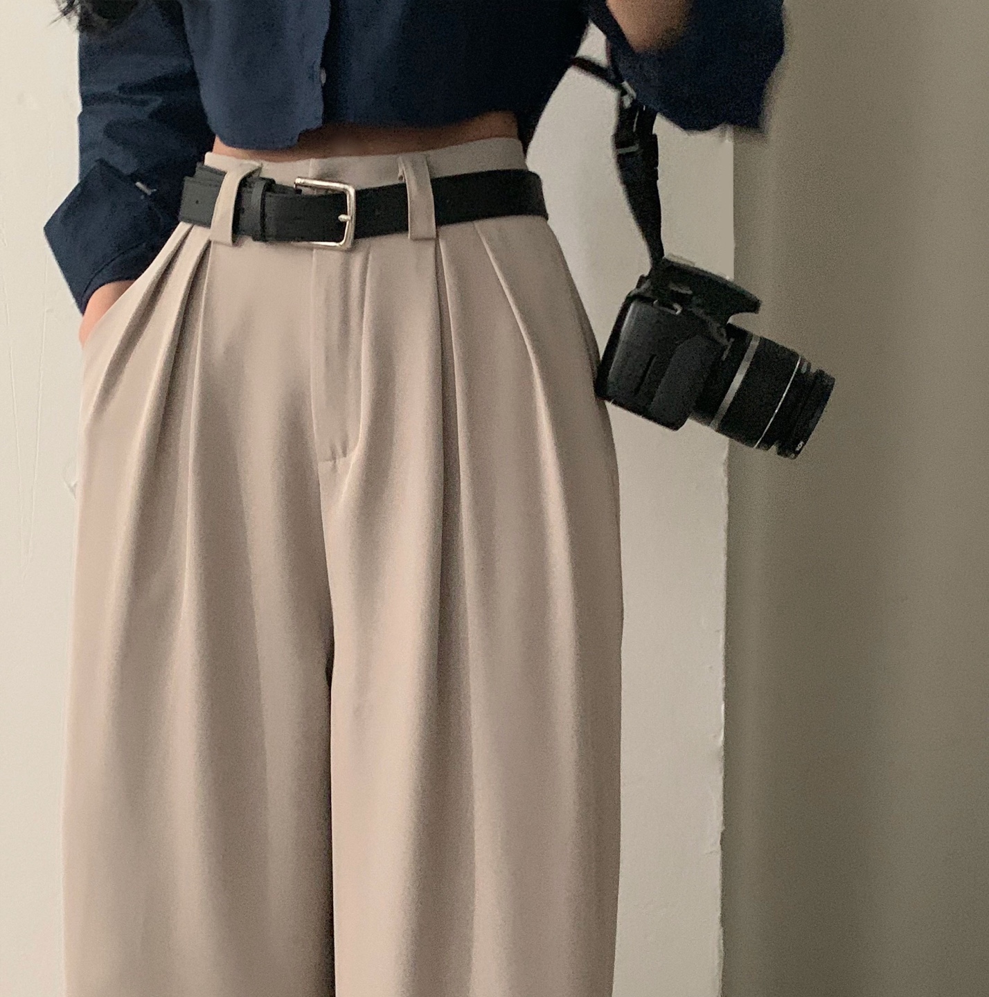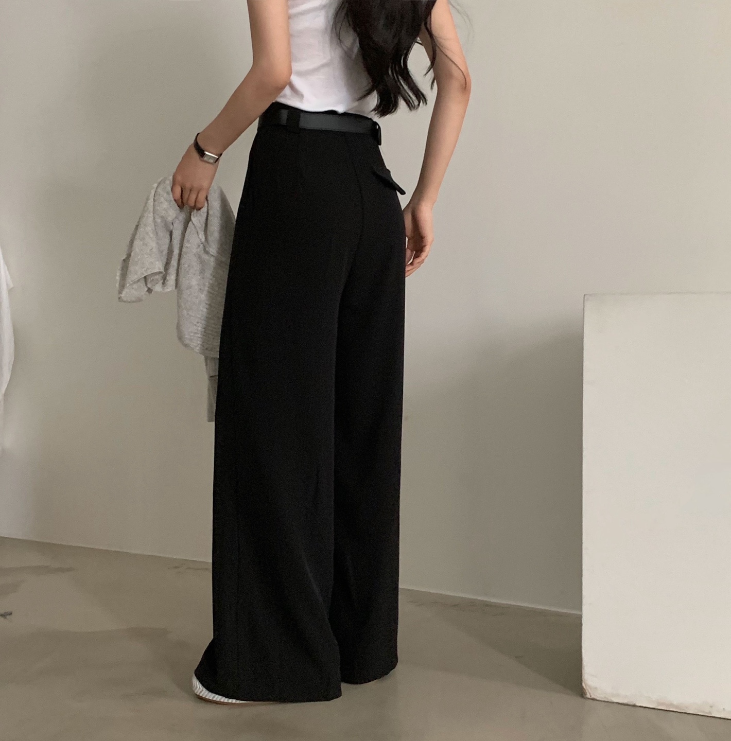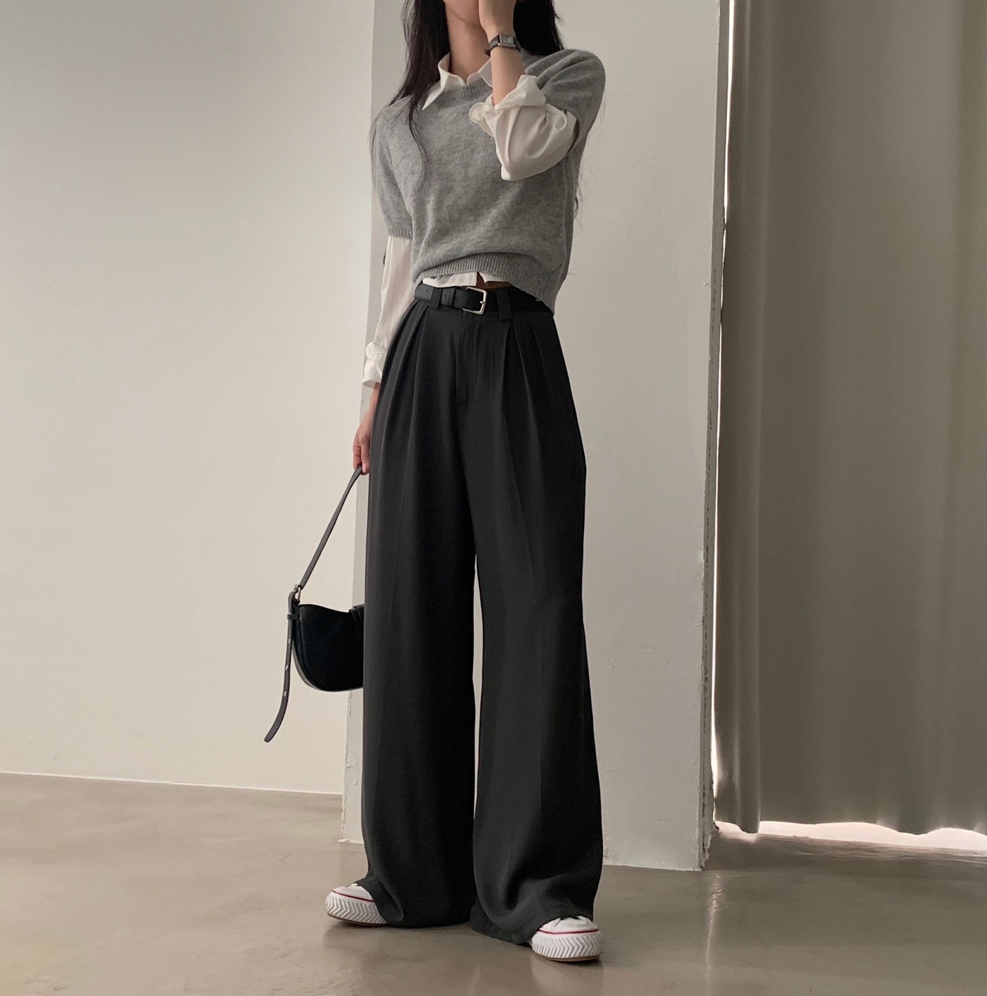 タック入りロングワイドスラックスパンツ-3color