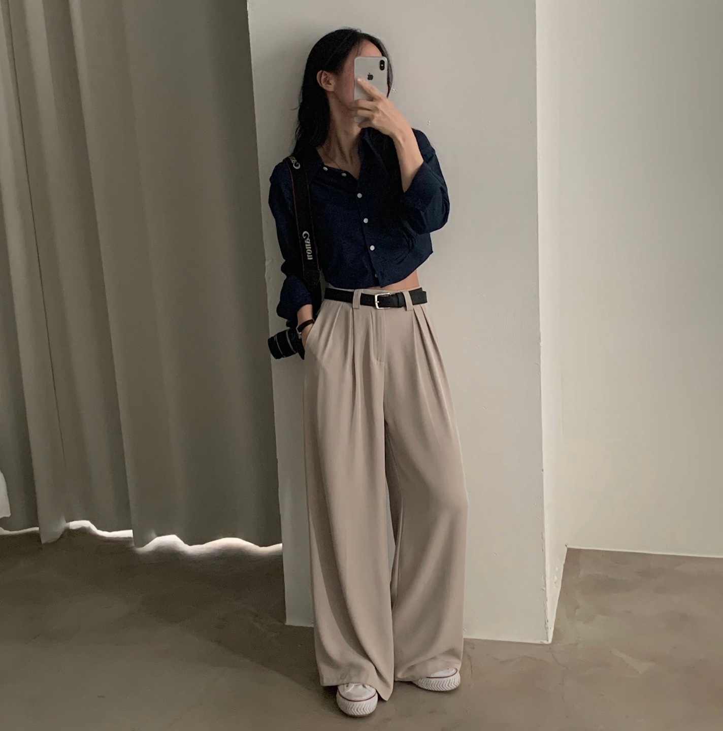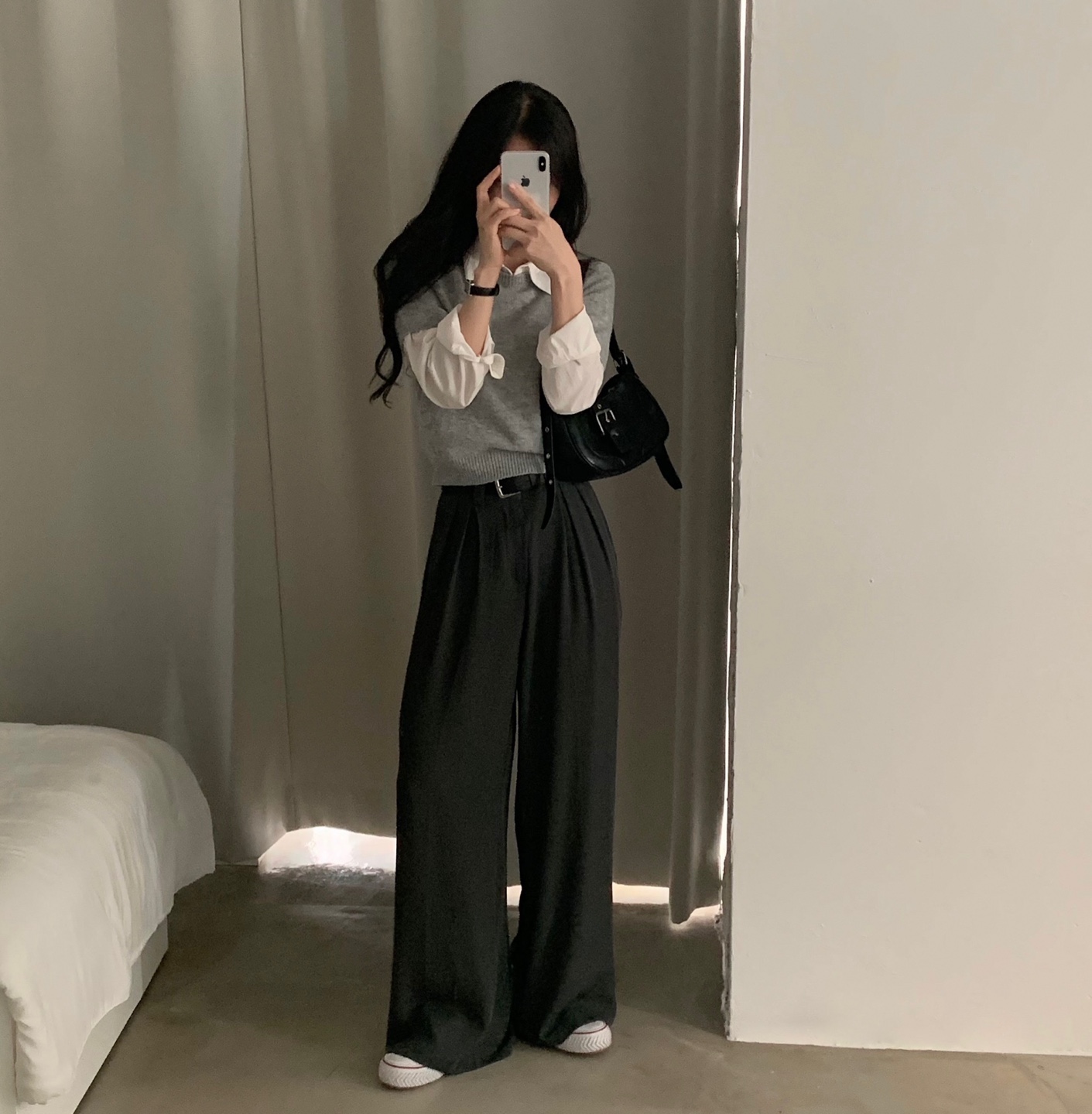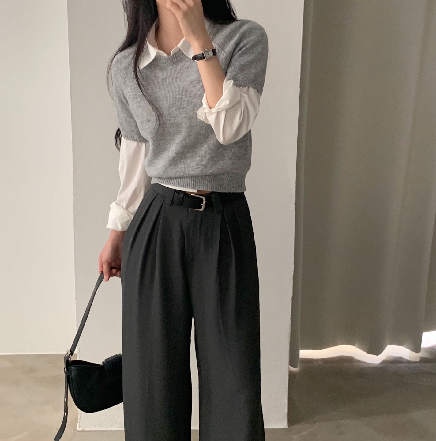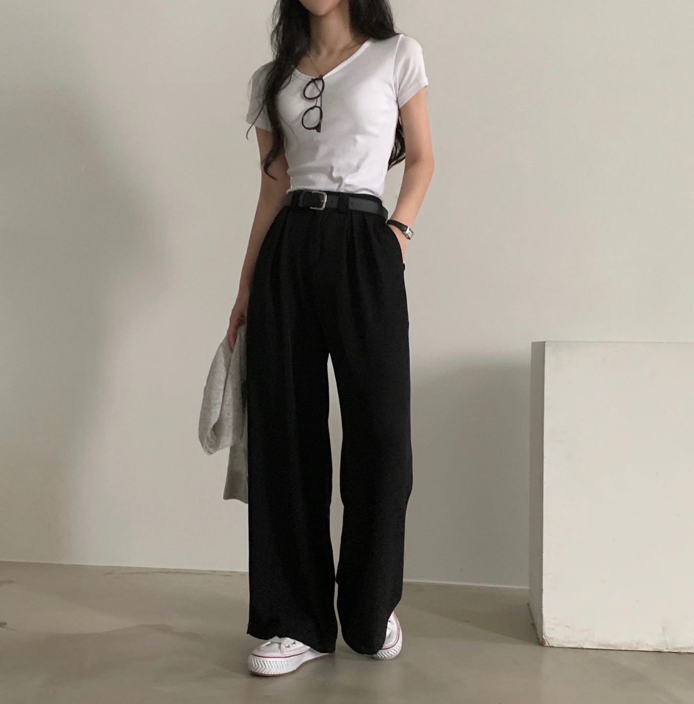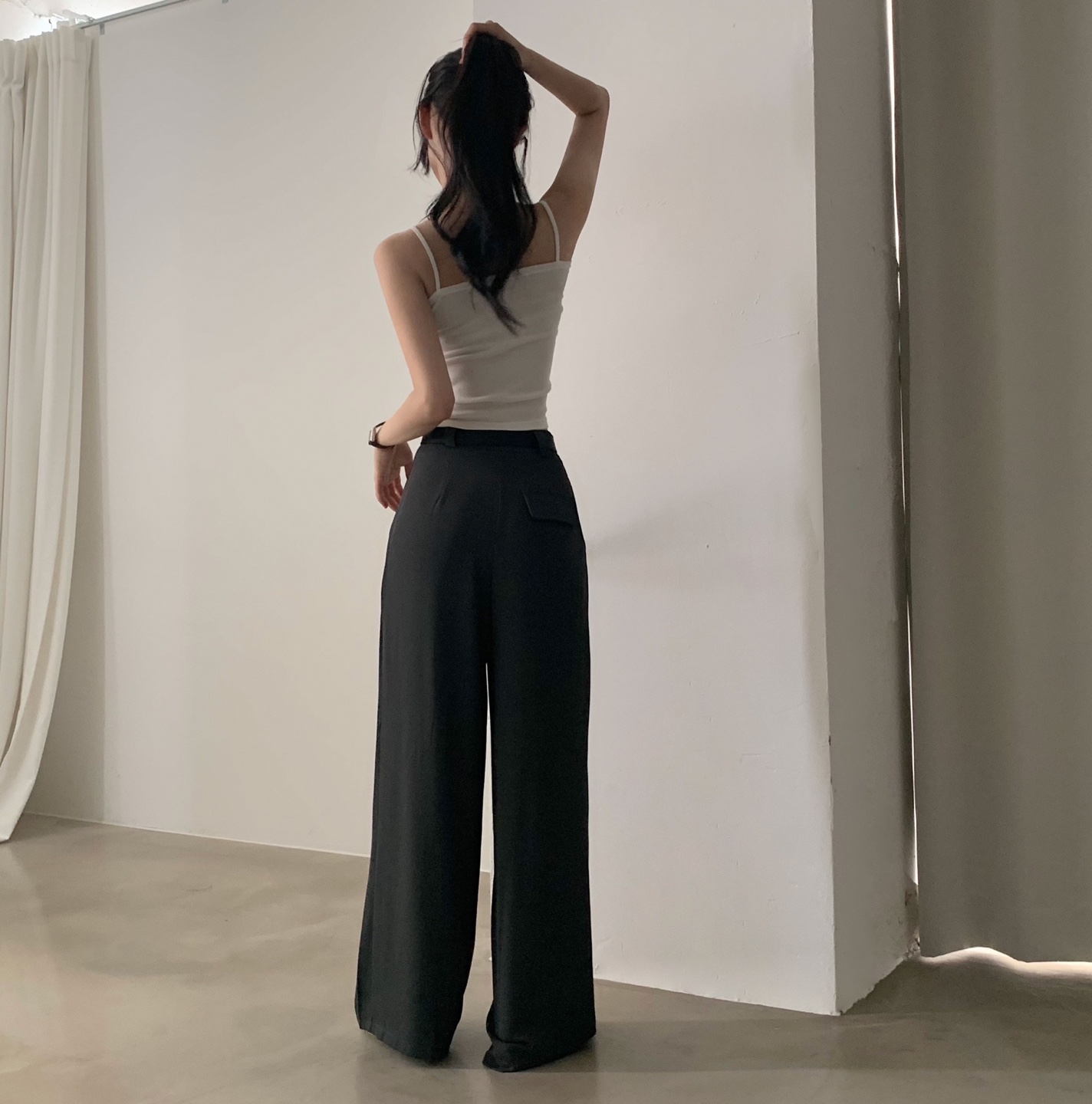 タック入りロングワイドスラックスパンツ-3color