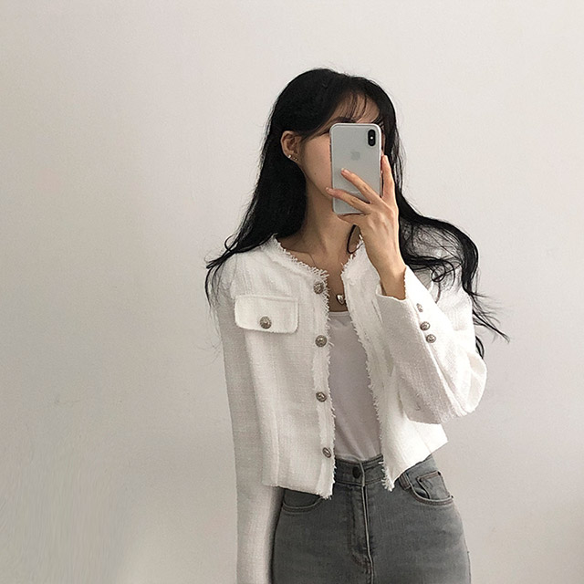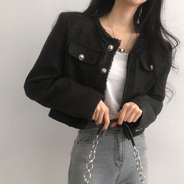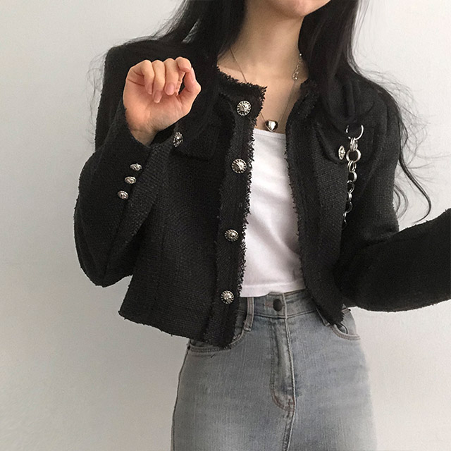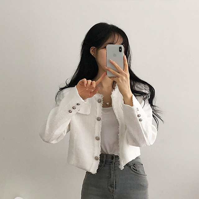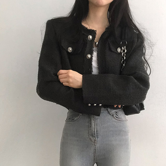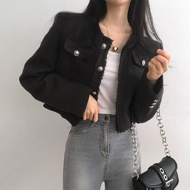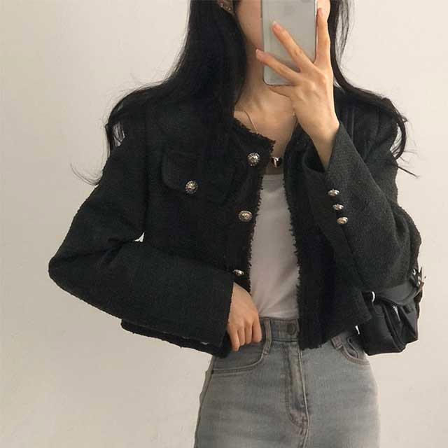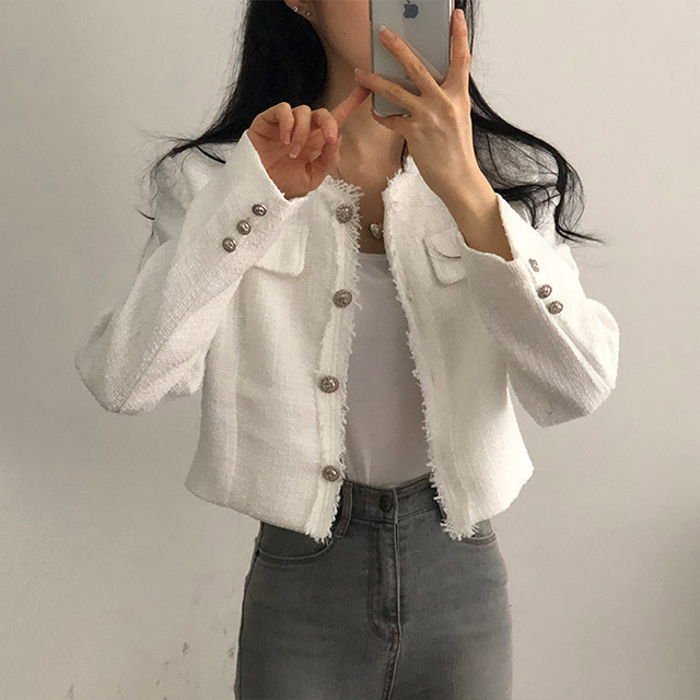 ボタンツイードジャケット