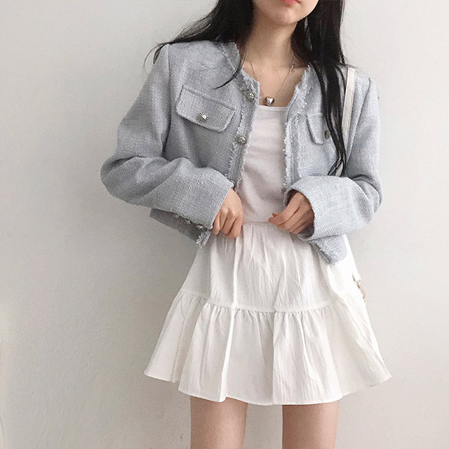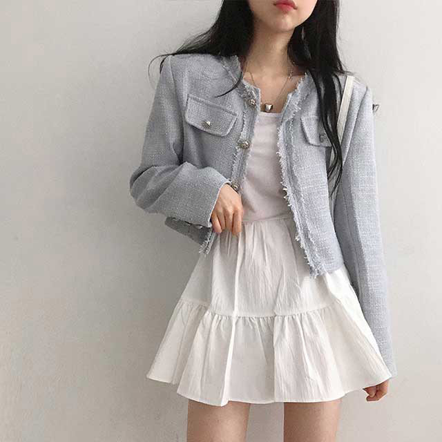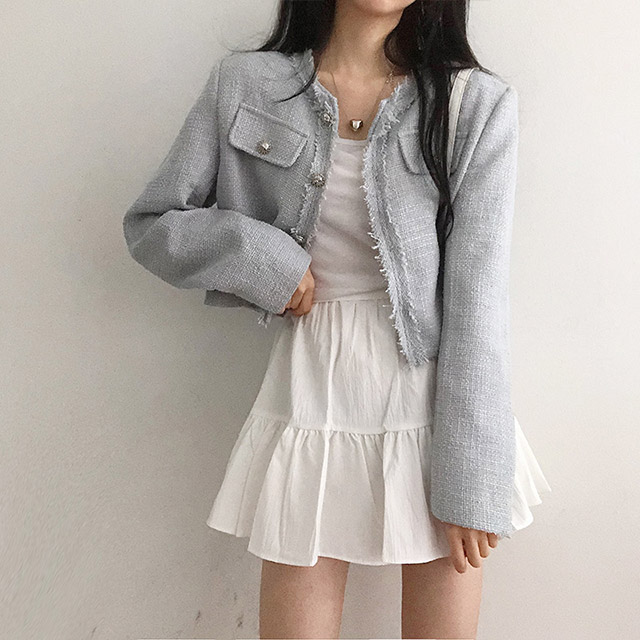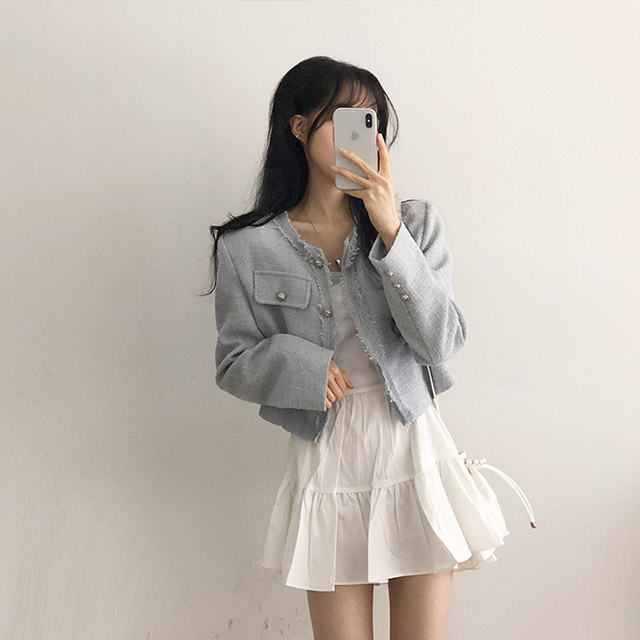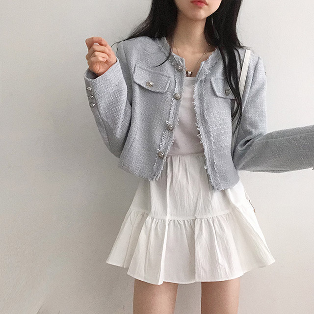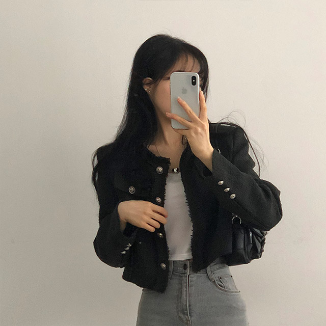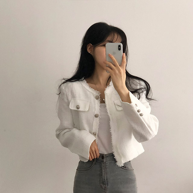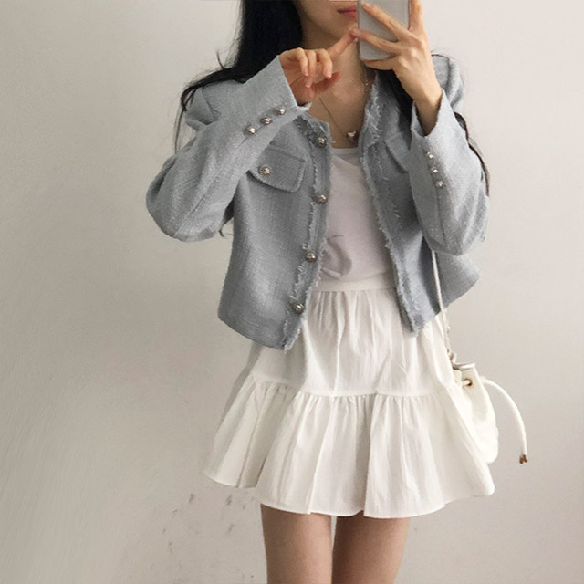 ボタンツイードジャケット