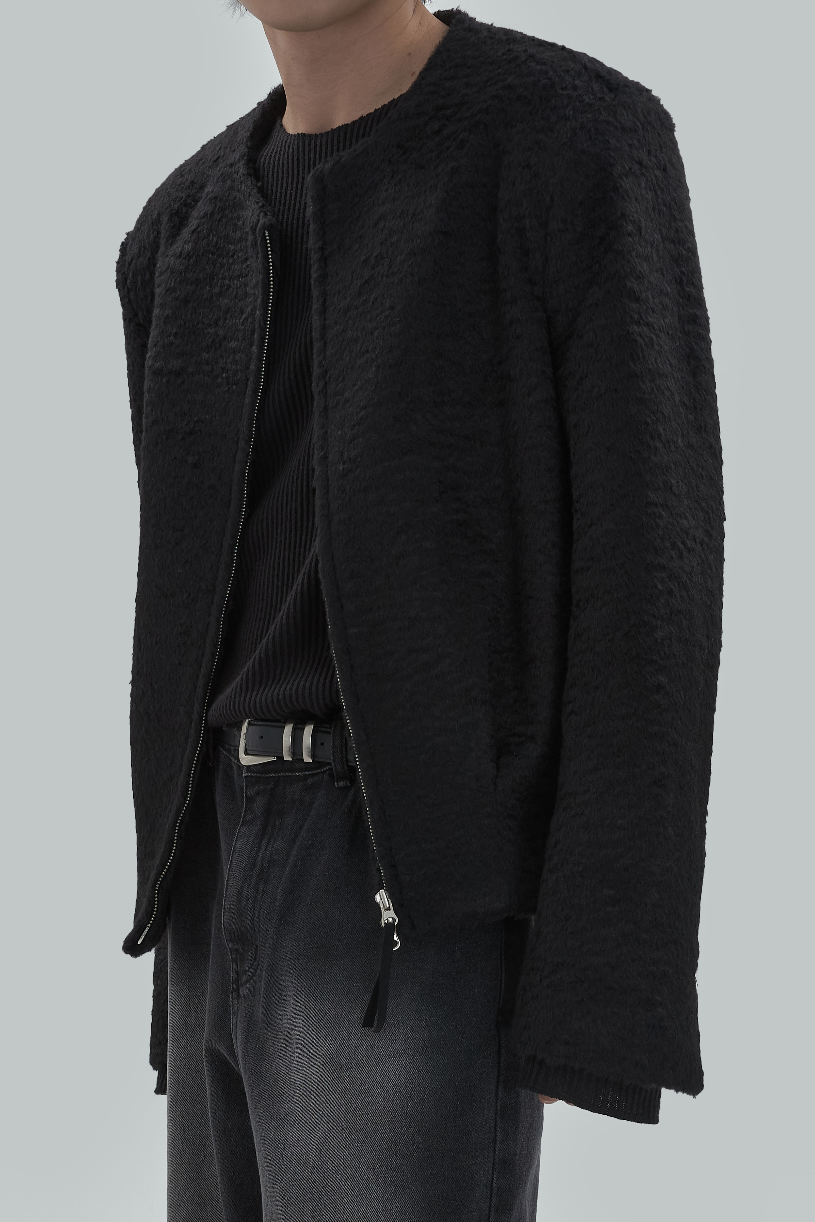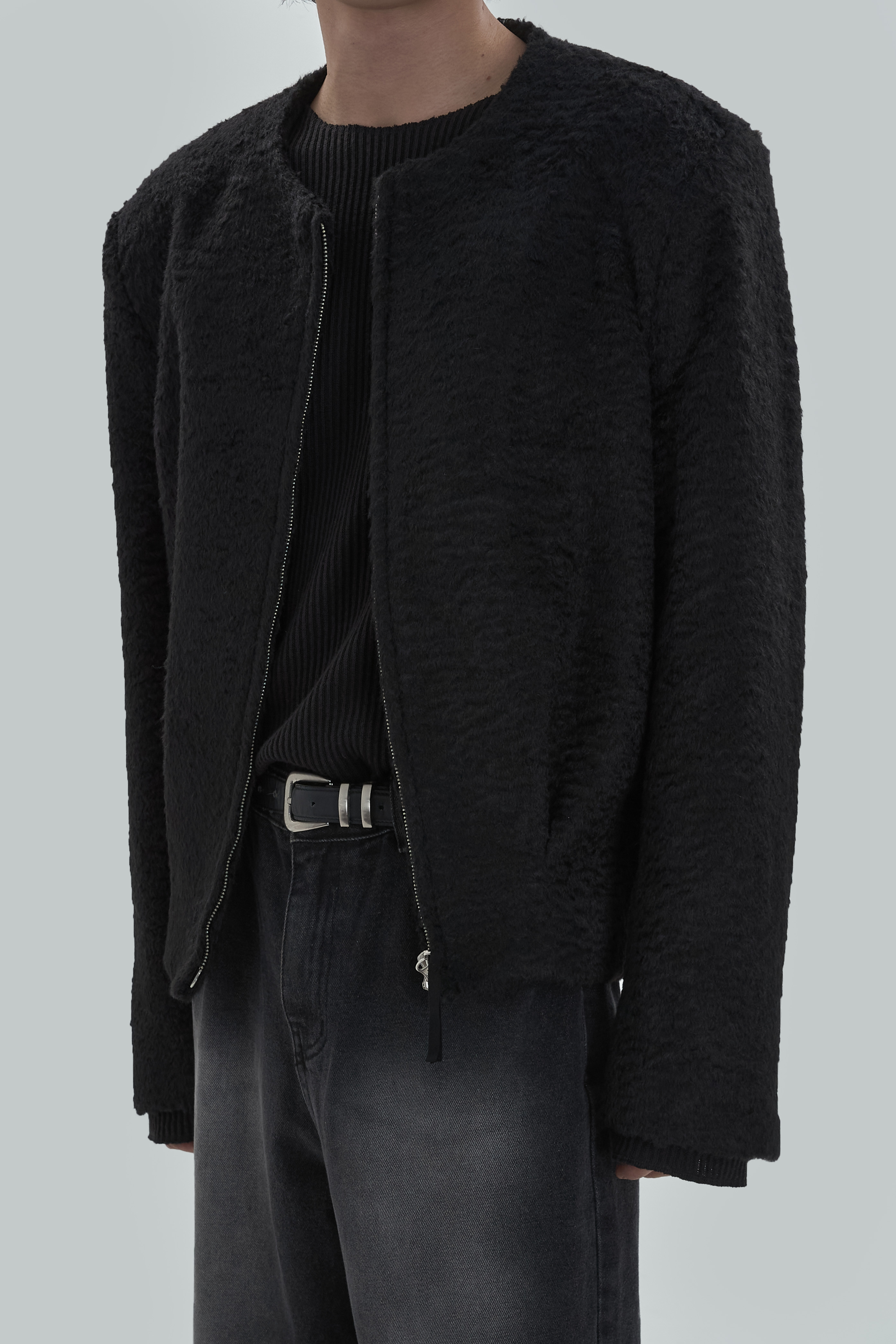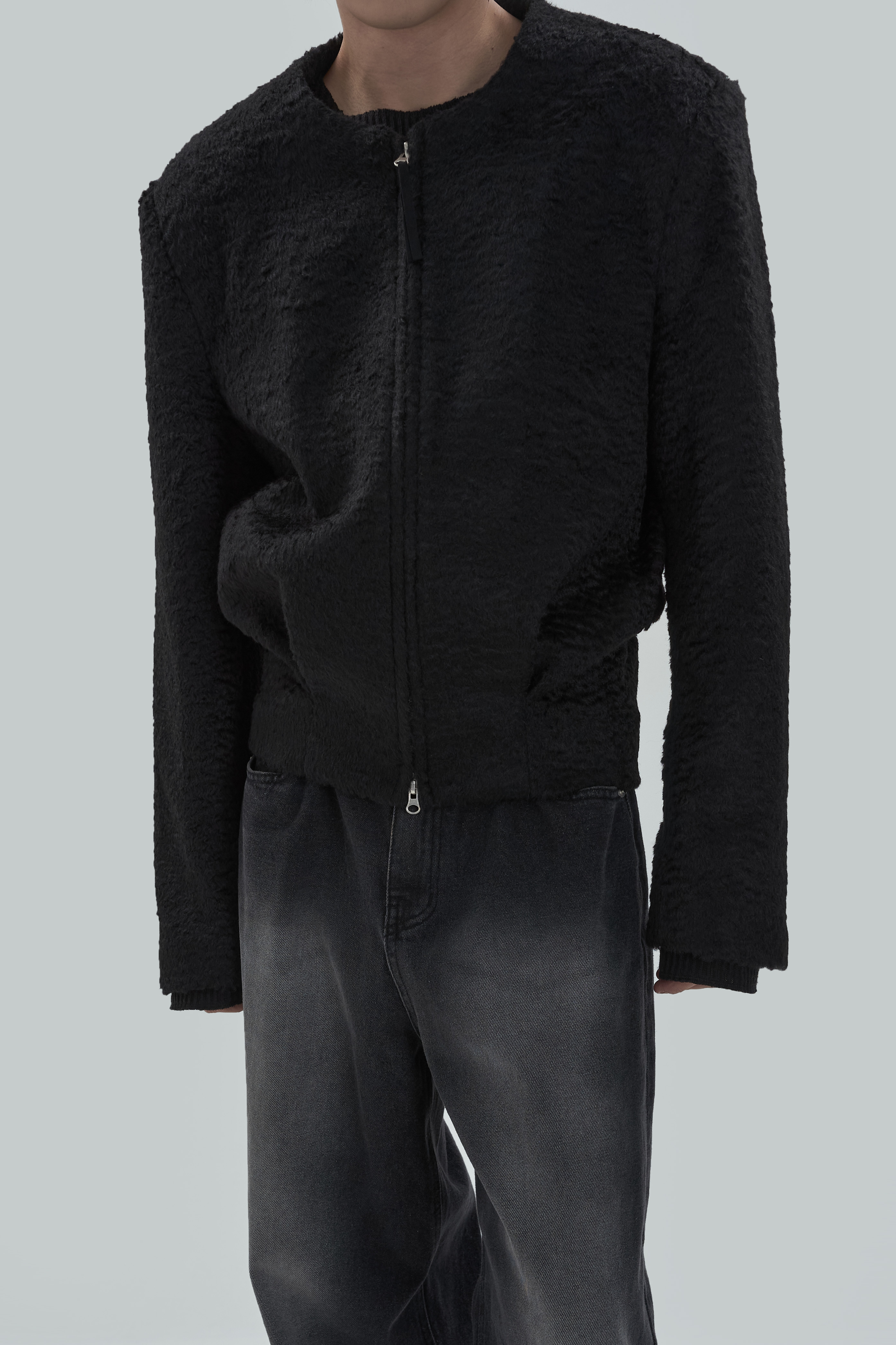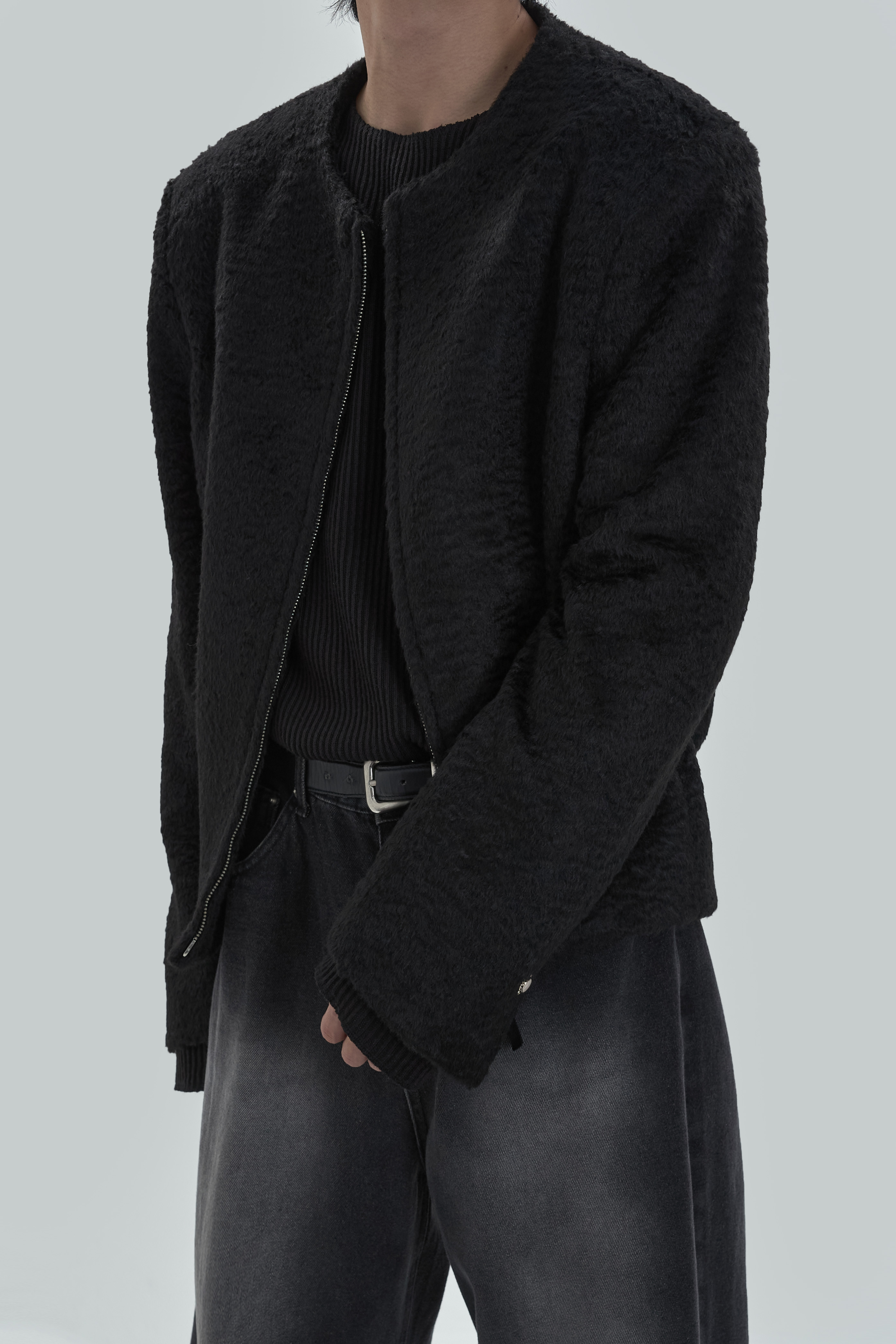 Non-collar hairy blouson jacket