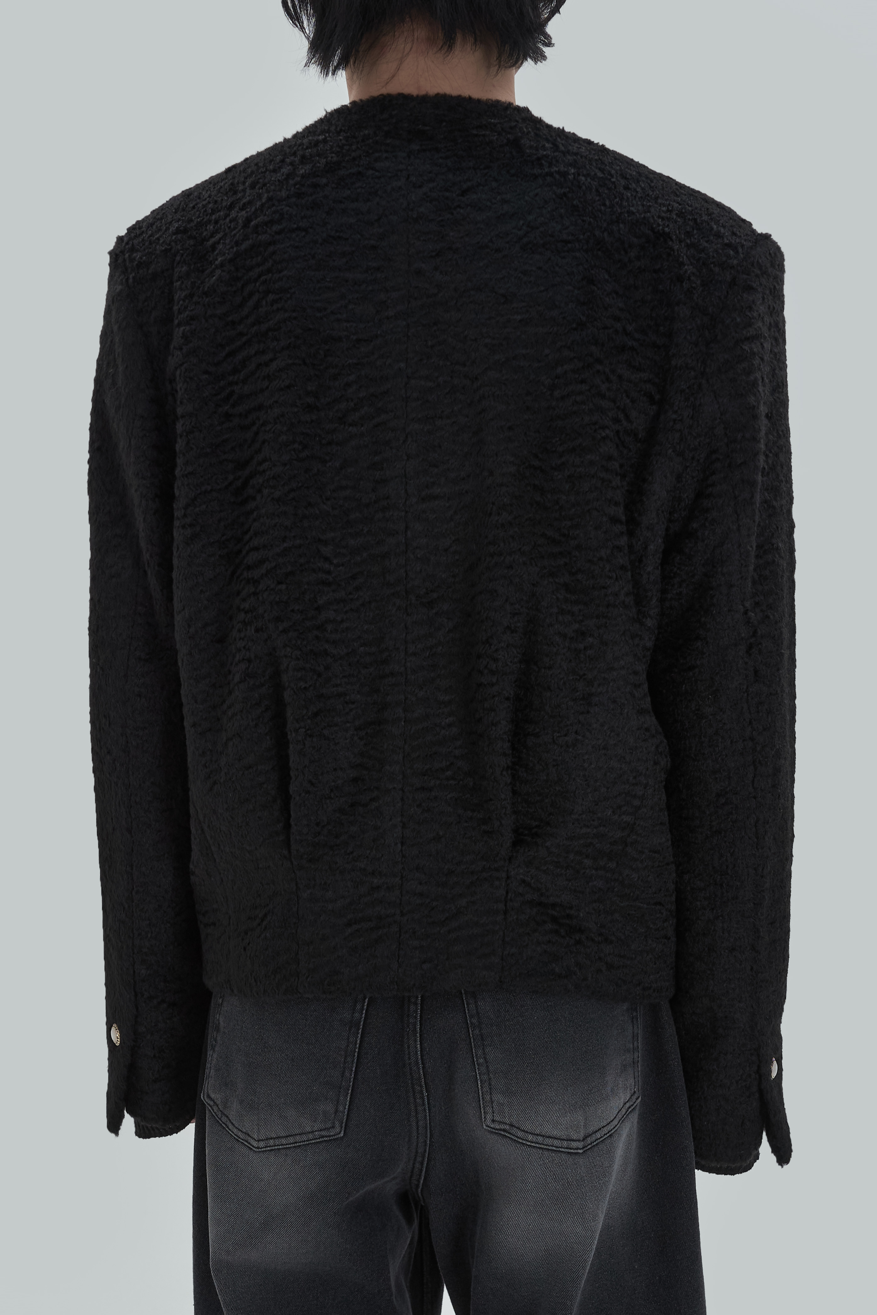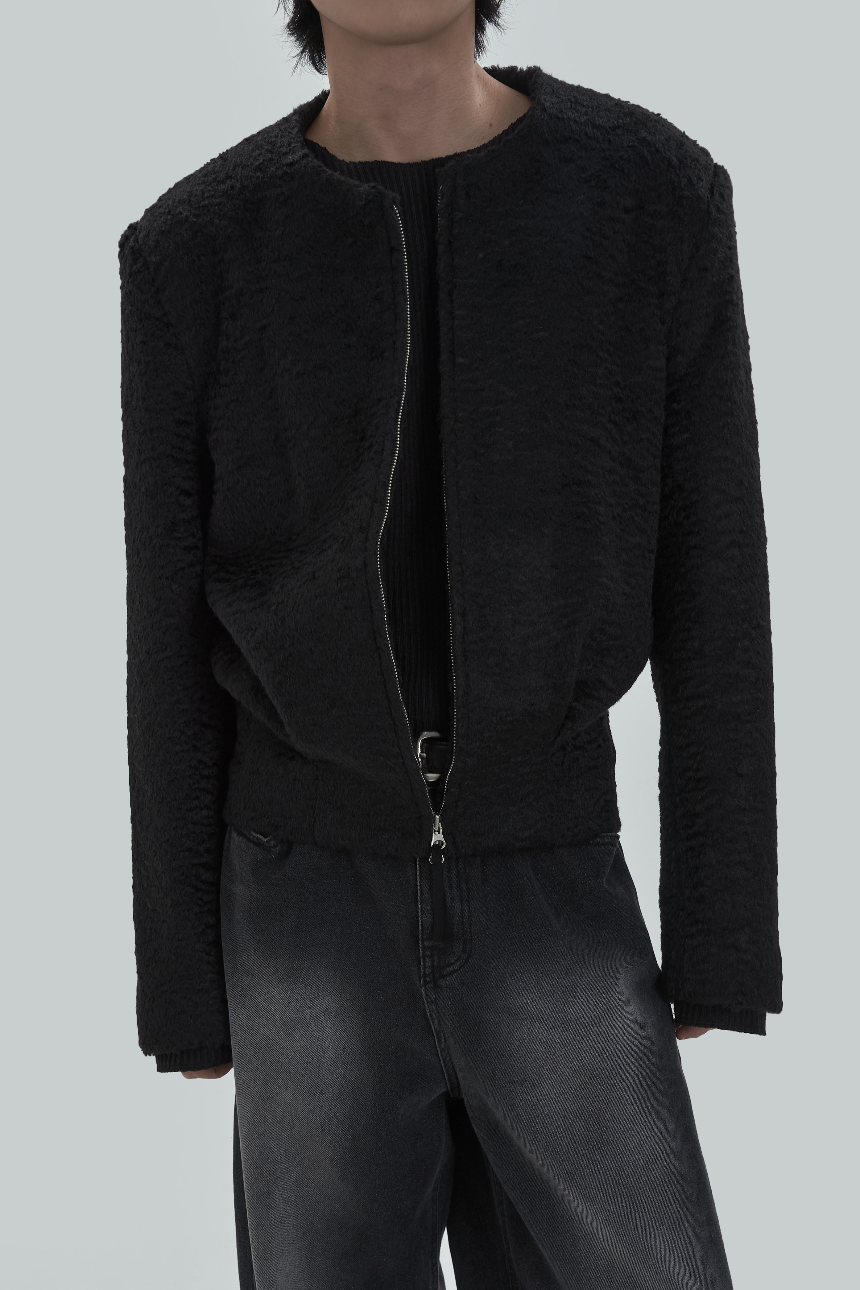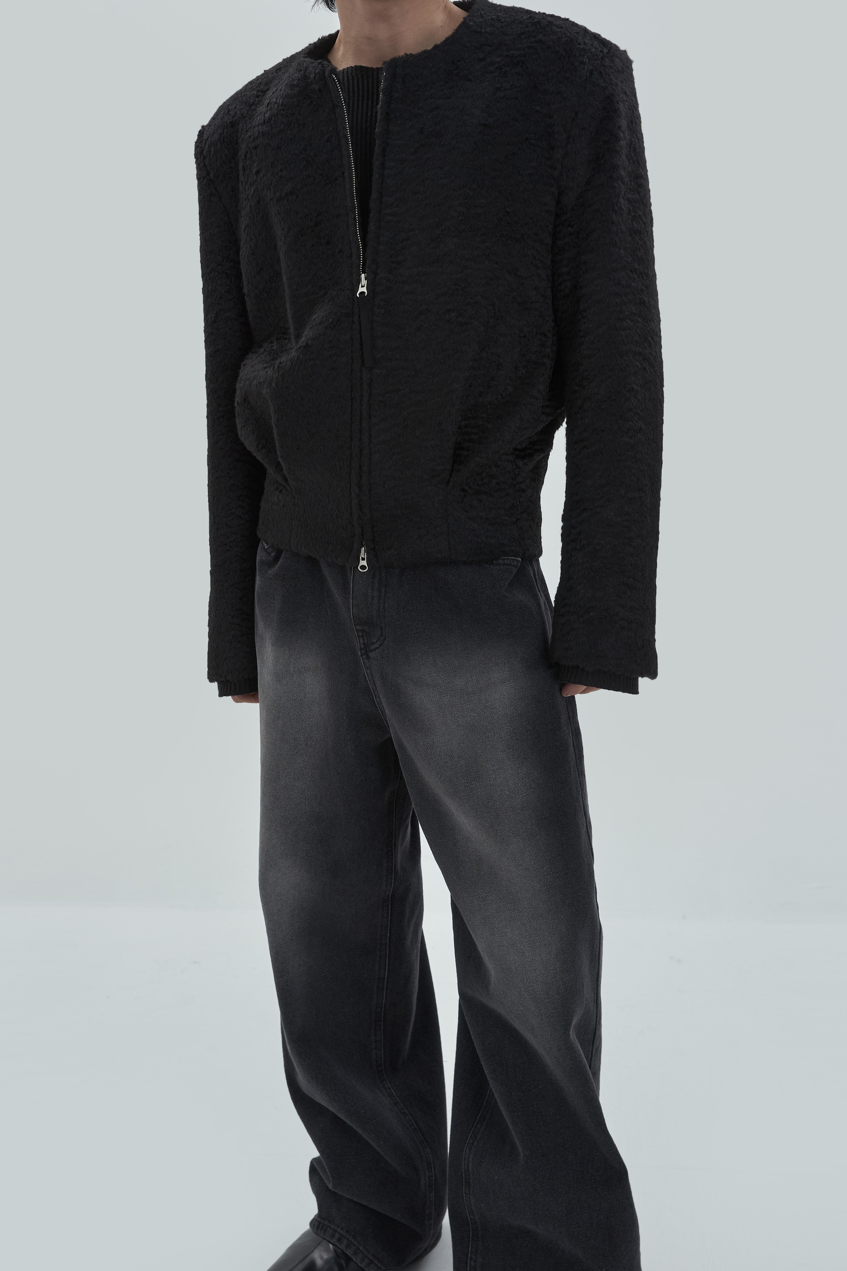 Non-collar hairy blouson jacket