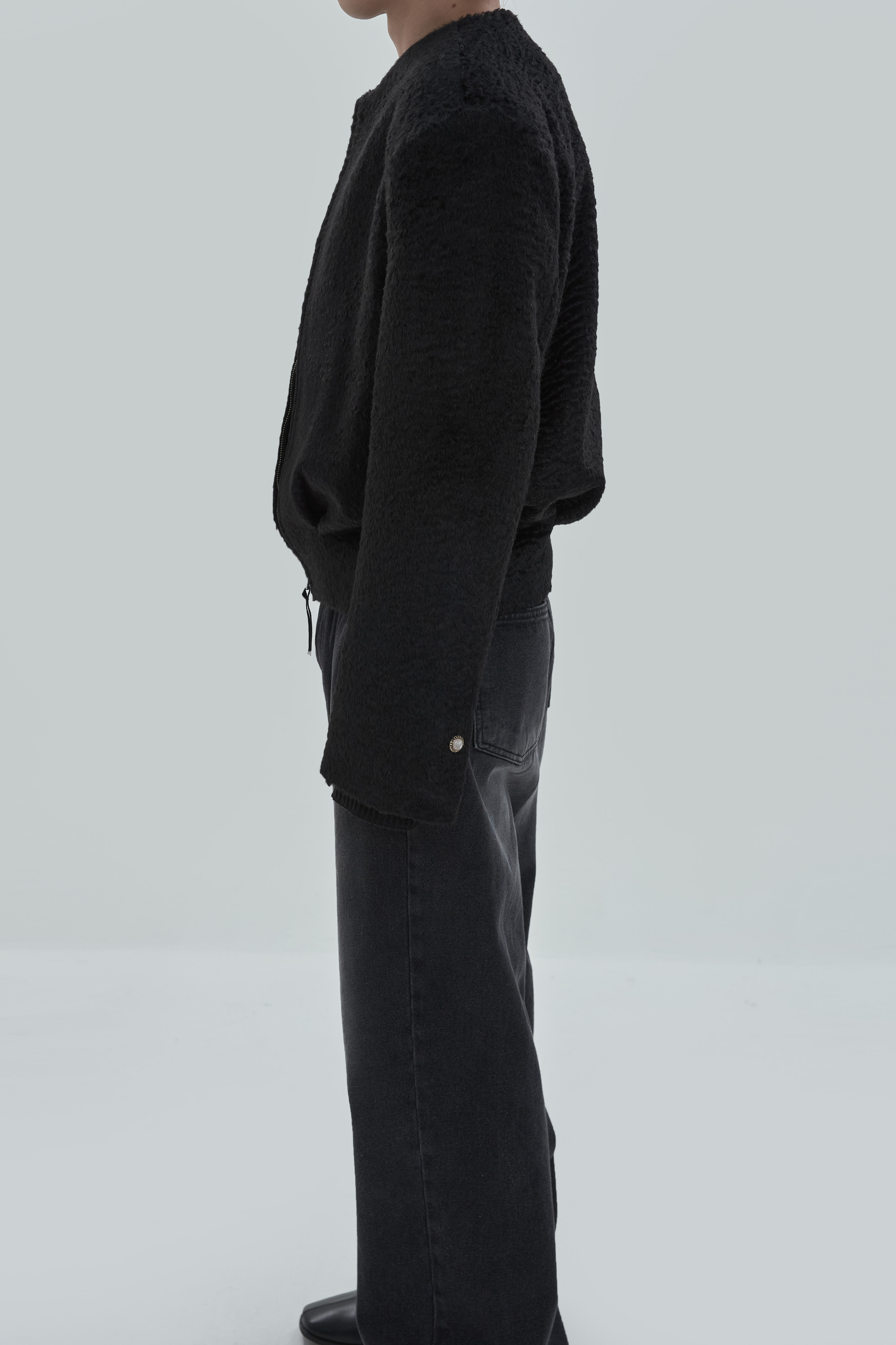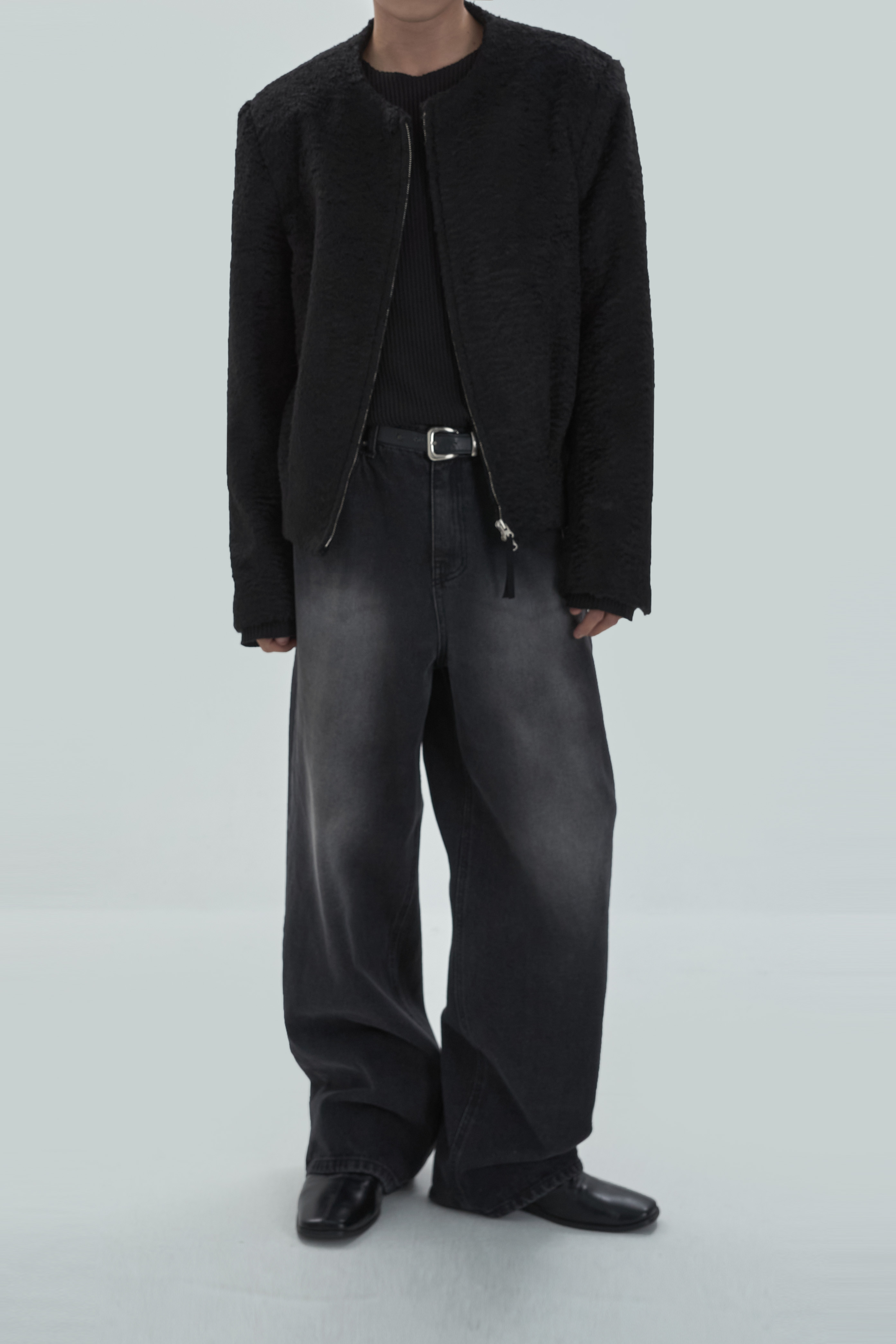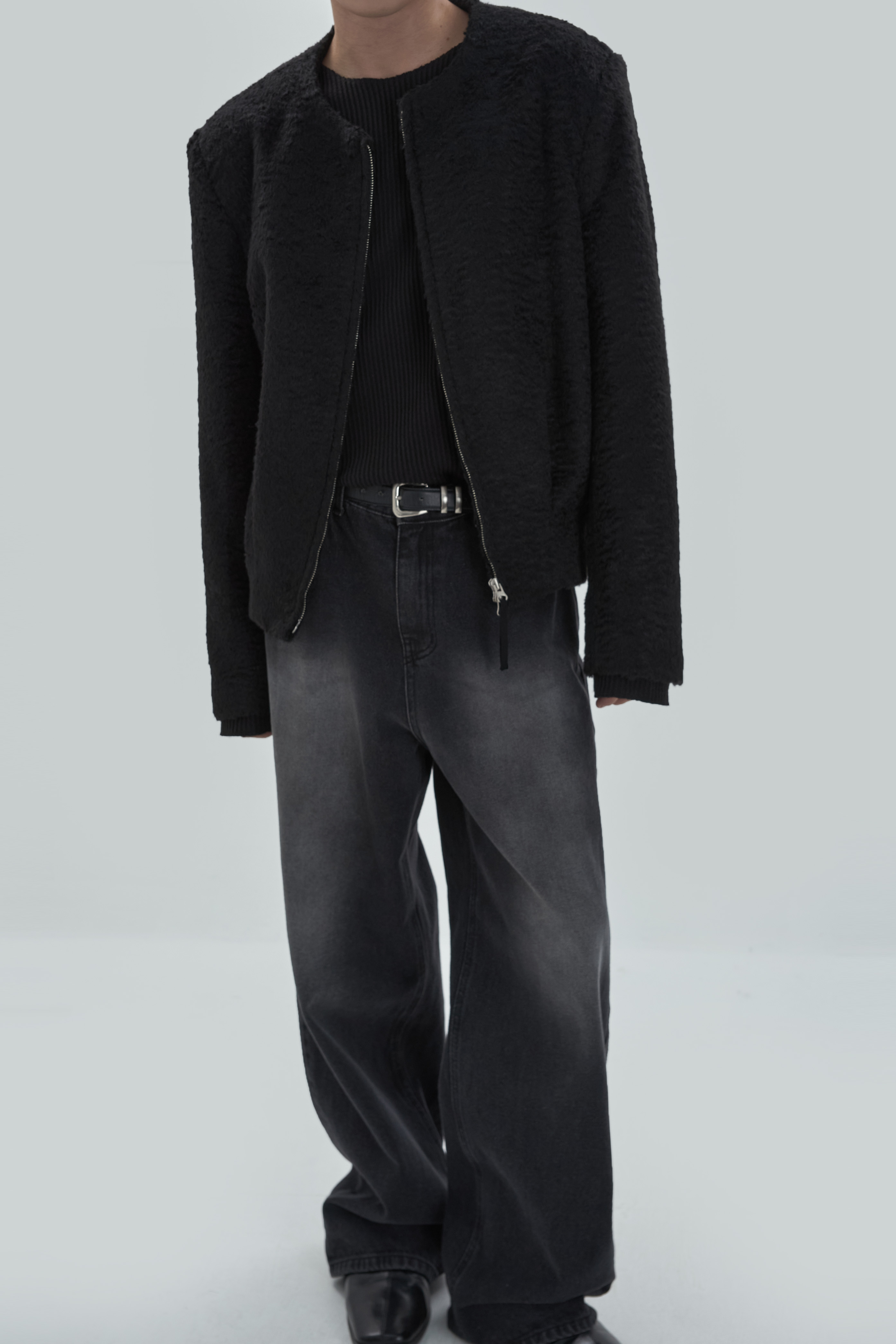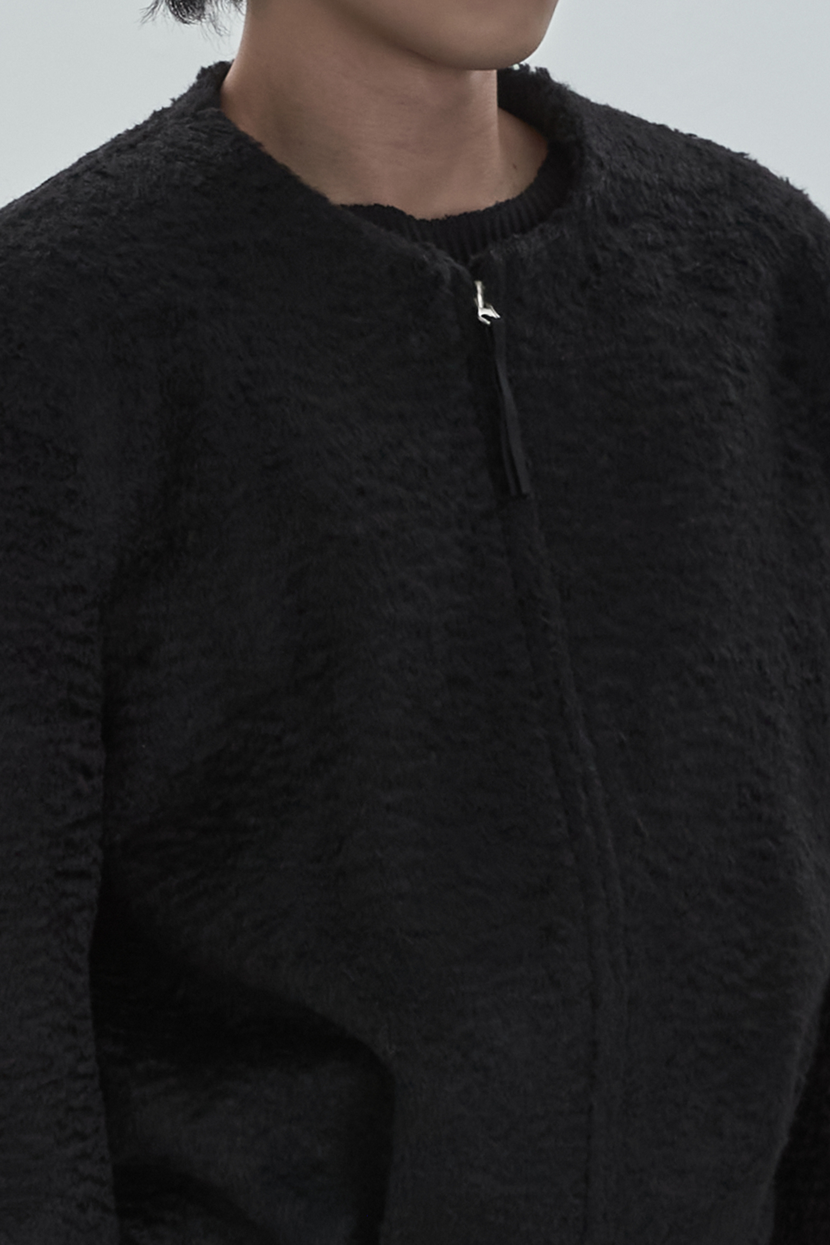 Non-collar hairy blouson jacket