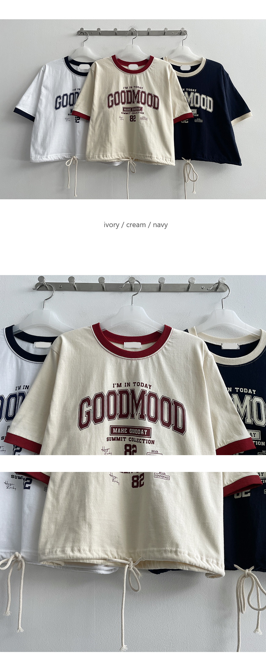 ケールストリング配色クロップ半袖Tシャツ(3color)