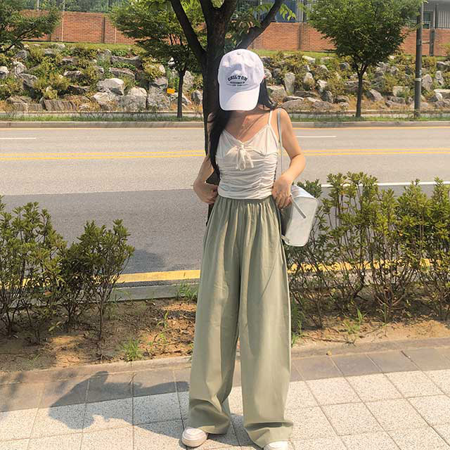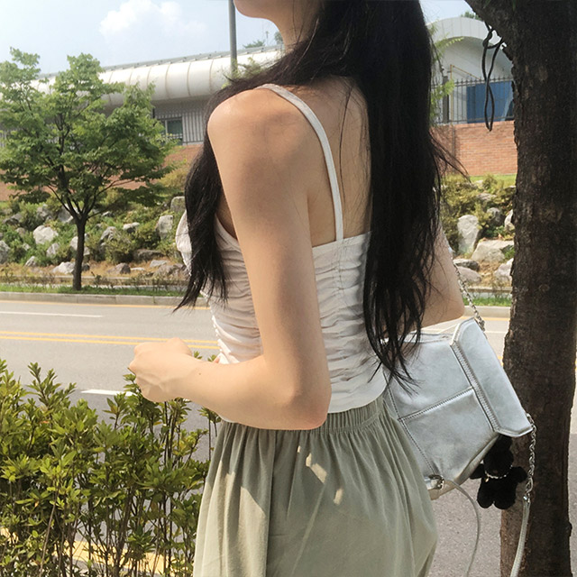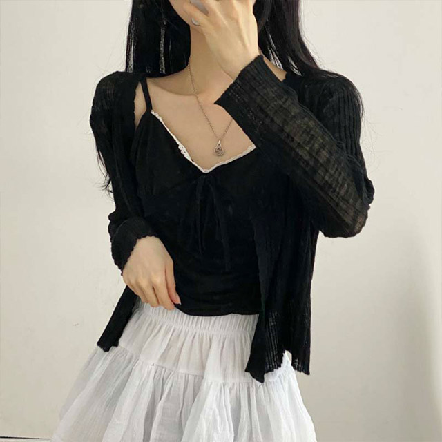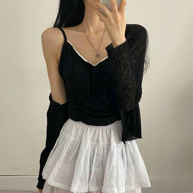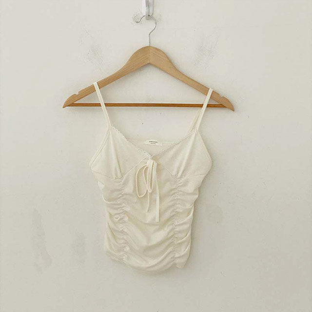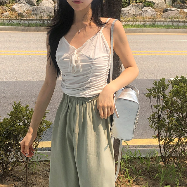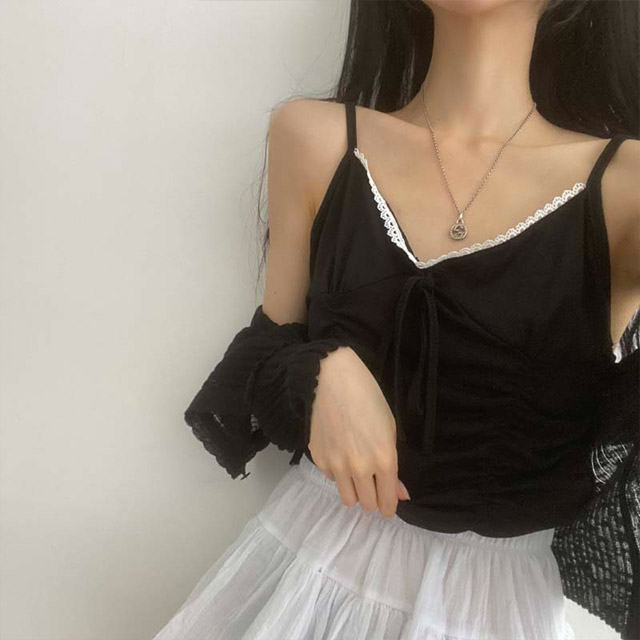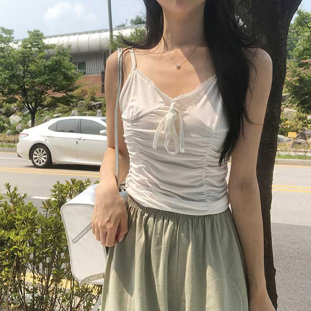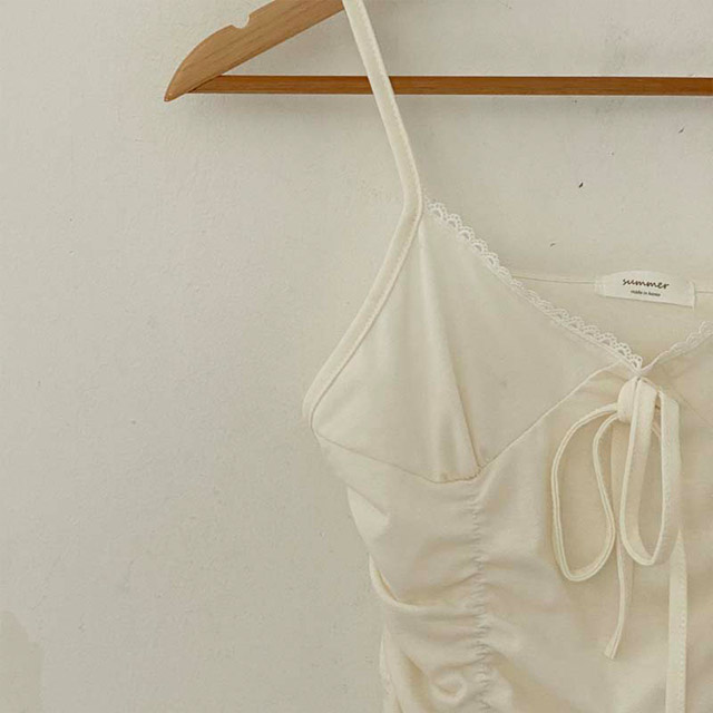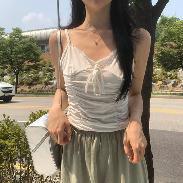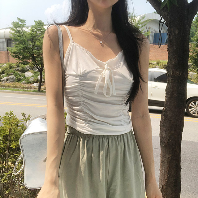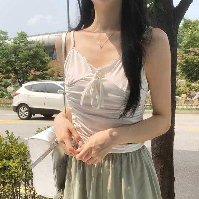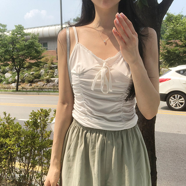 [2color]ラブリーリボンレースシャーリングノースリーブノースリーブ