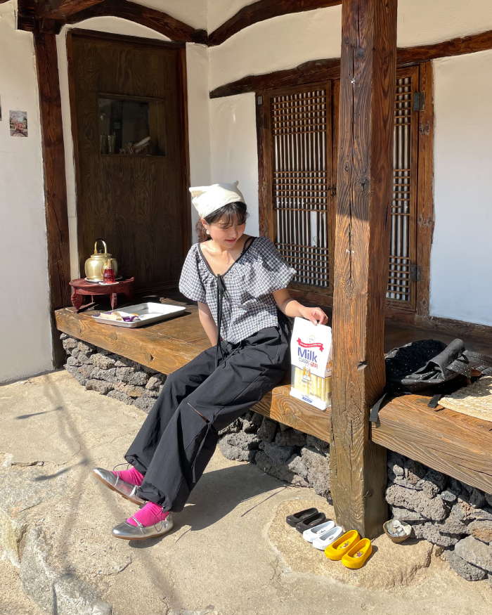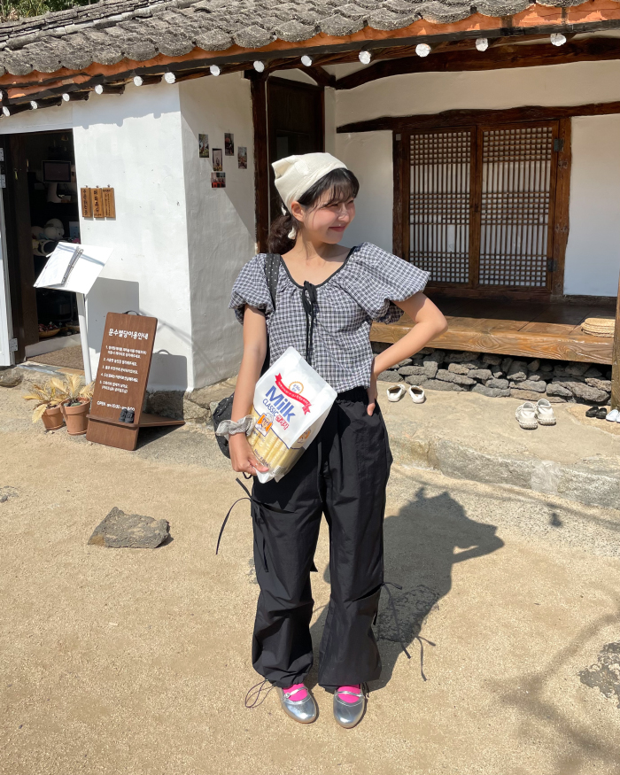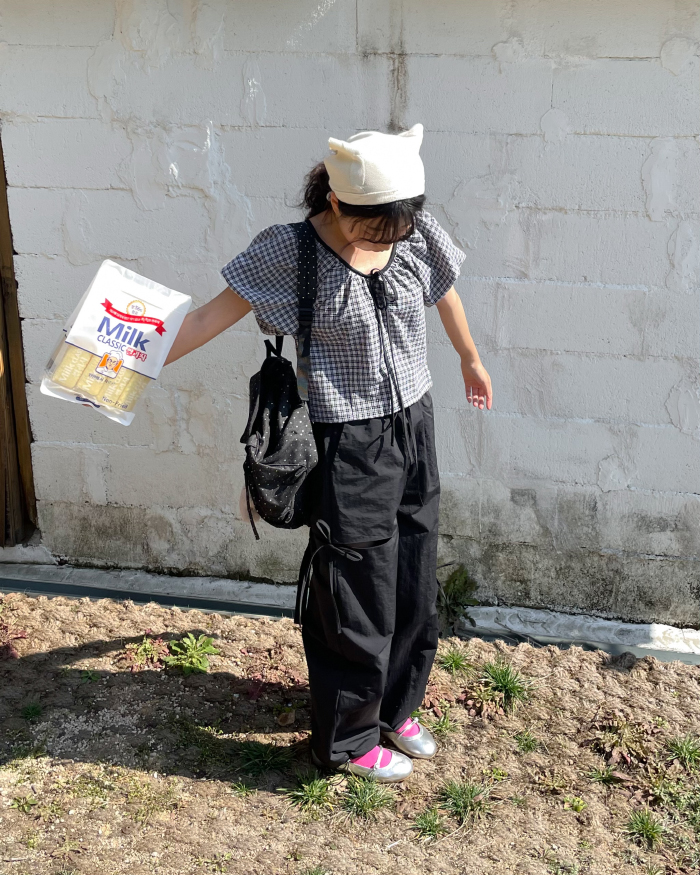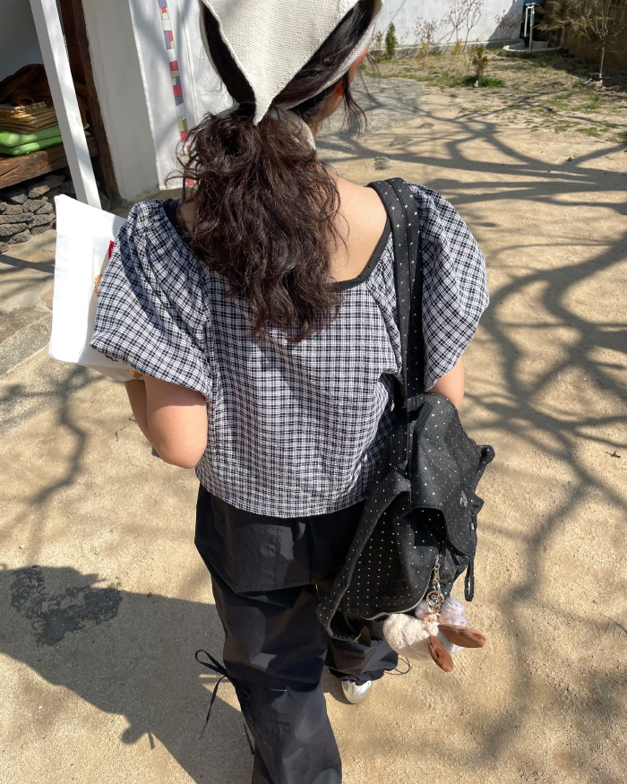 チェッククロップドブラウス(2color)