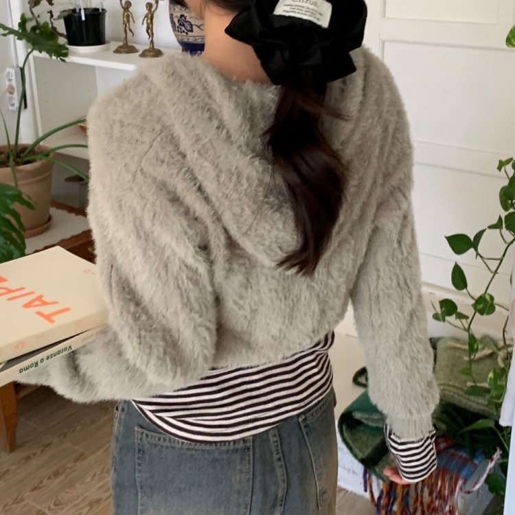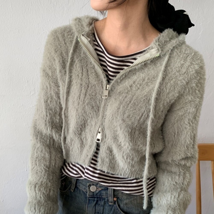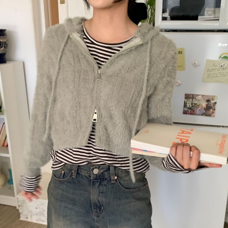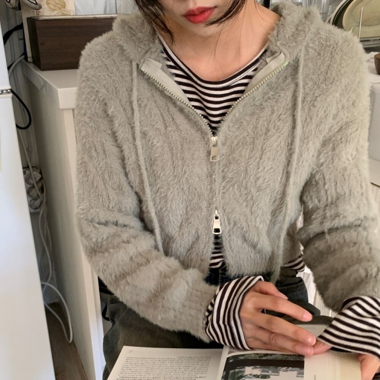 ファークロップドニットパーカー