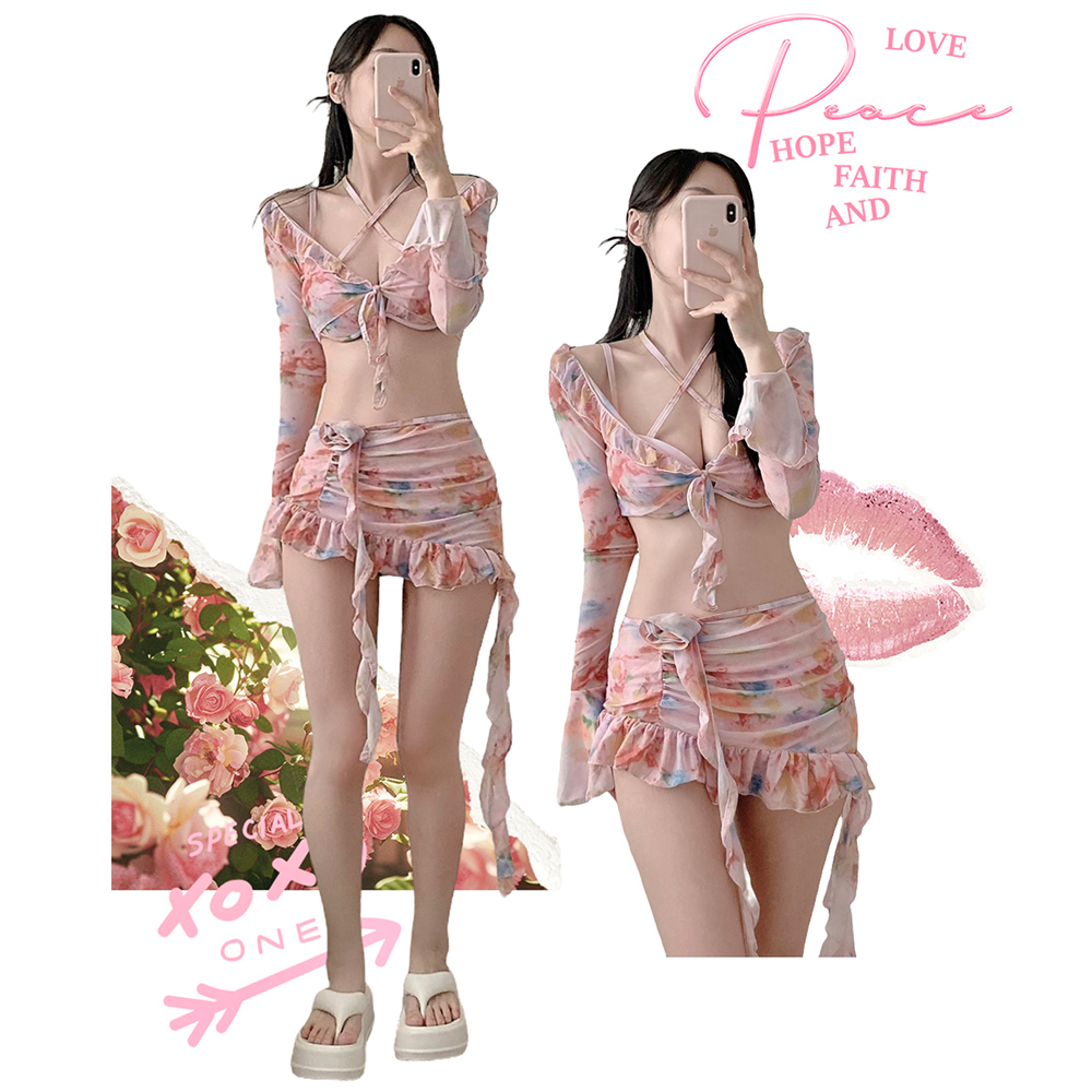 [4点セット] [パッド付き] ビキニ水着シフォンボレロカーディガンスカートセット(1color)