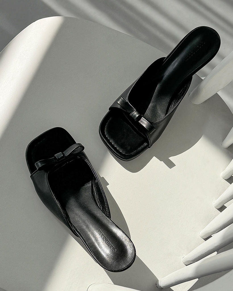 モアナ スクエアトゥ リボンミュール(7cmヒール)