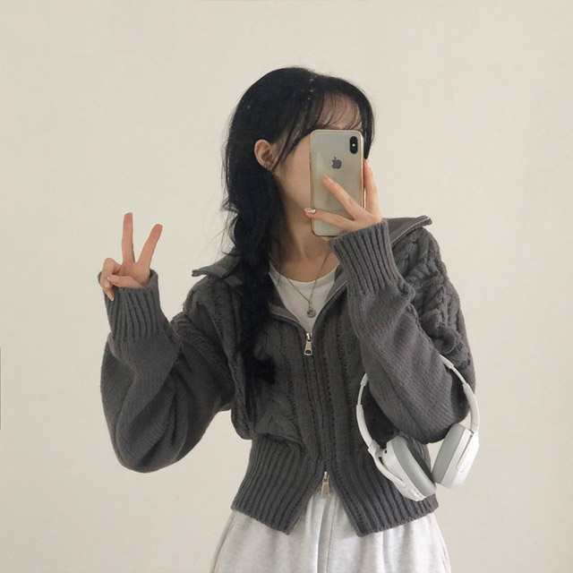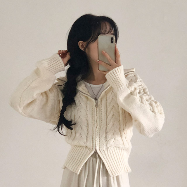ツイスト2WAYフード付きカーディガン