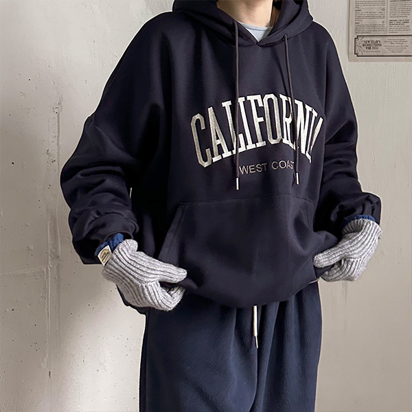 California裏起毛ステッチレタリングオーバーサイズパーカー