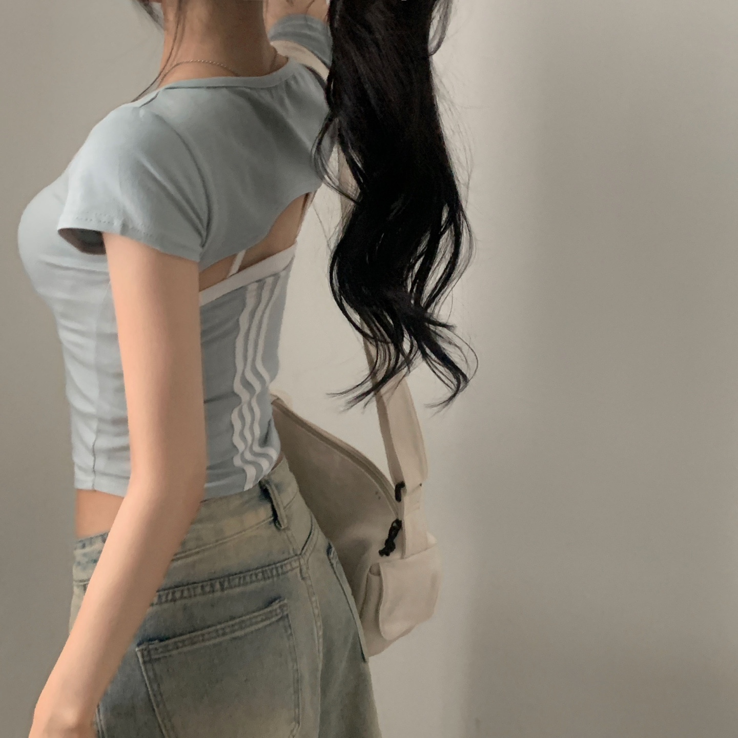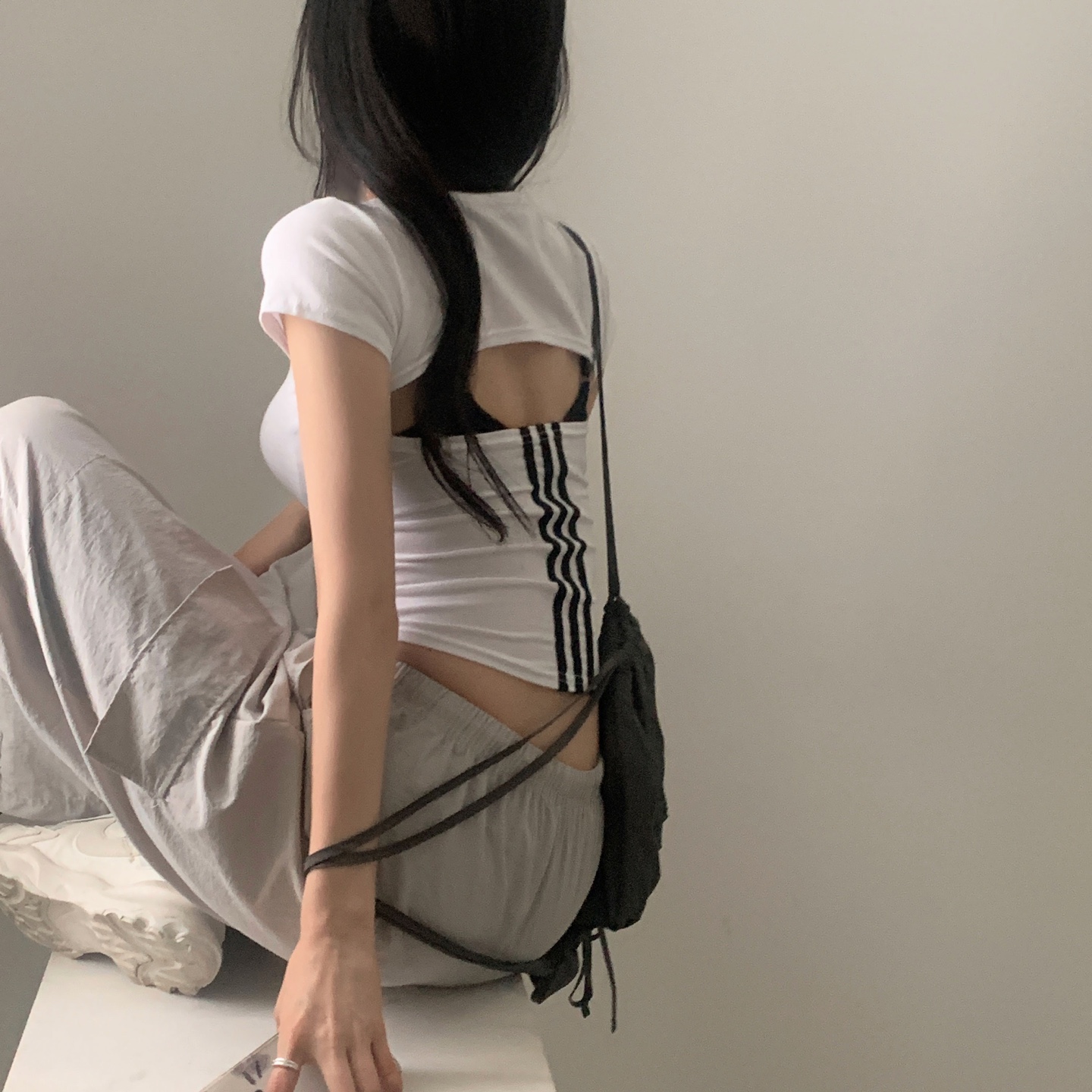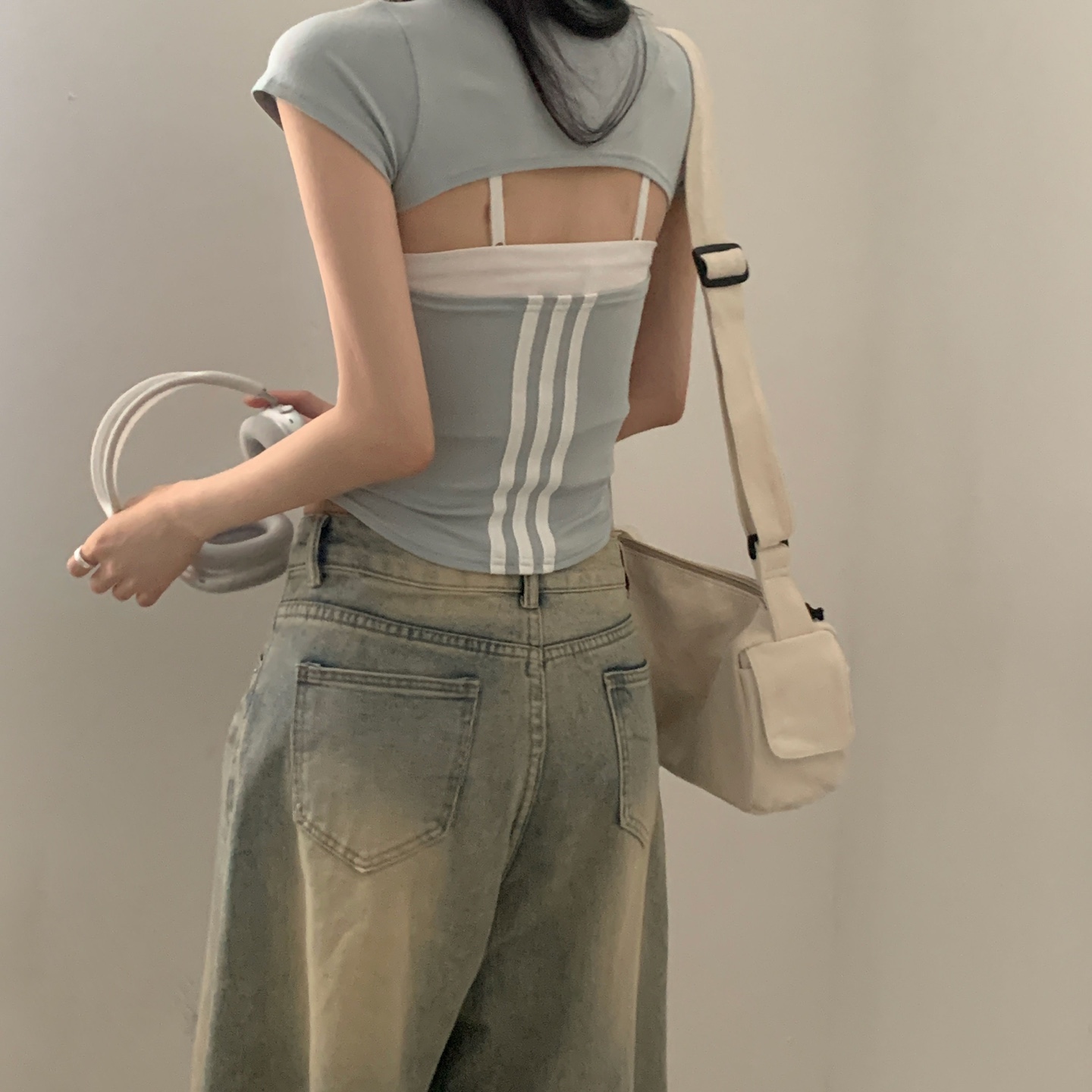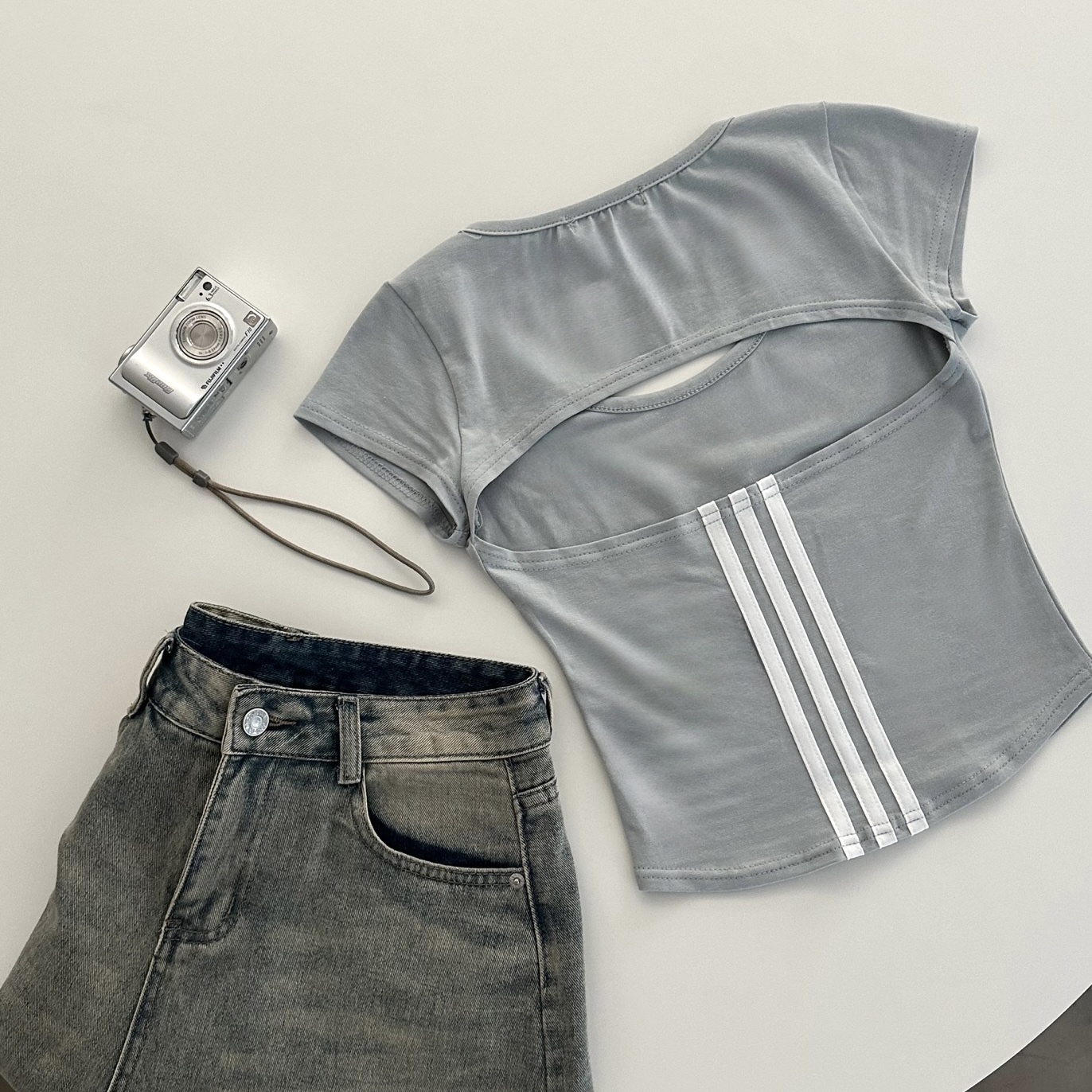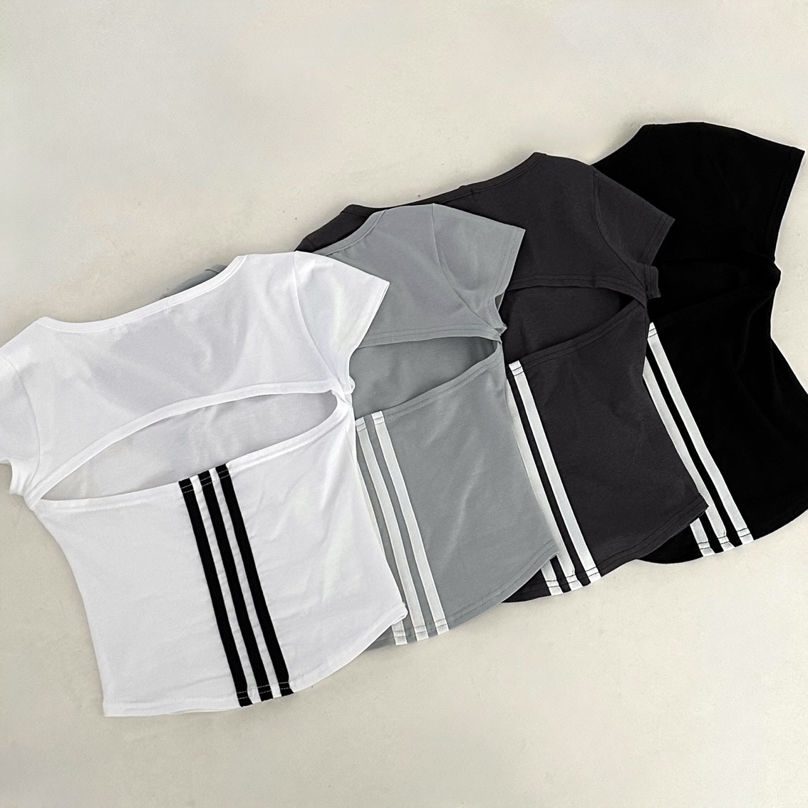 スポーティークロップドバックスリット半袖Tシャツ-4color