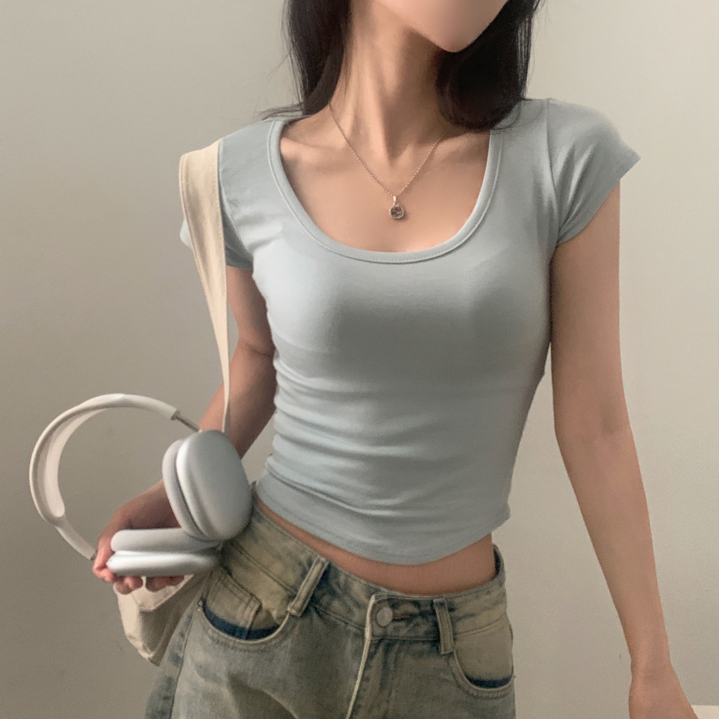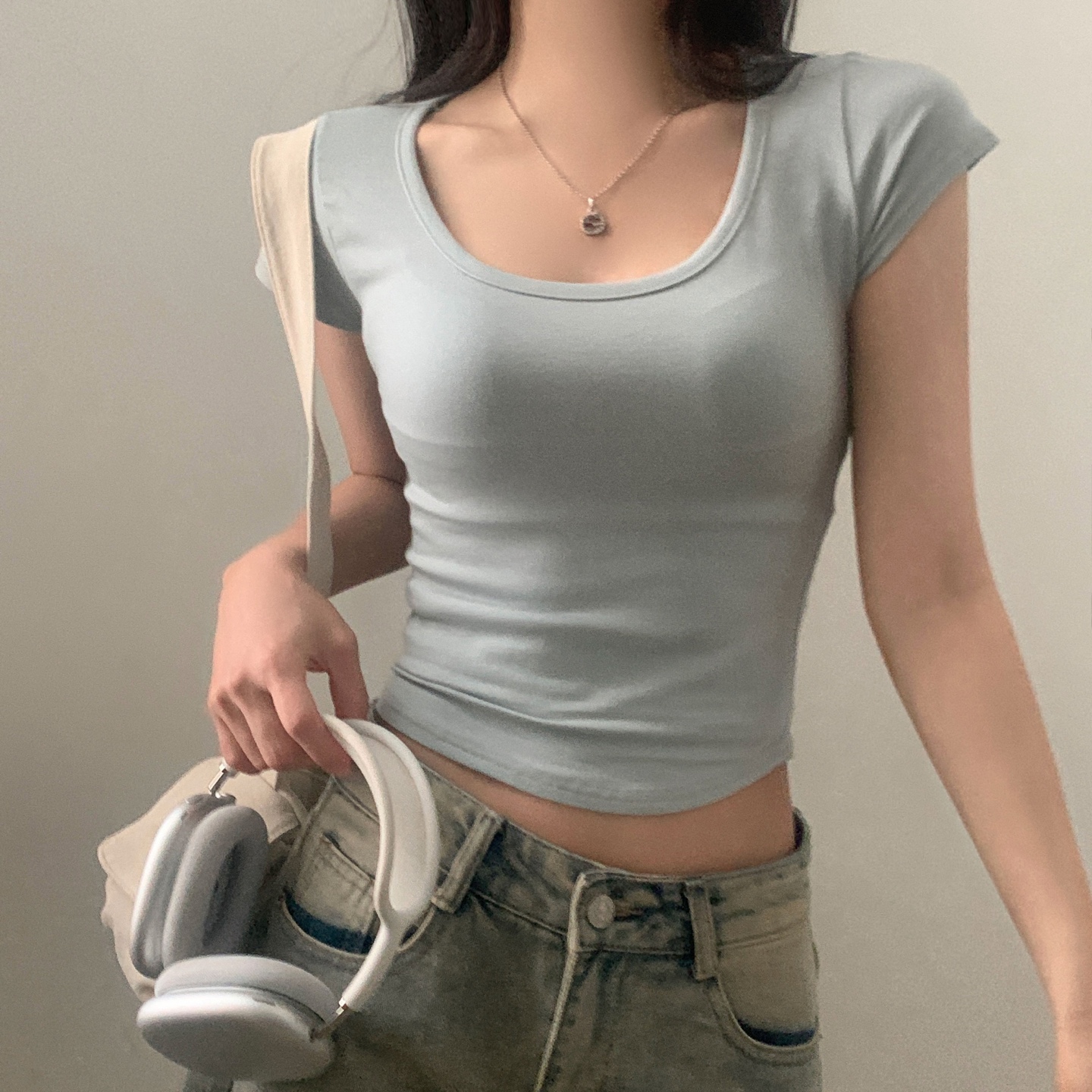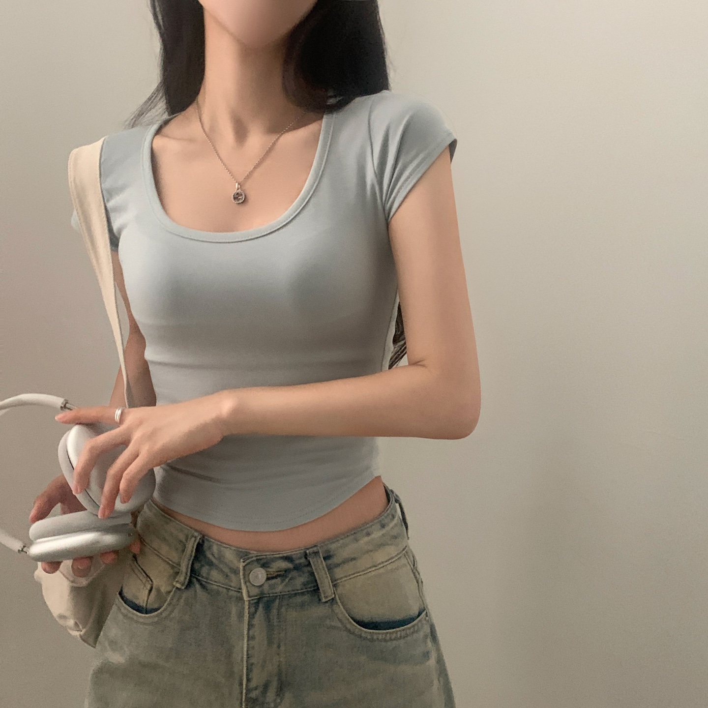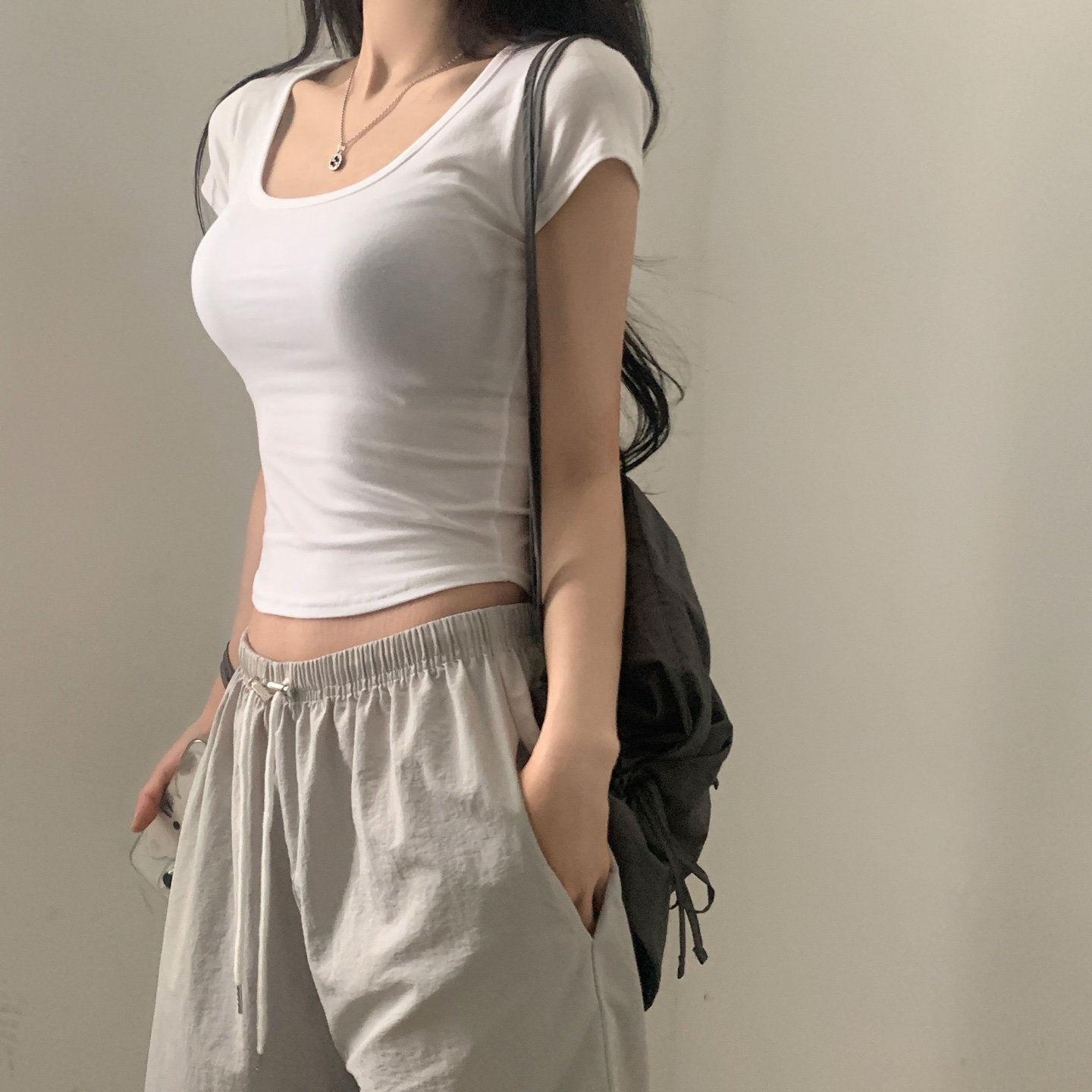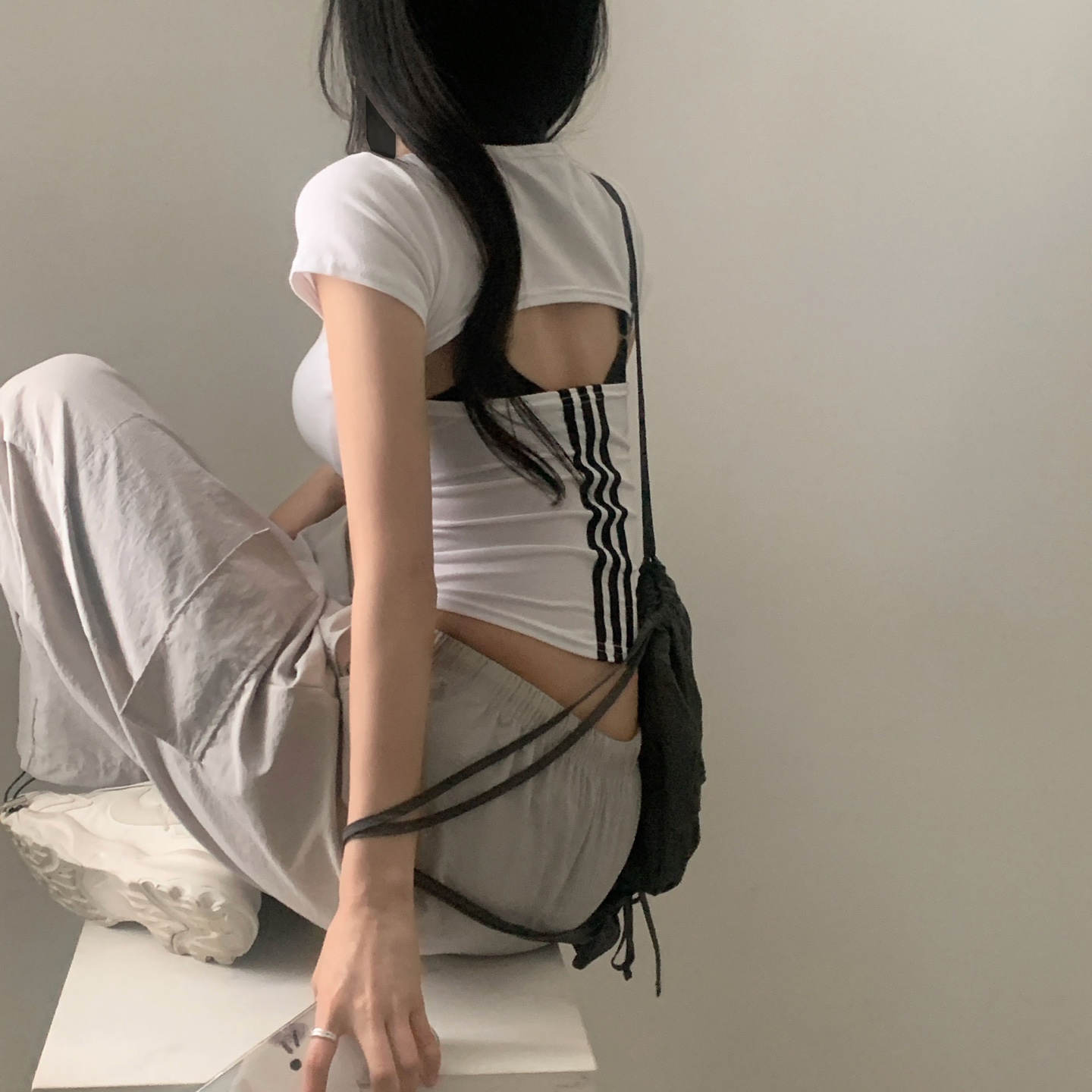 スポーティークロップドバックスリット半袖Tシャツ-4color