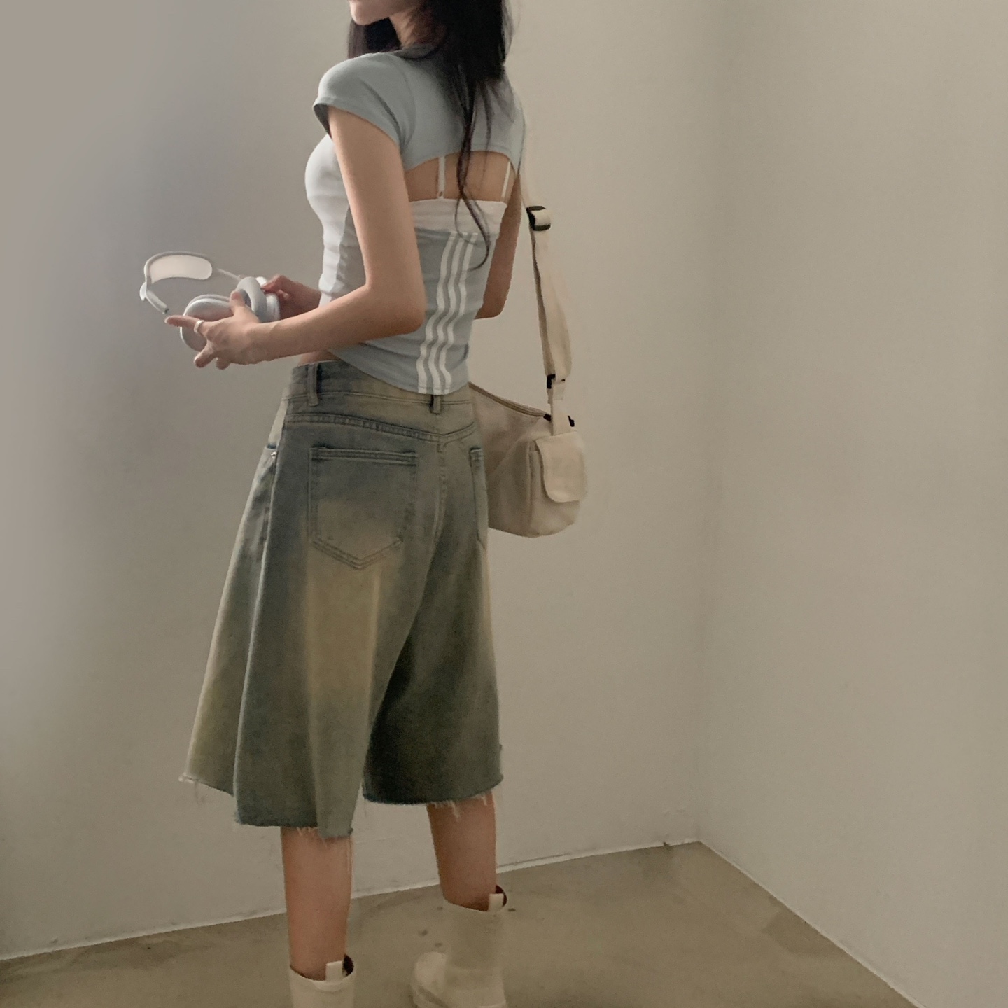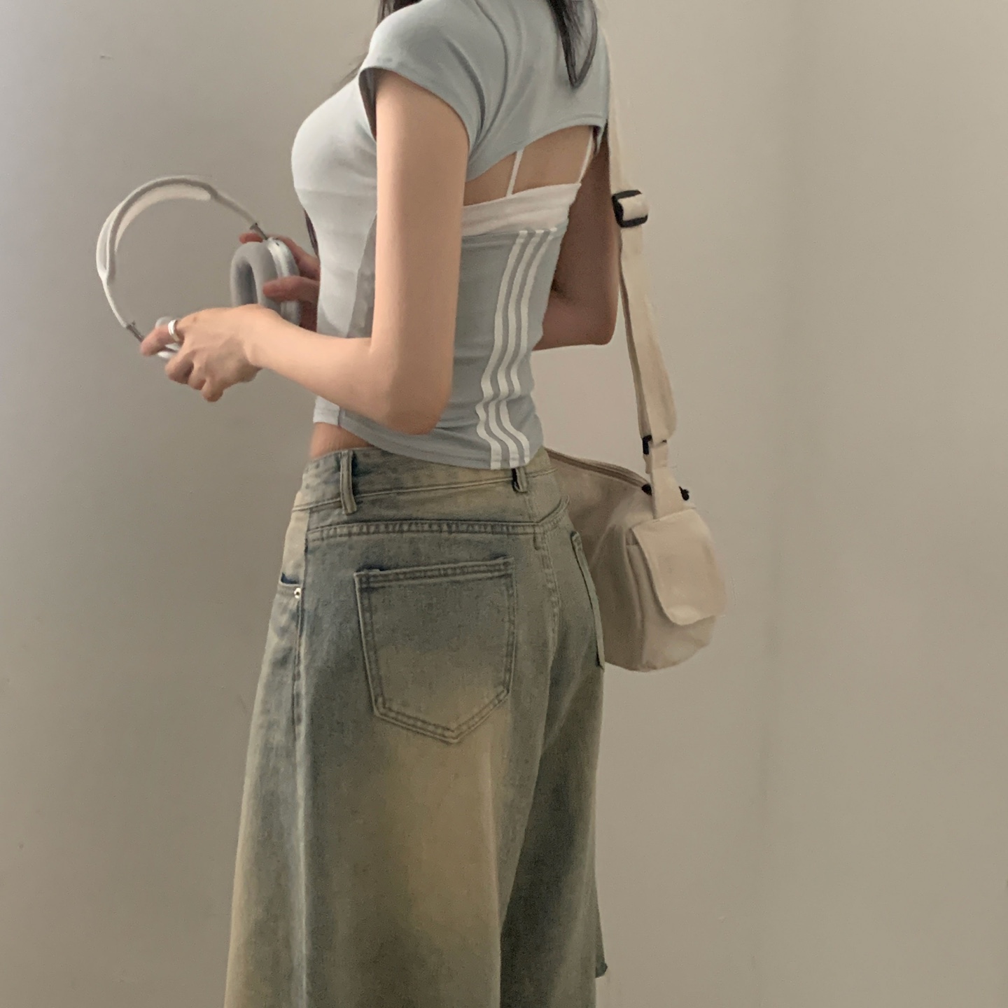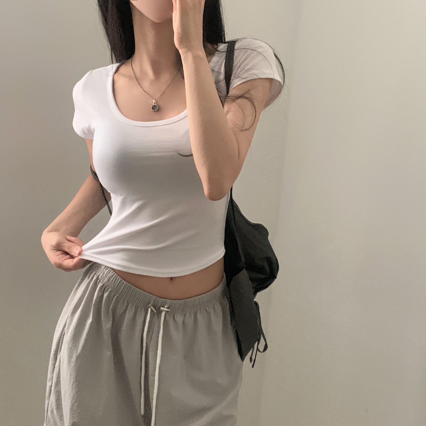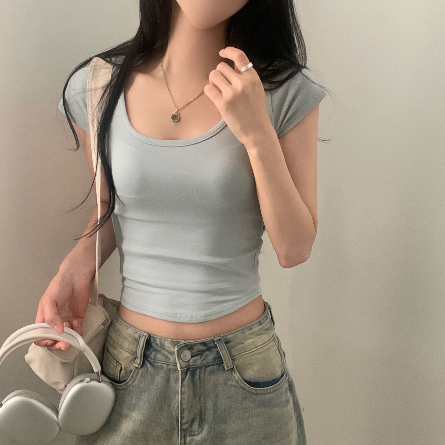 スポーティークロップドバックスリット半袖Tシャツ-4color