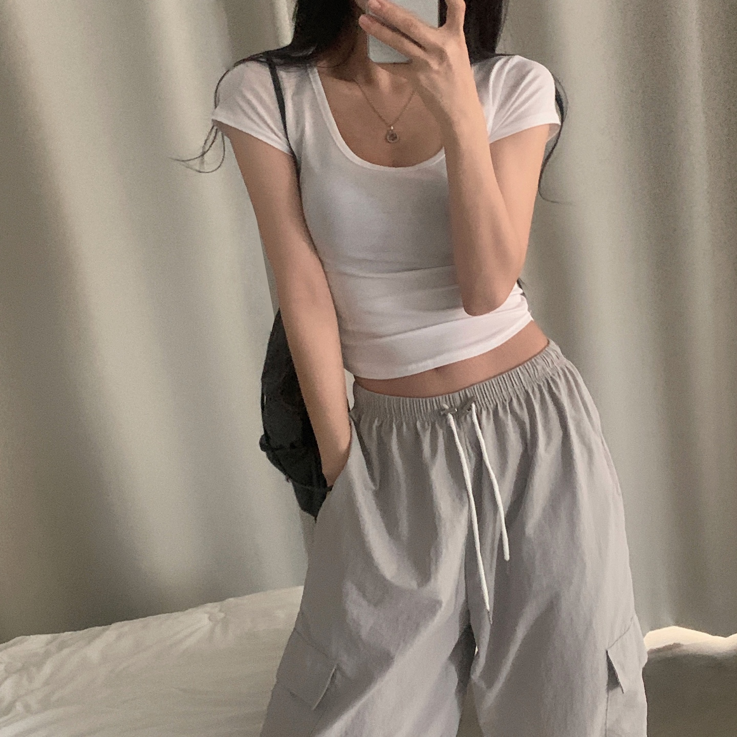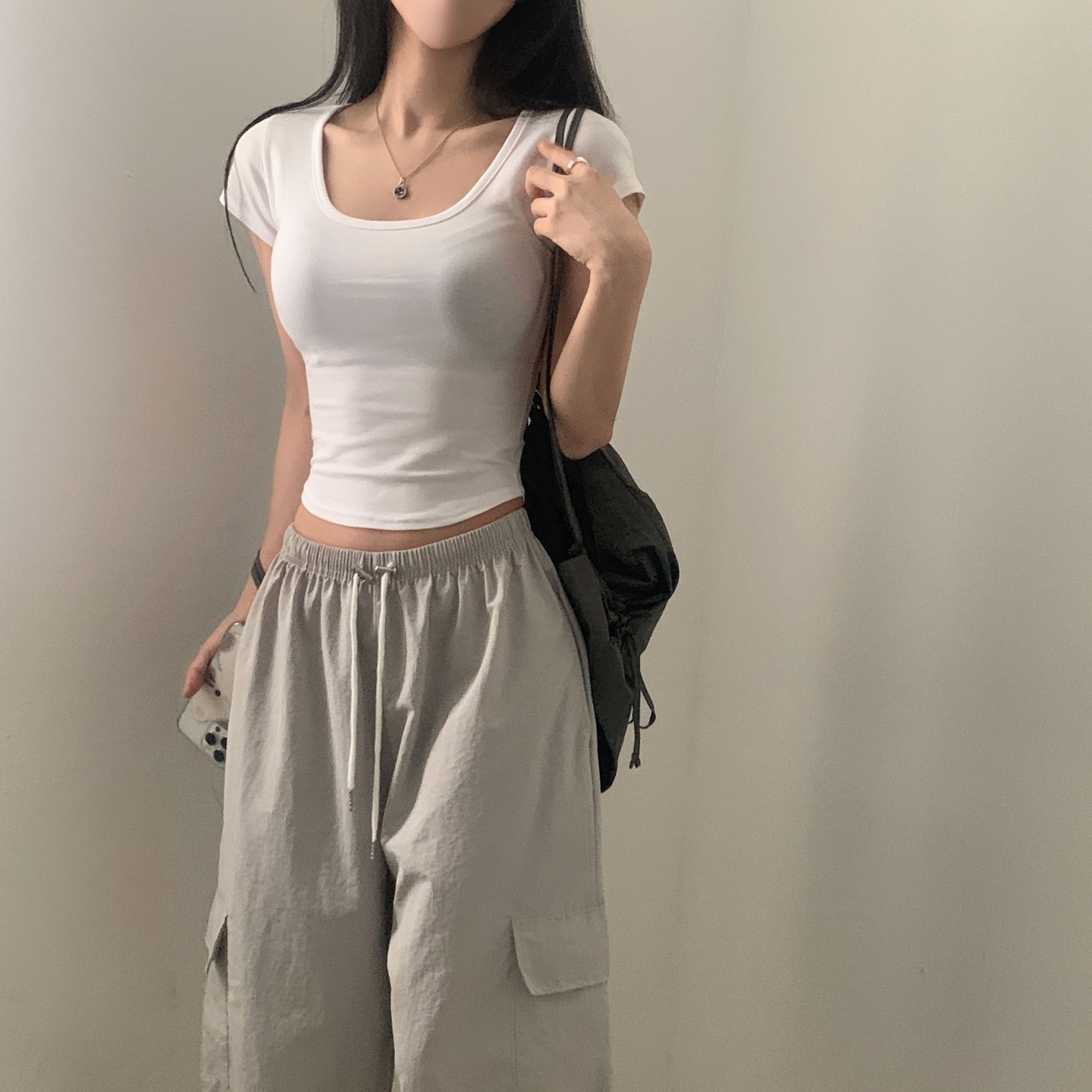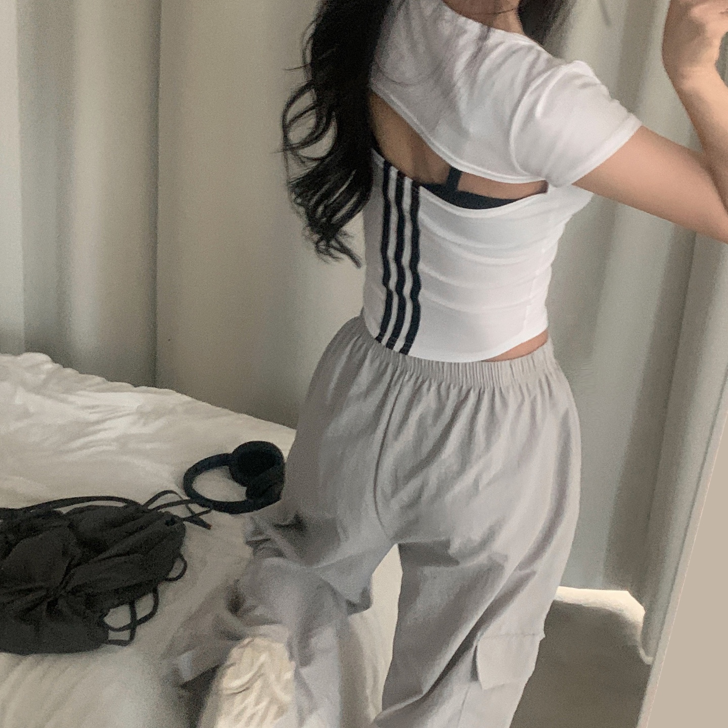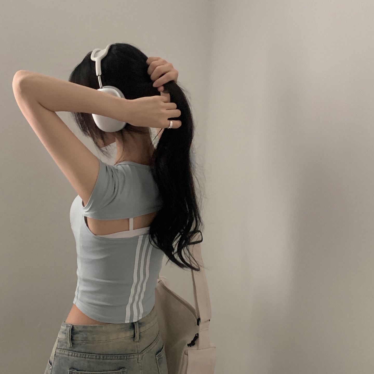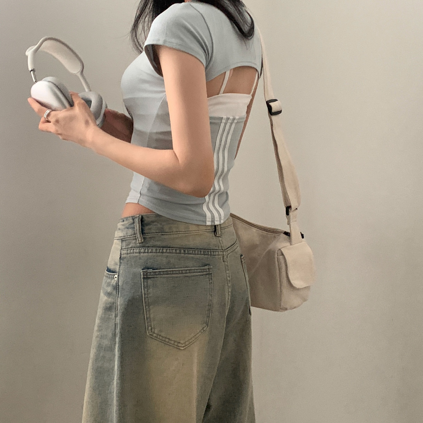 スポーティークロップドバックスリット半袖Tシャツ-4color
