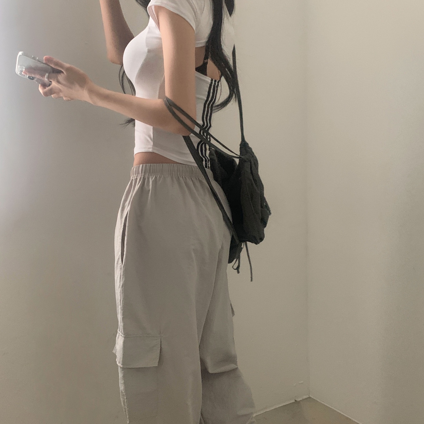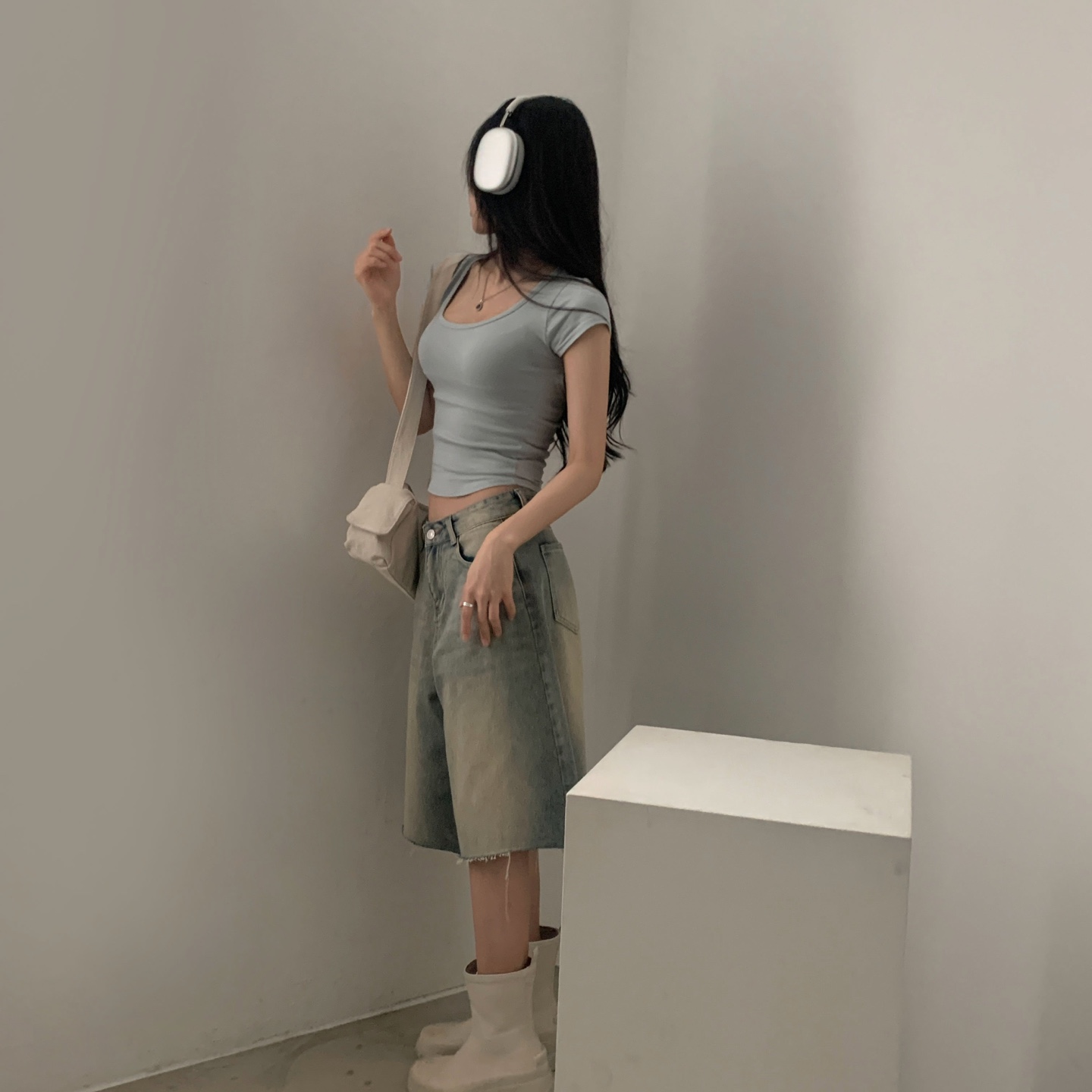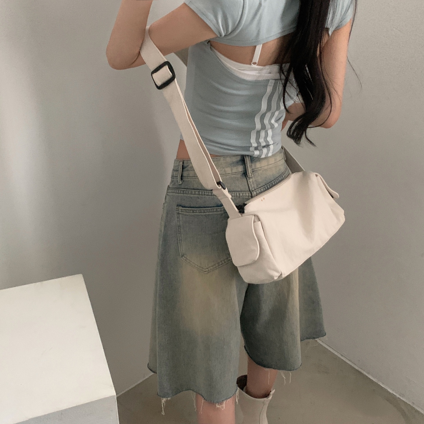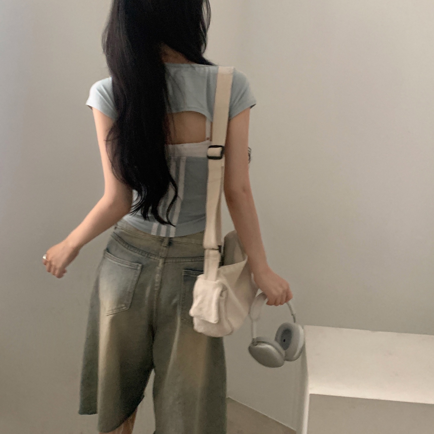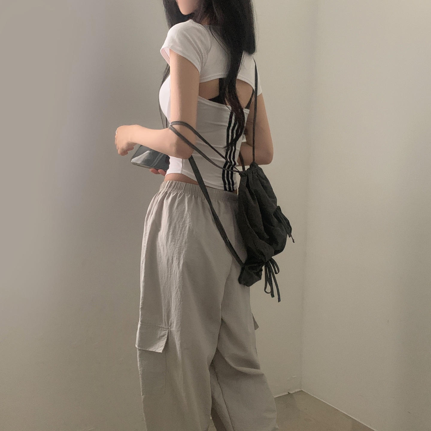 スポーティークロップドバックスリット半袖Tシャツ-4color
