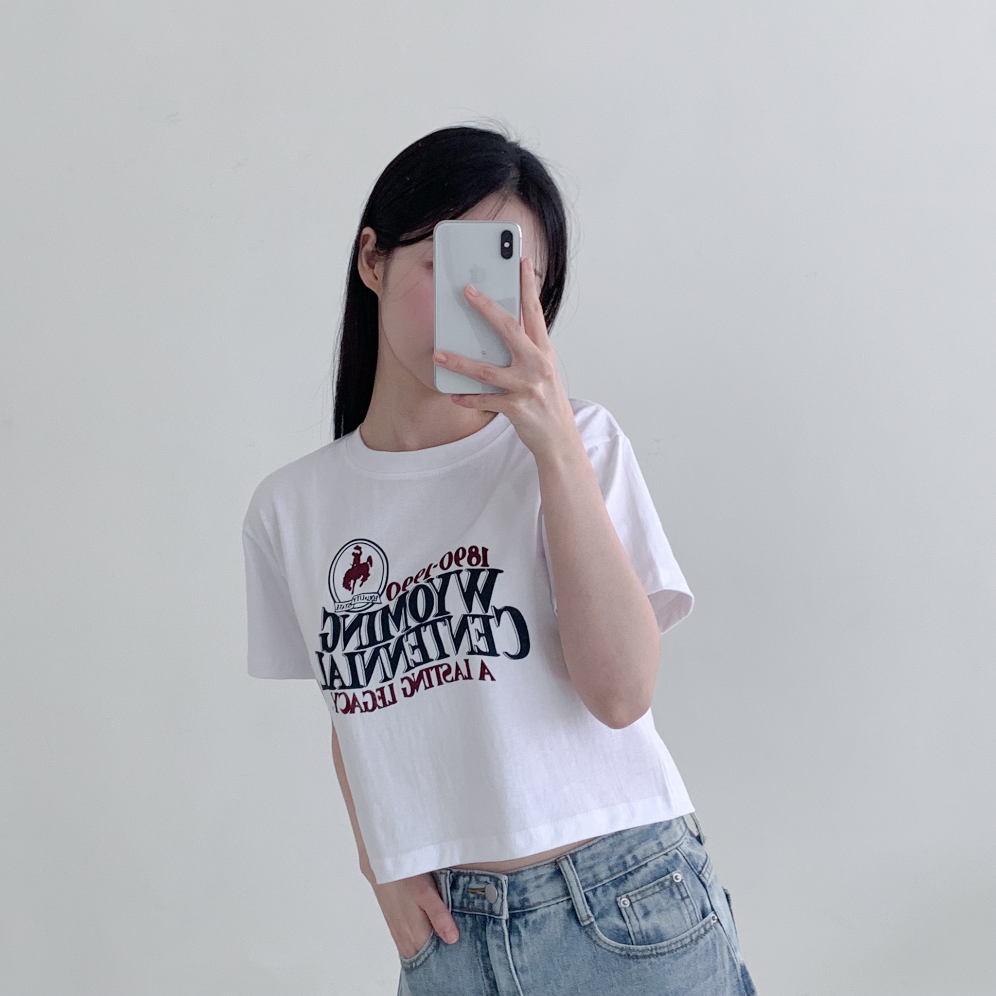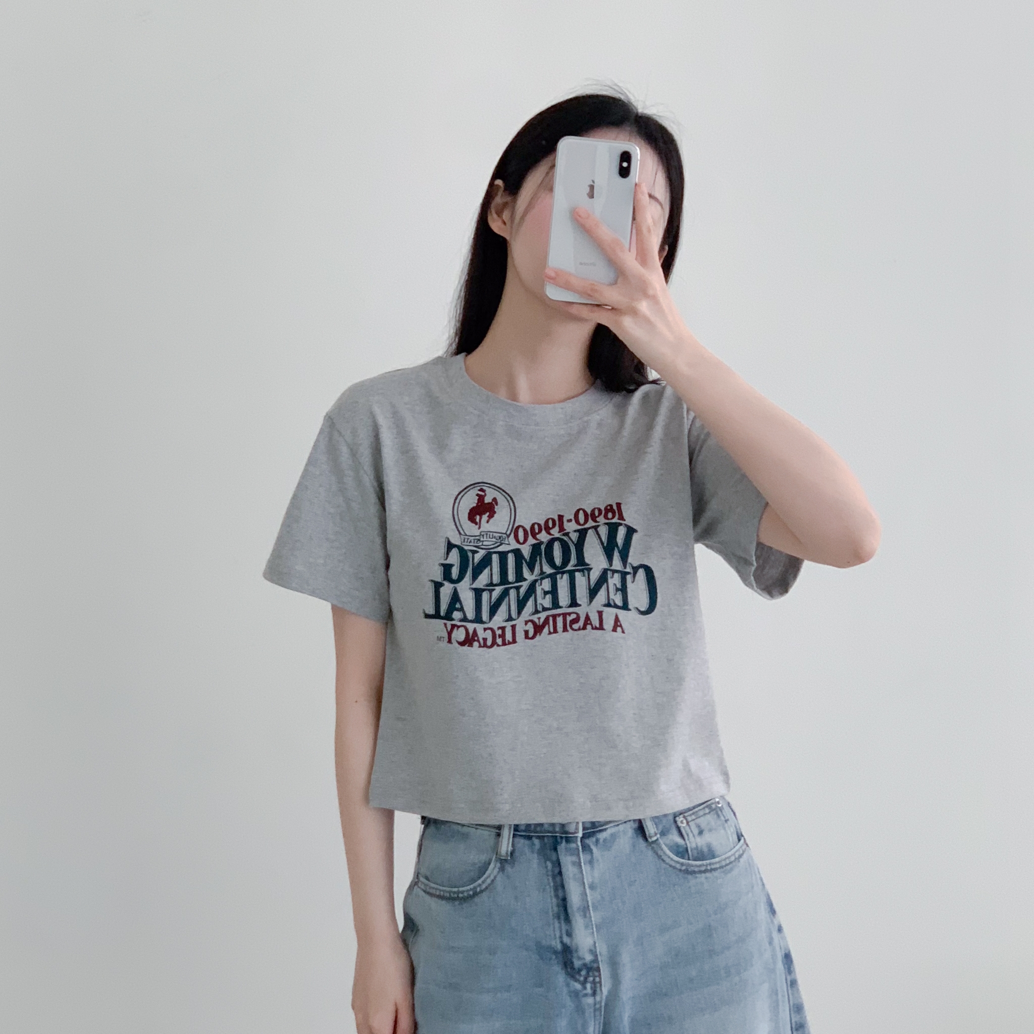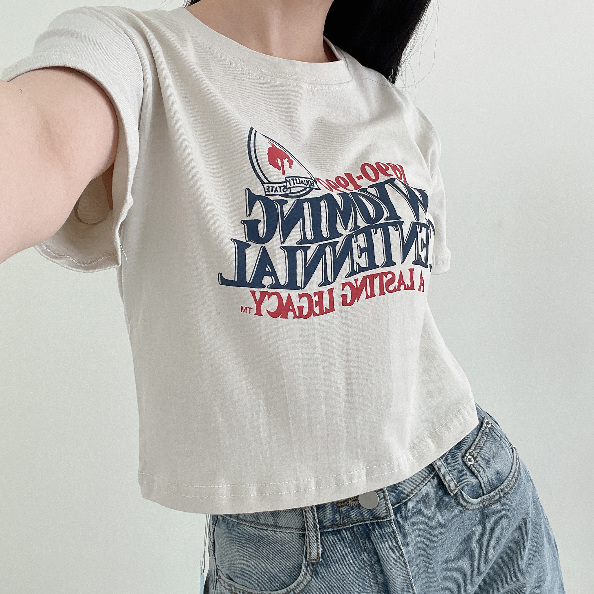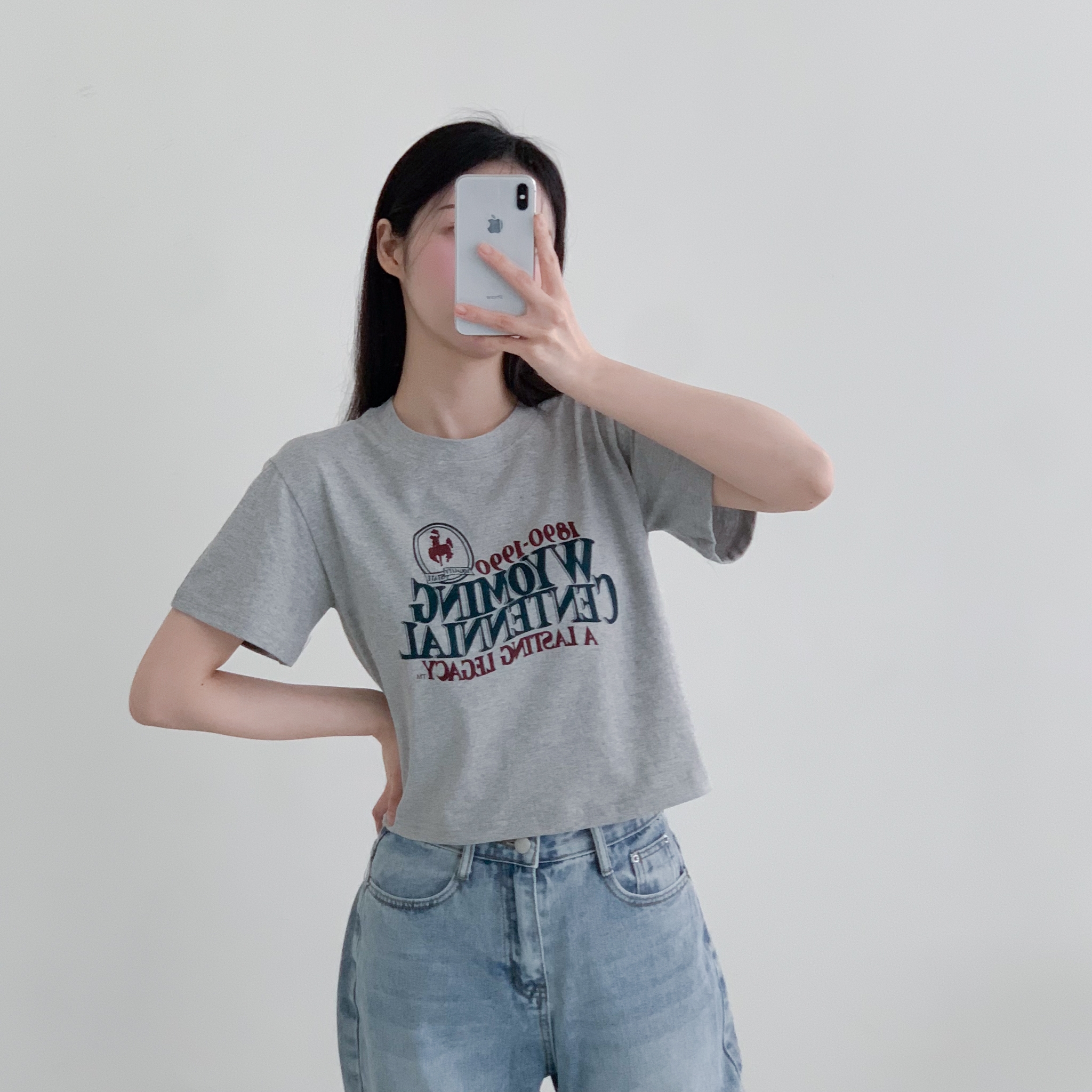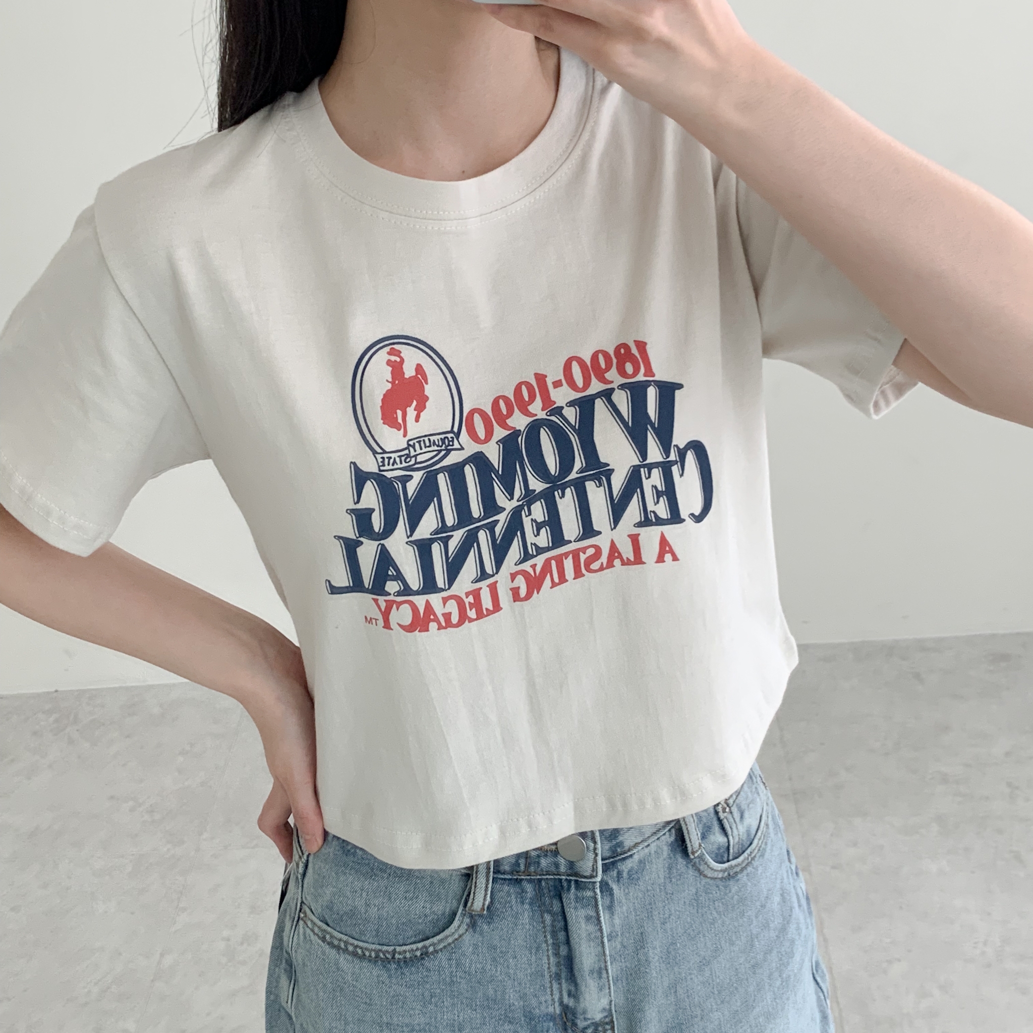 ラスティングレタリングクロップド半袖Tシャツ-4color