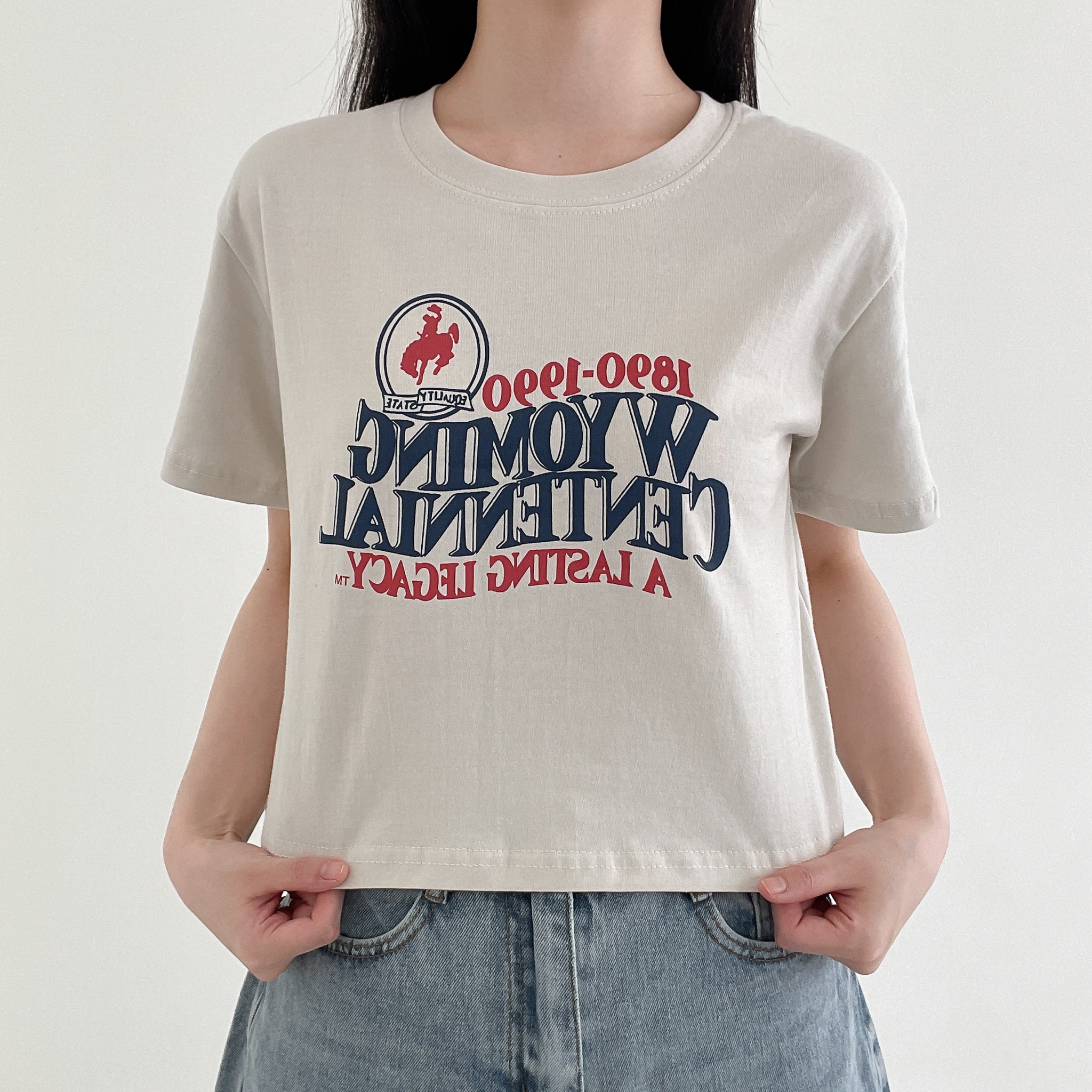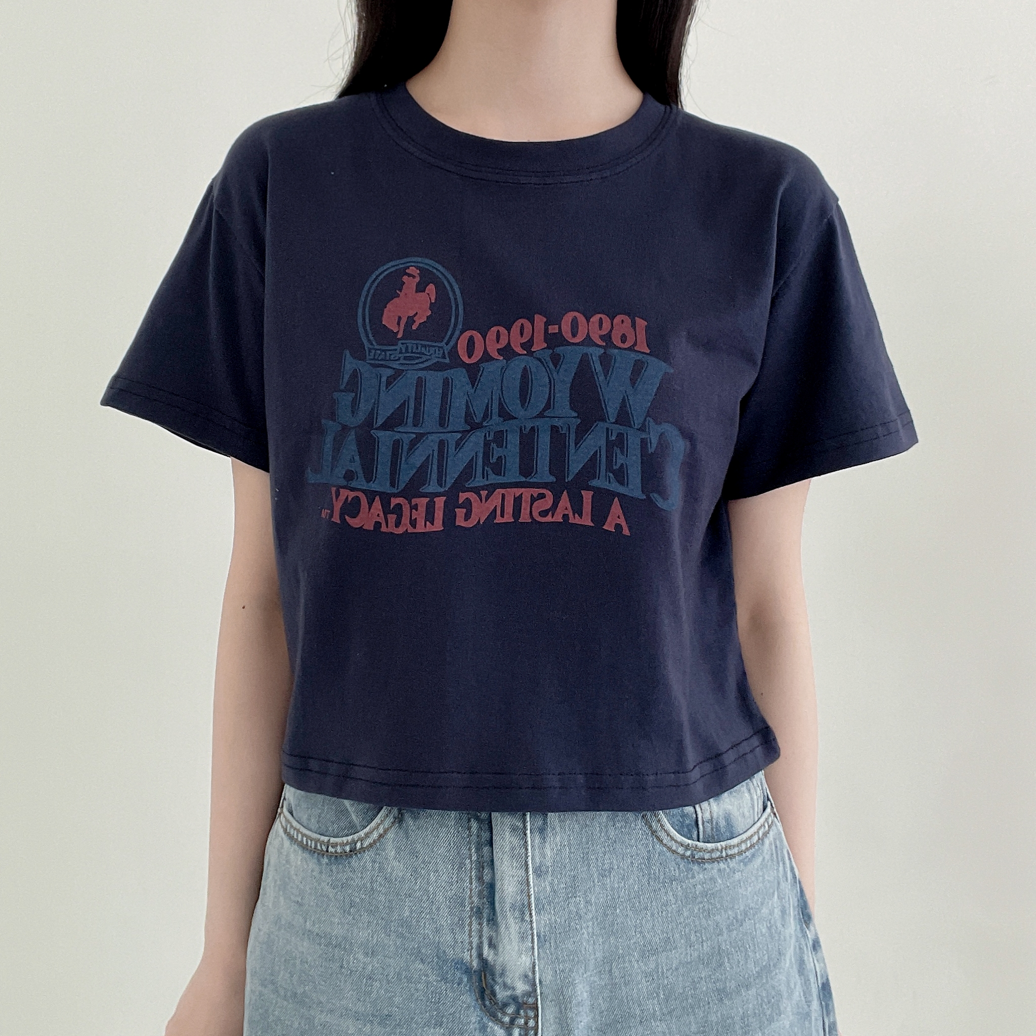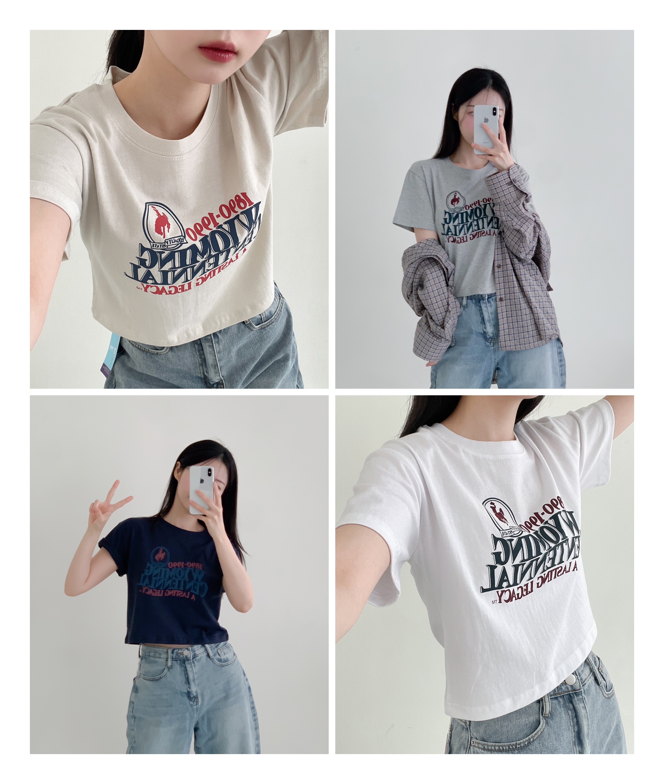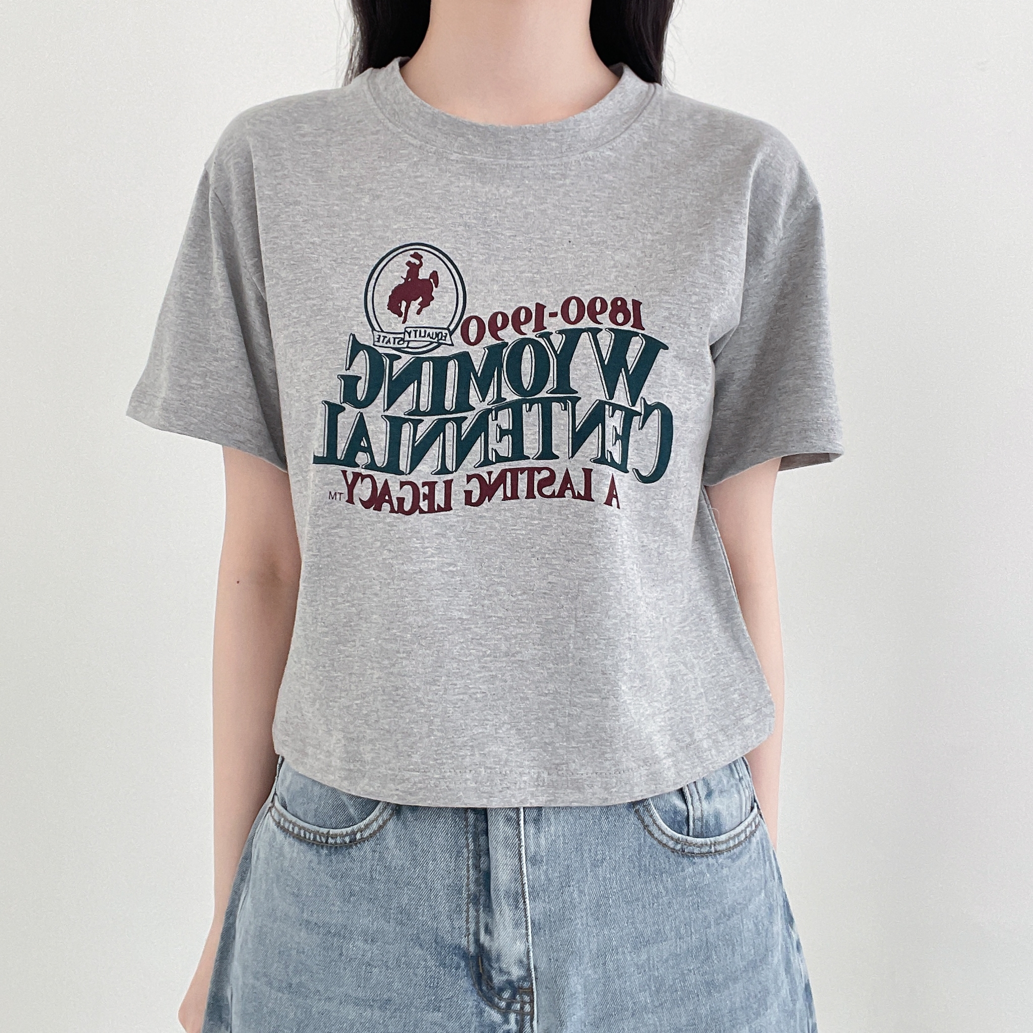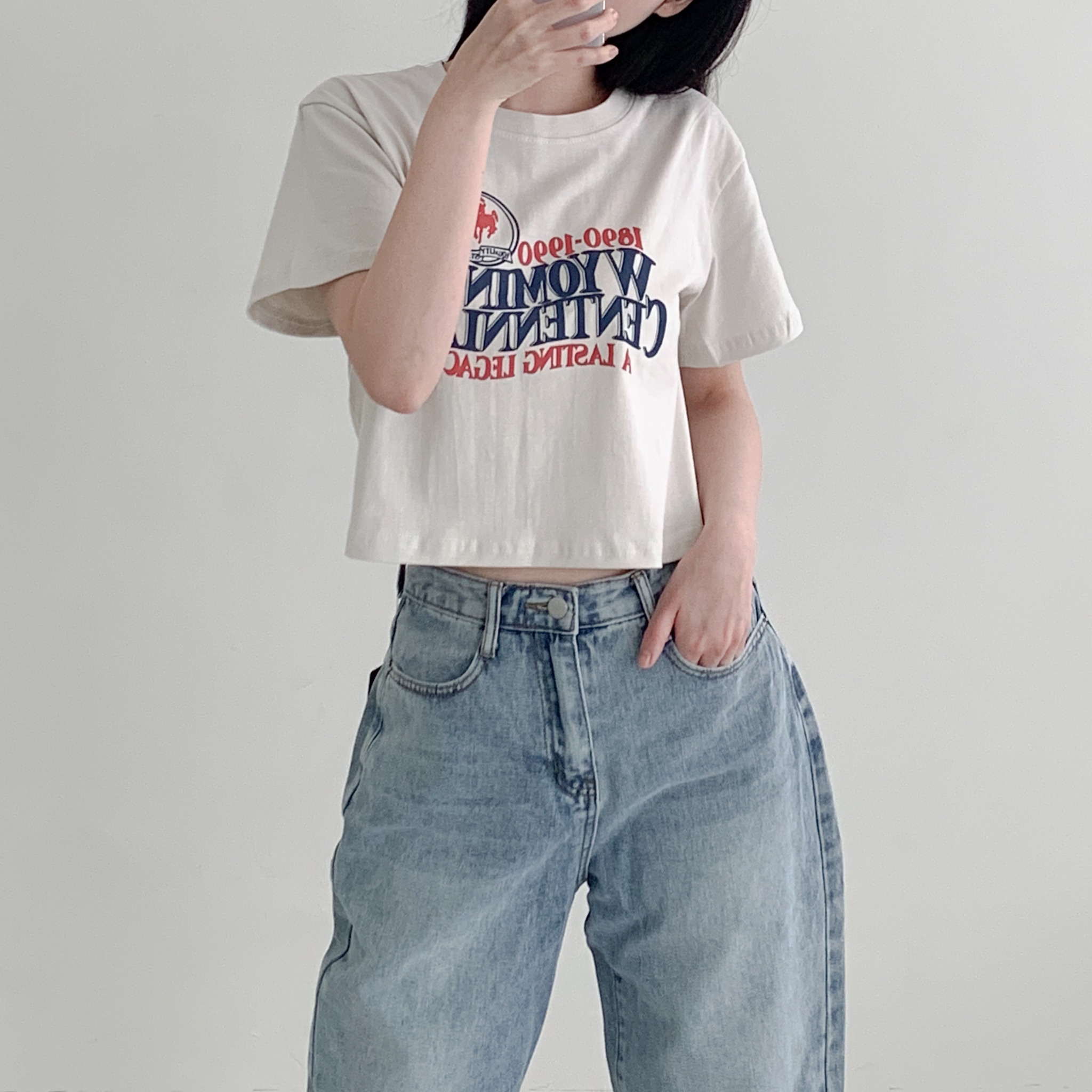 ラスティングレタリングクロップド半袖Tシャツ-4color