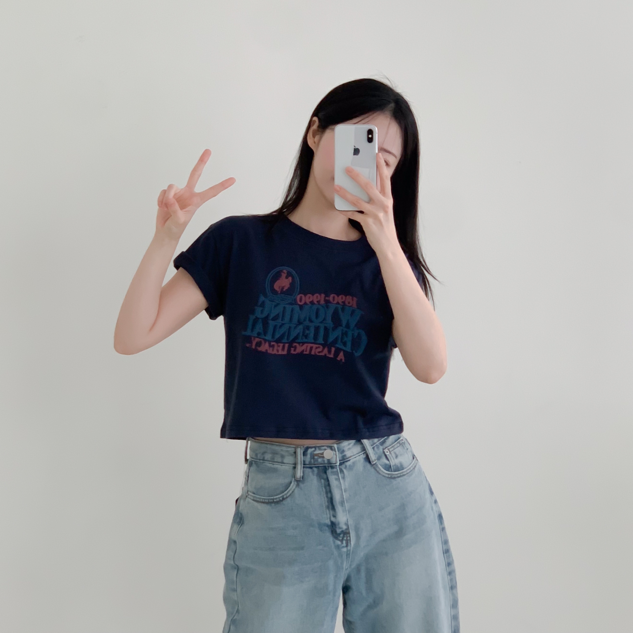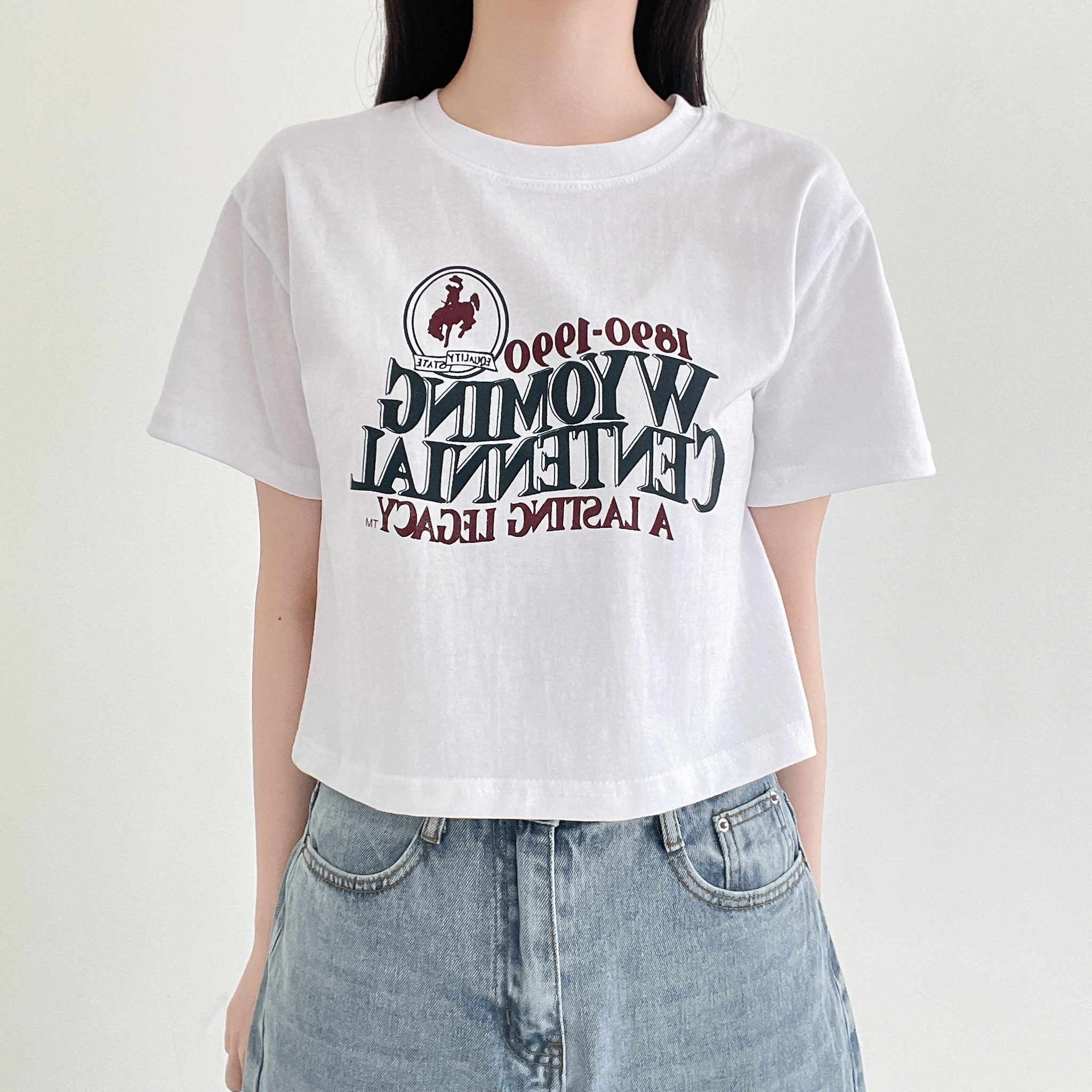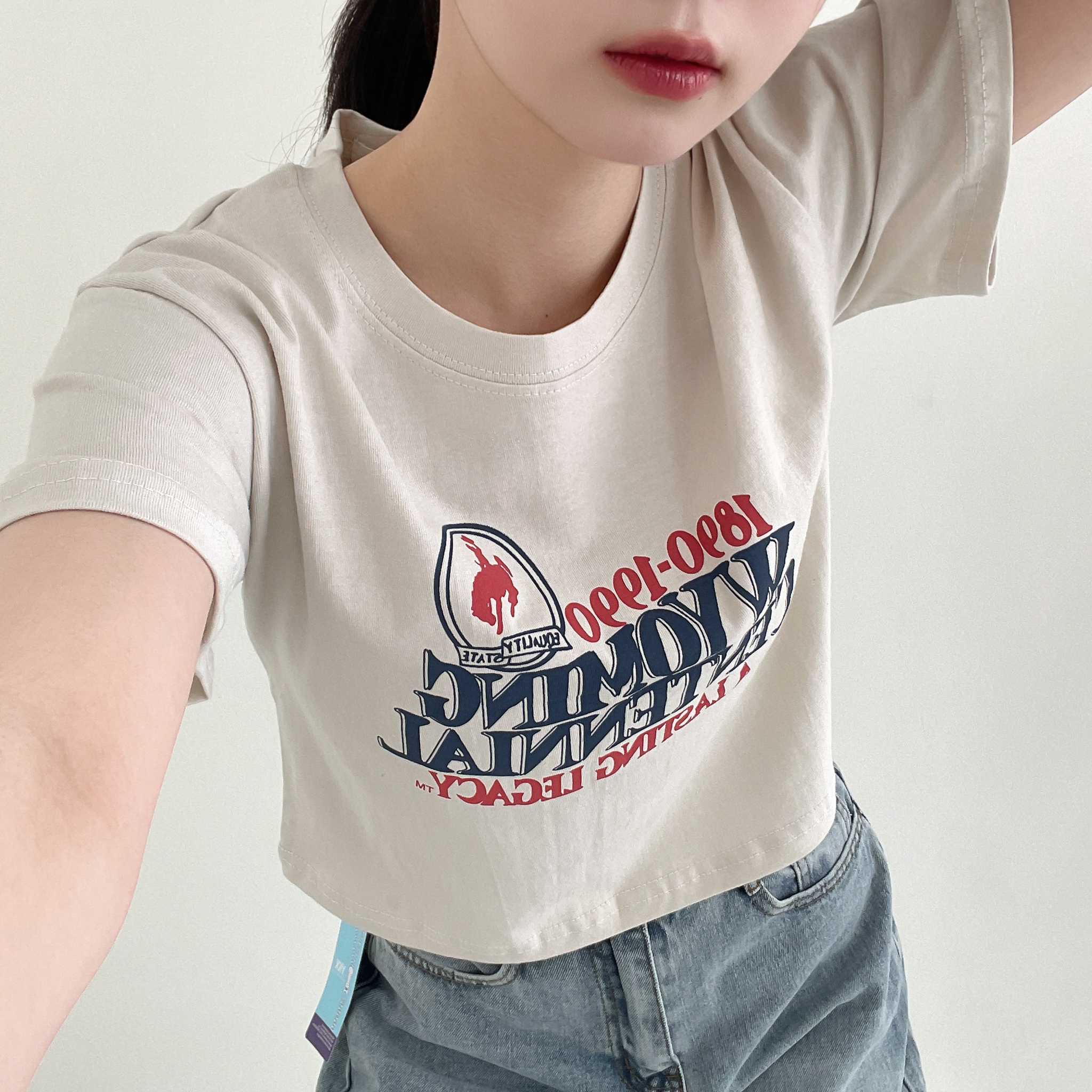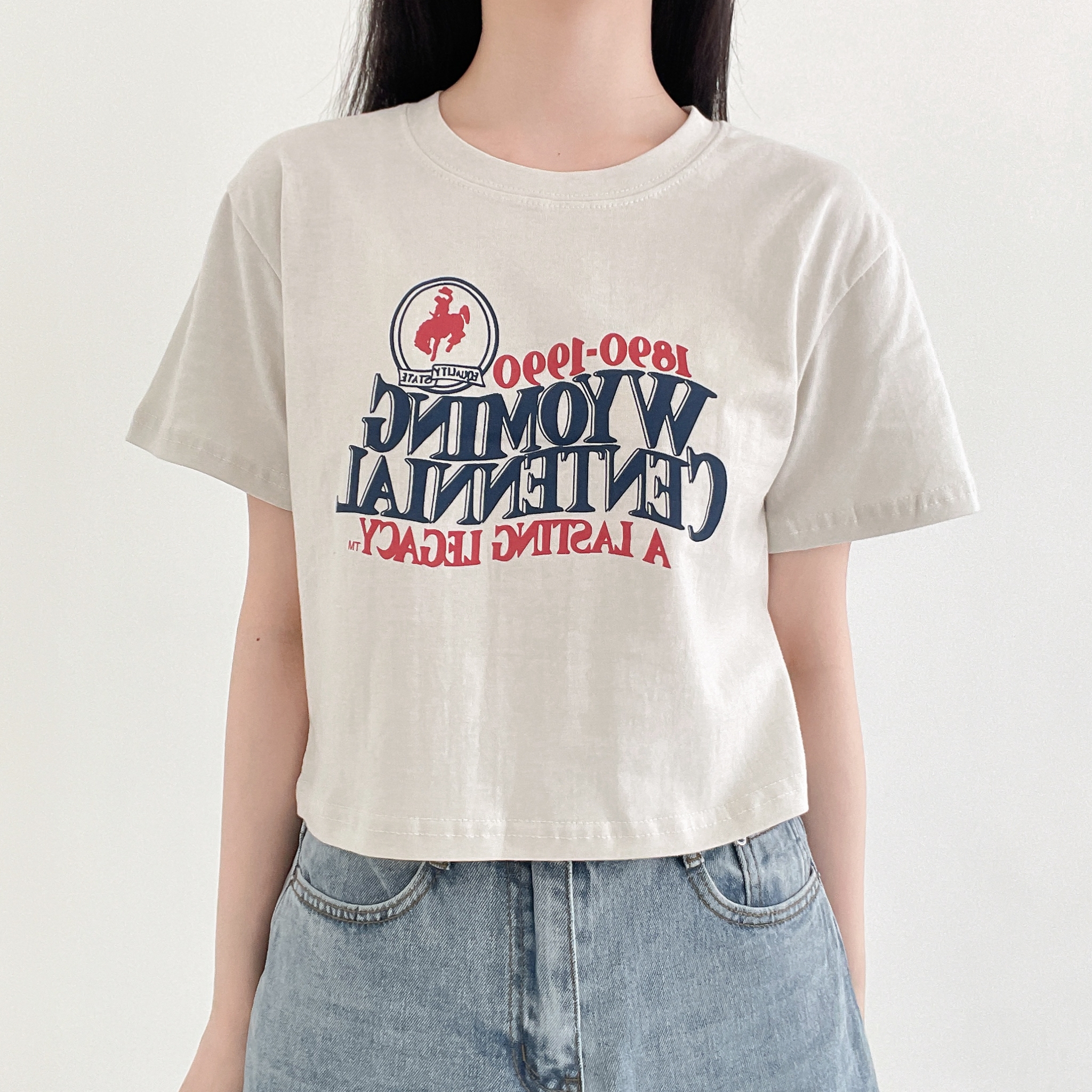 ラスティングレタリングクロップド半袖Tシャツ-4color