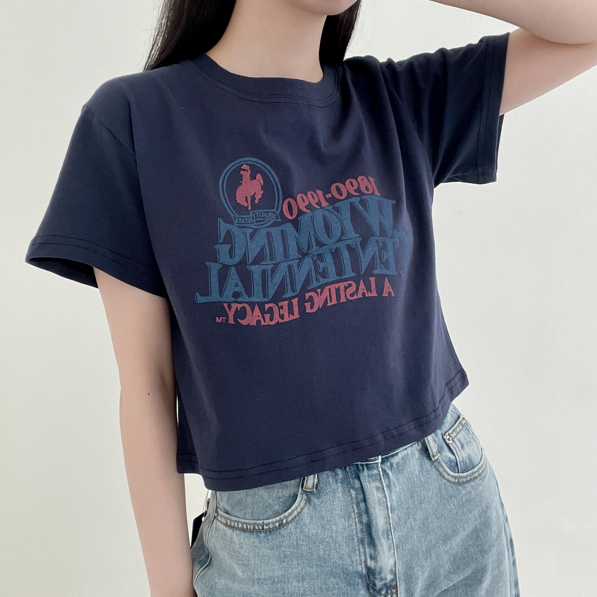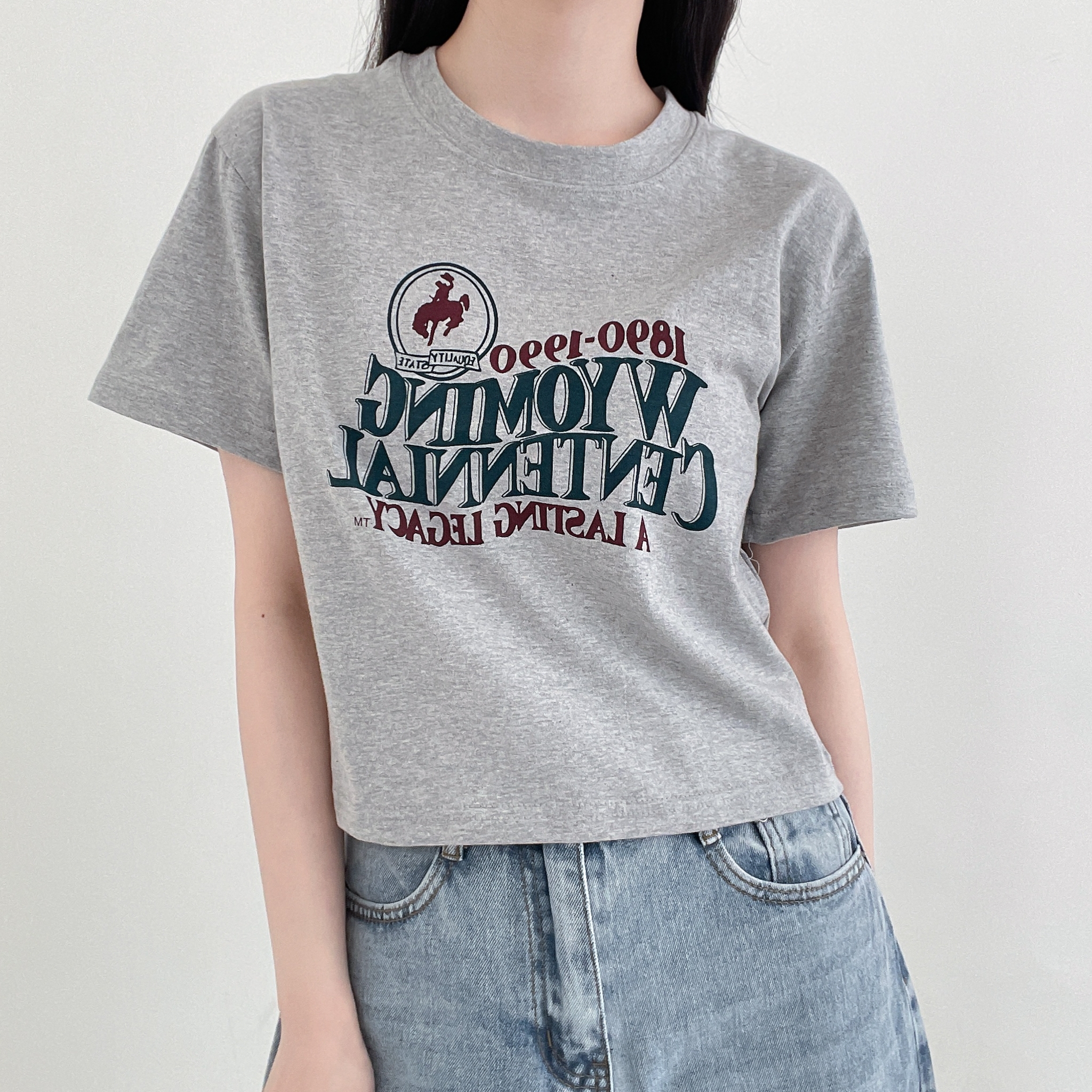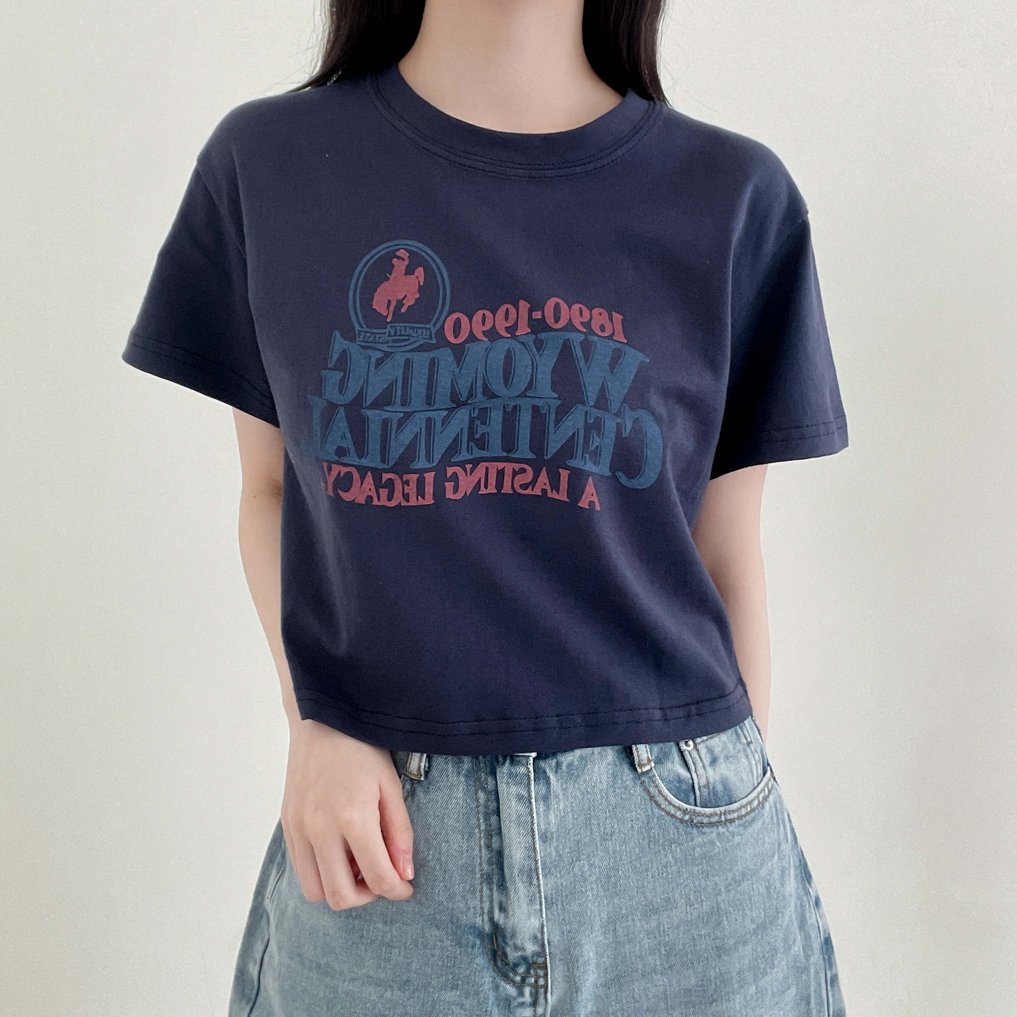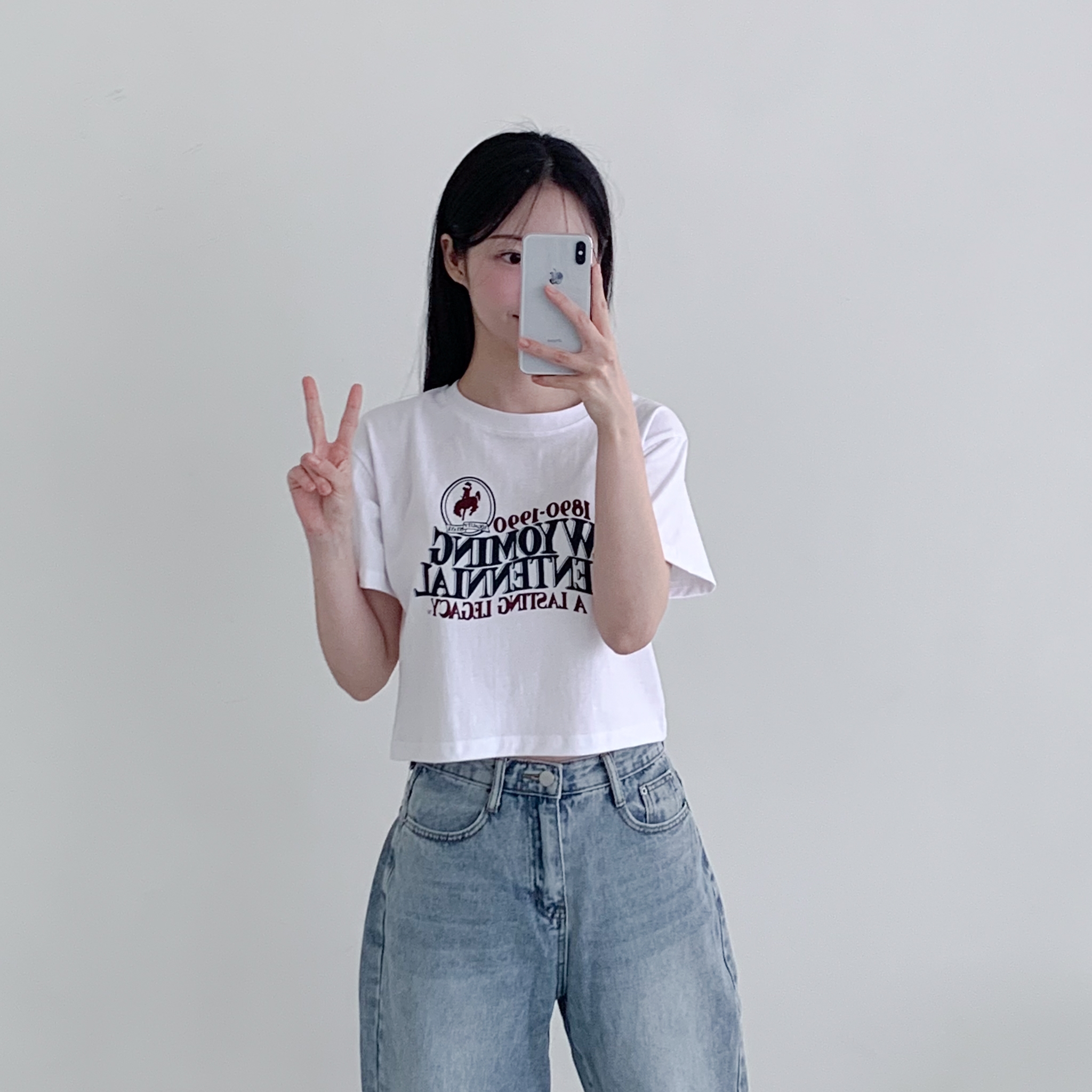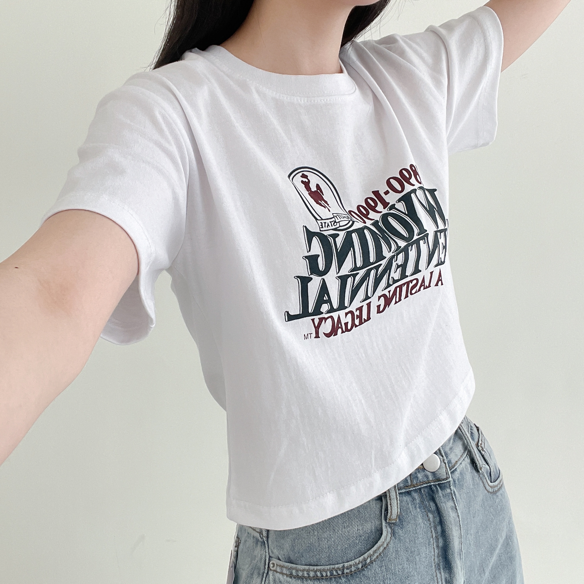 ラスティングレタリングクロップド半袖Tシャツ-4color