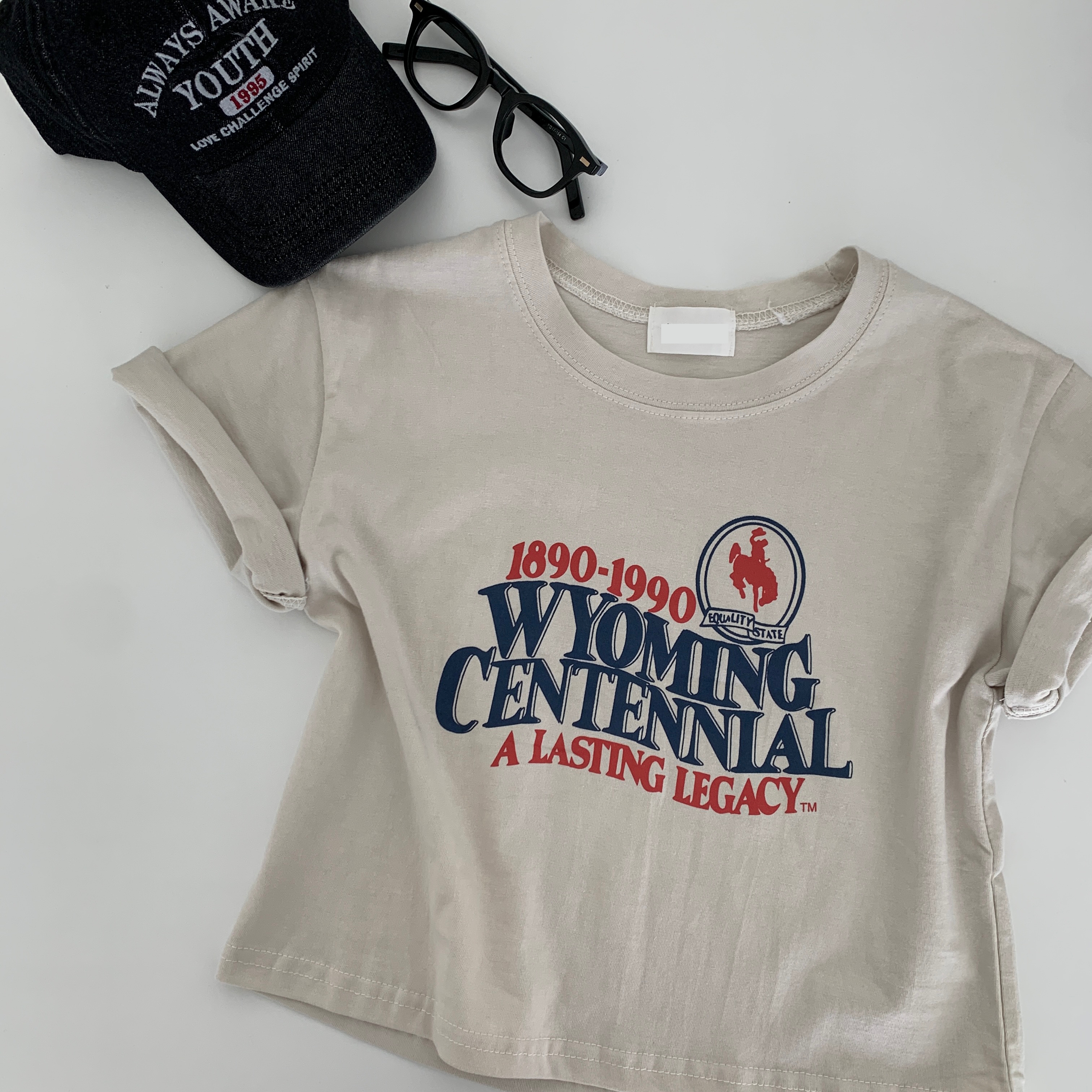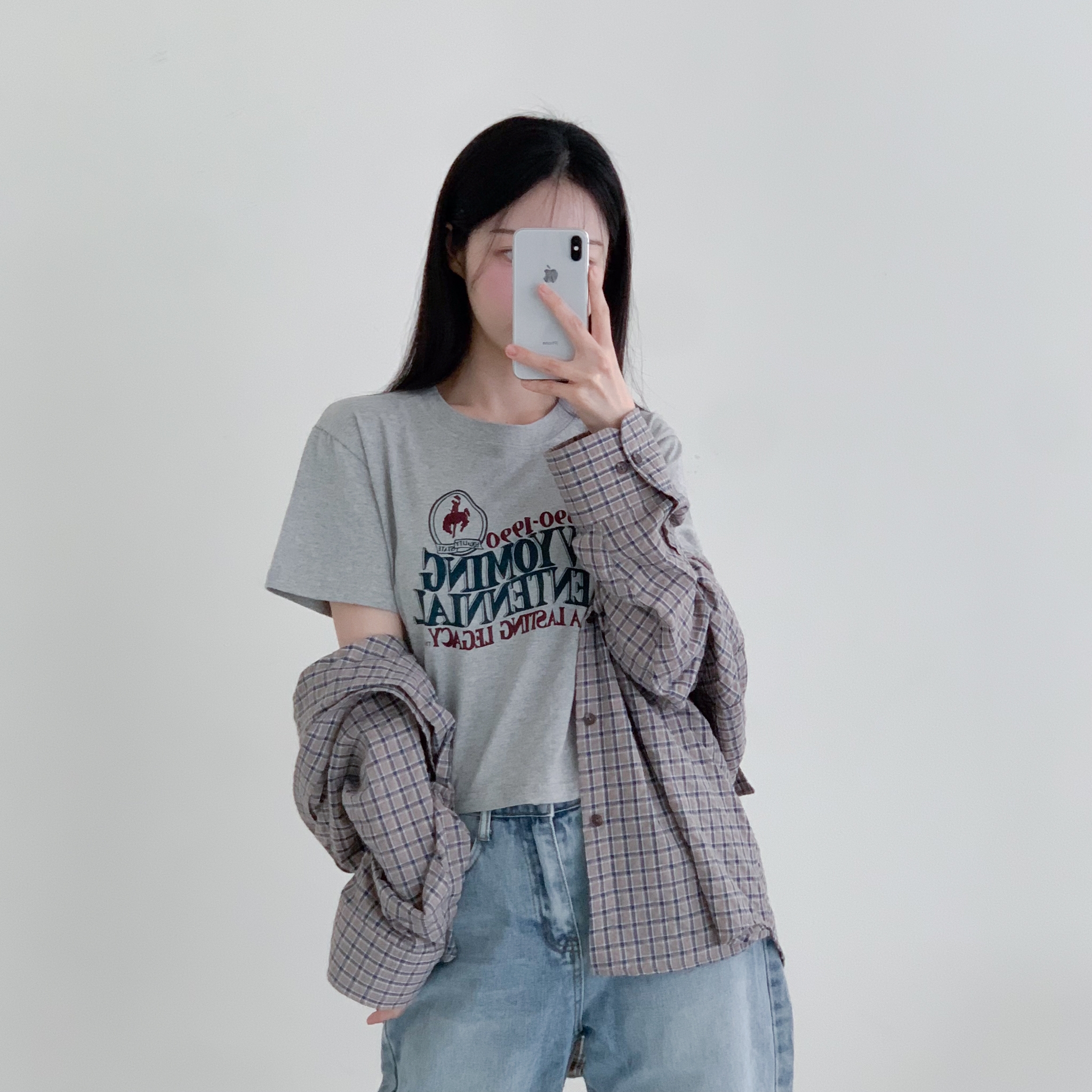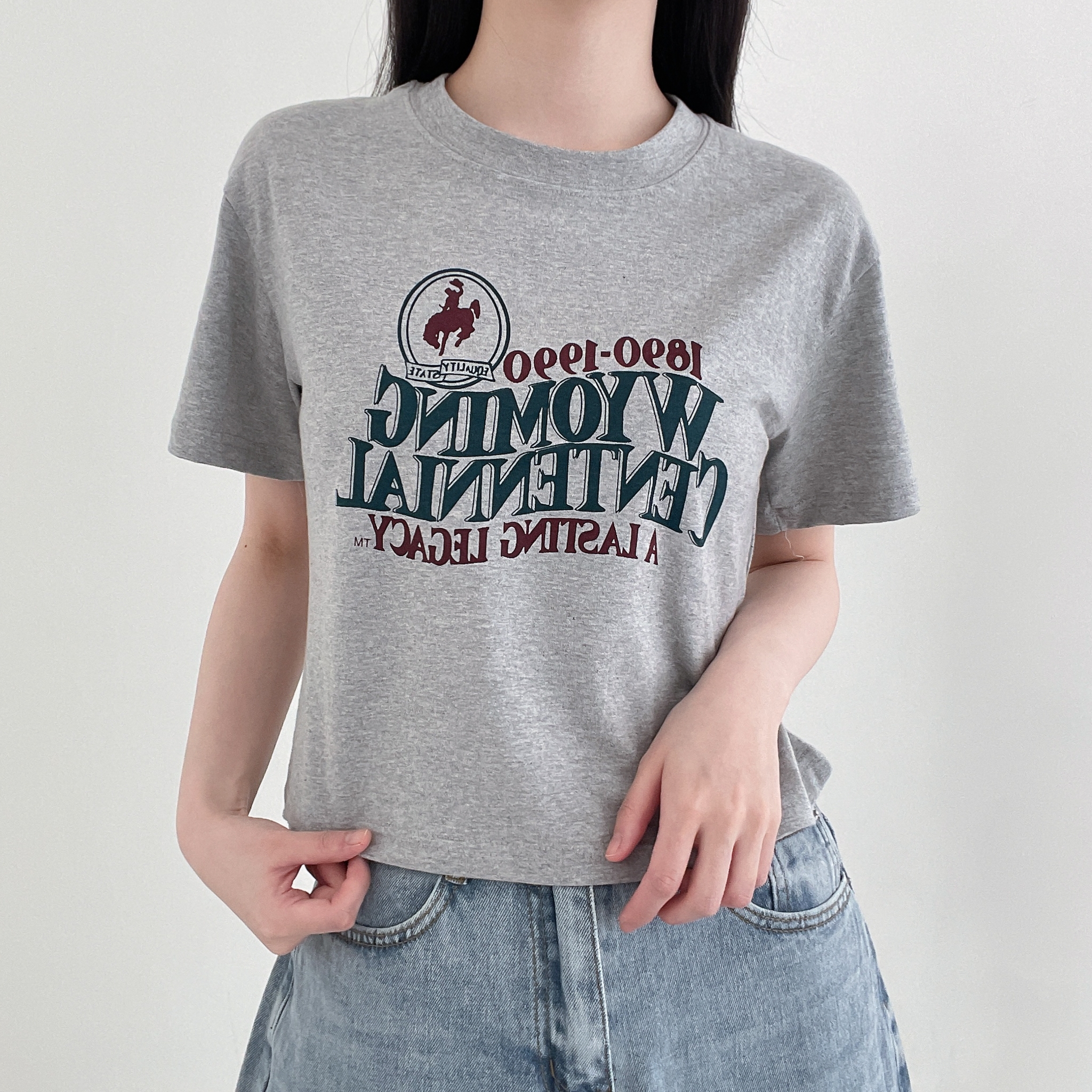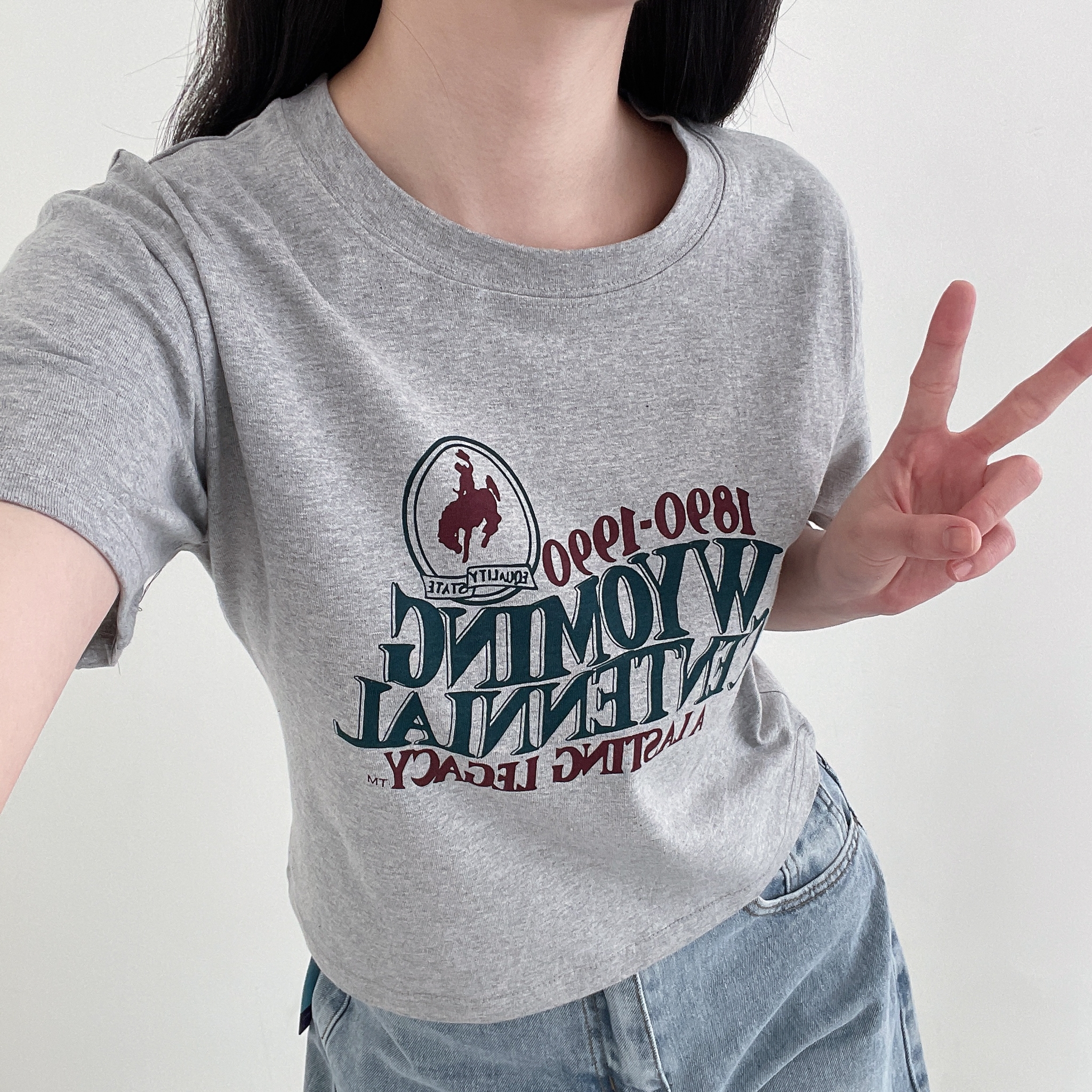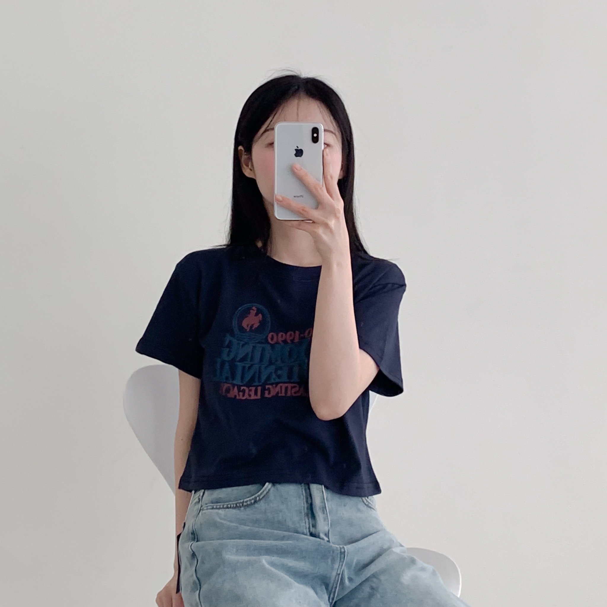 ラスティングレタリングクロップド半袖Tシャツ-4color