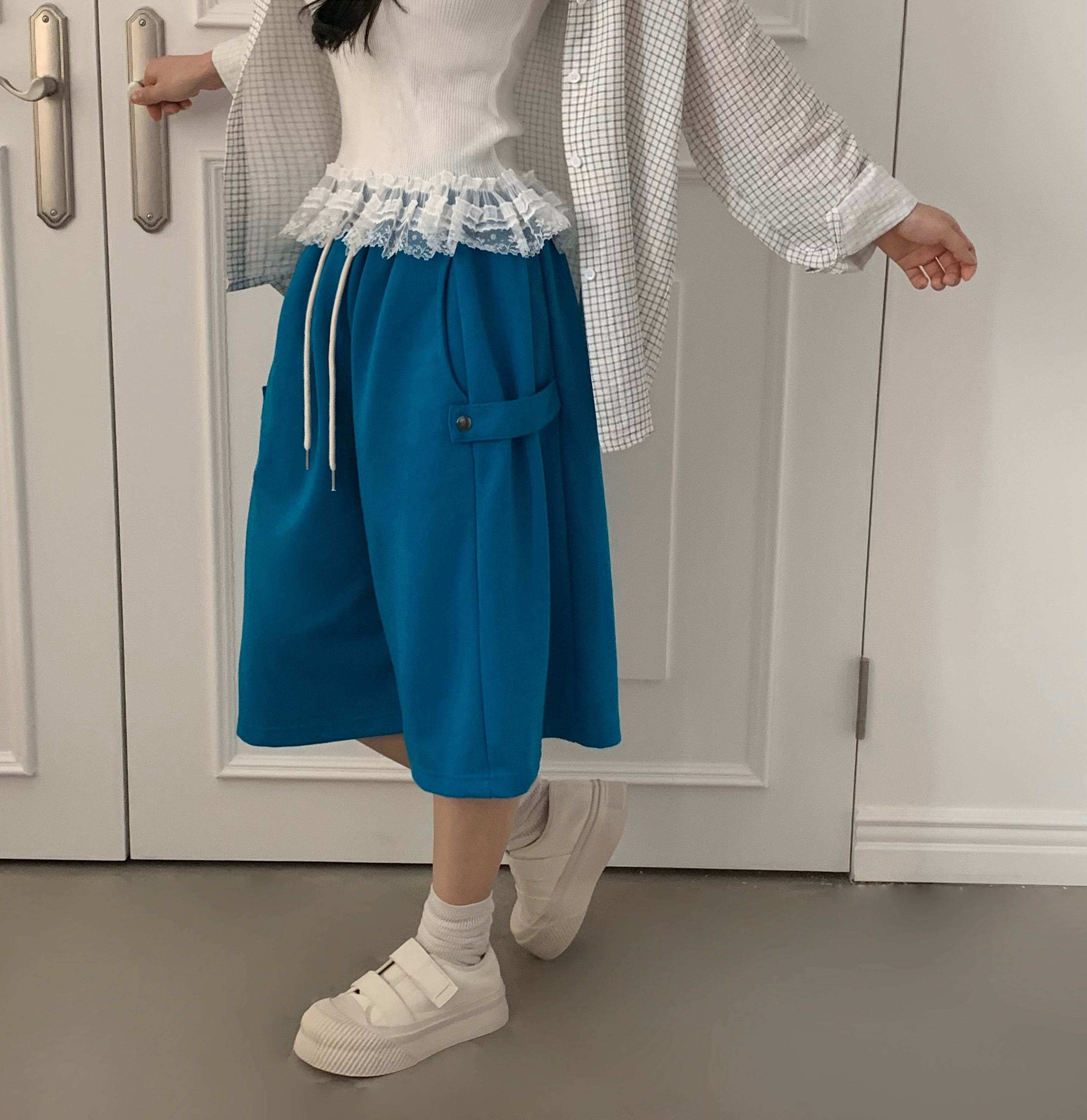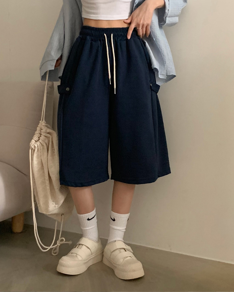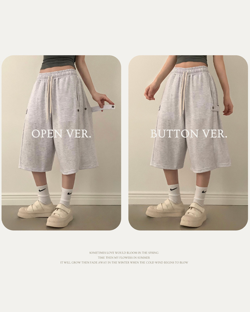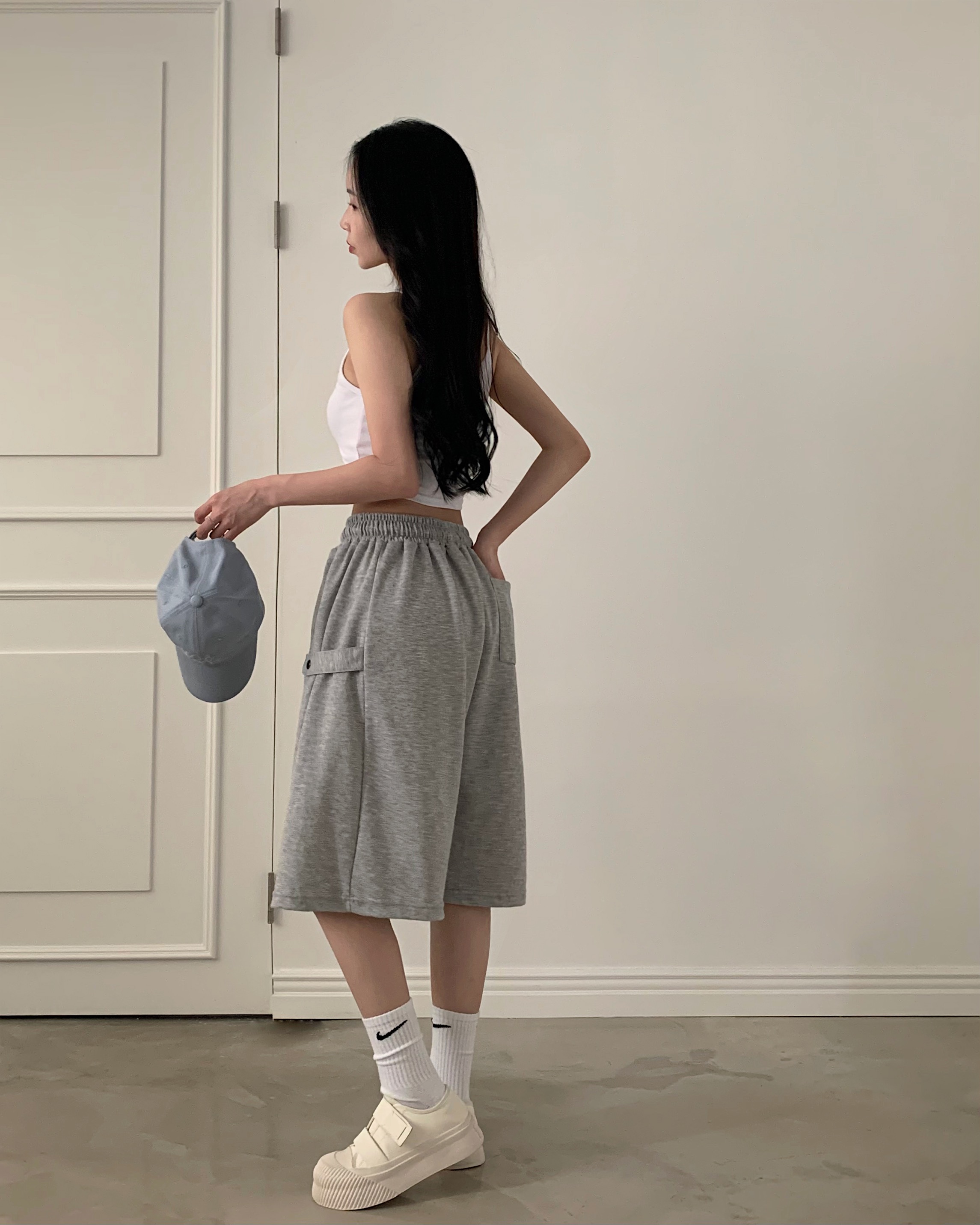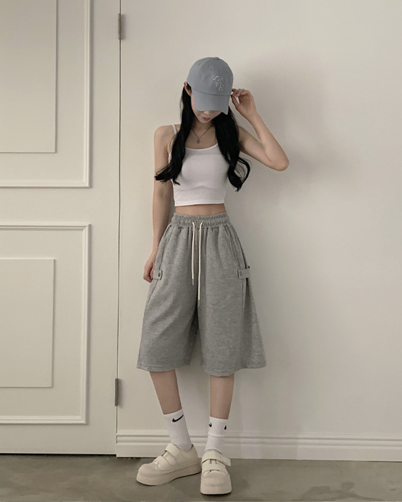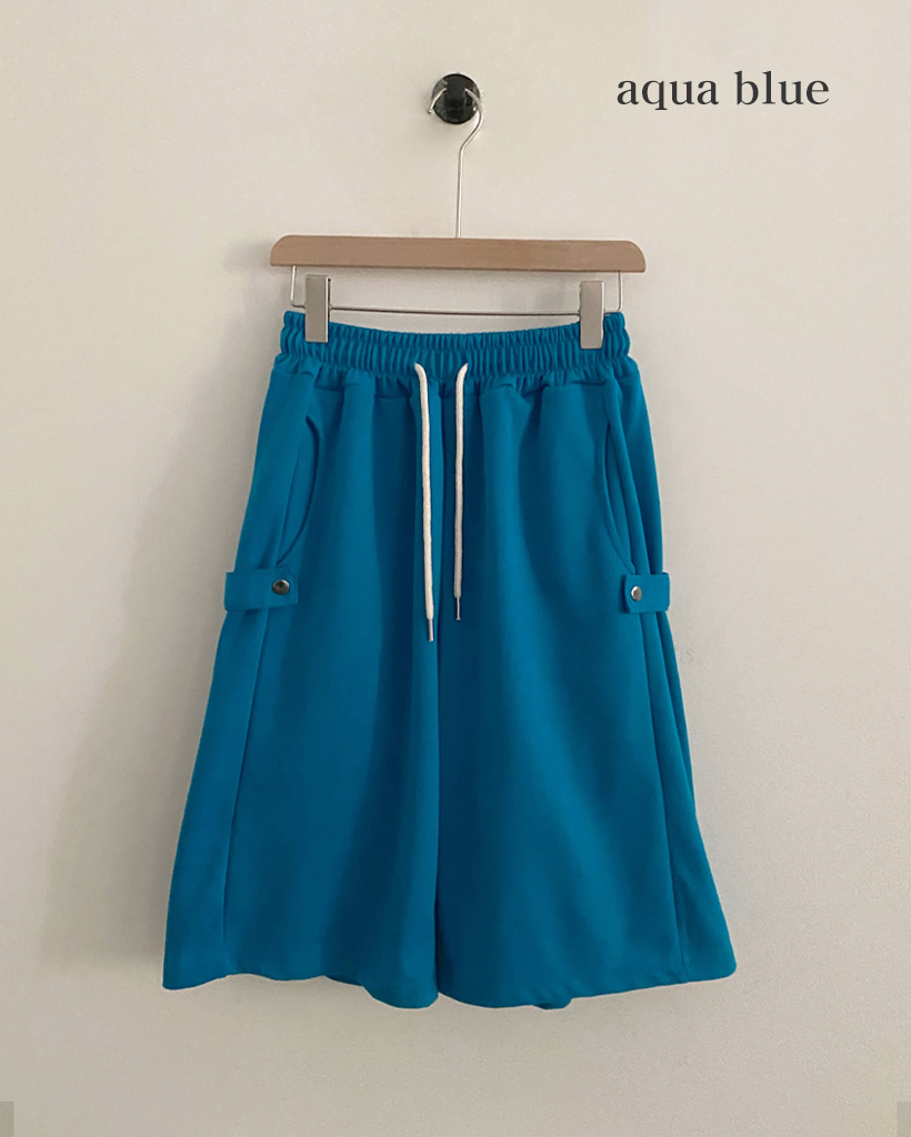 (11color)サイドバックルウエストゴムトレーニングハーフパンツ