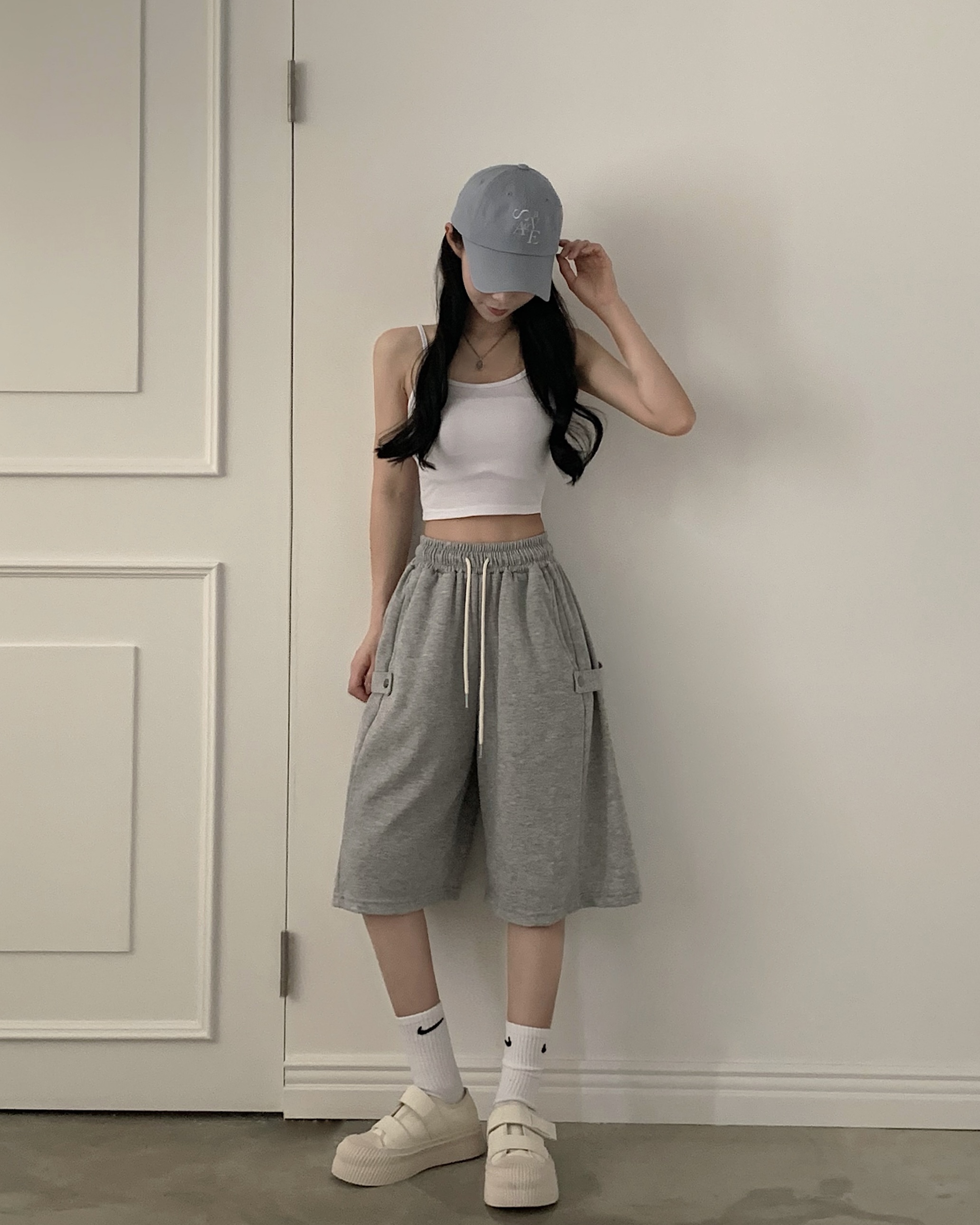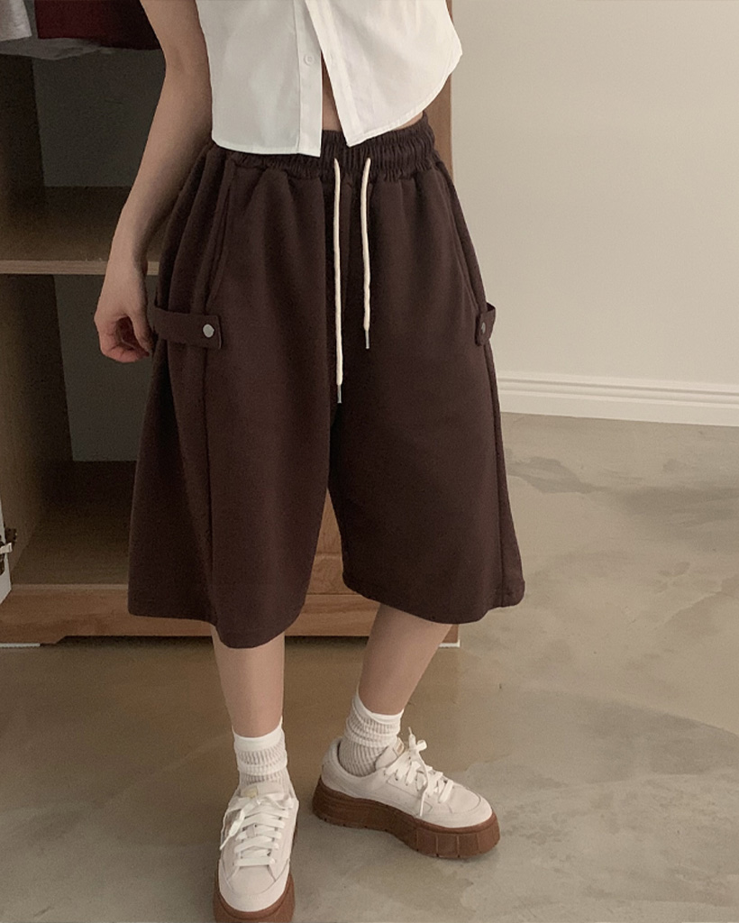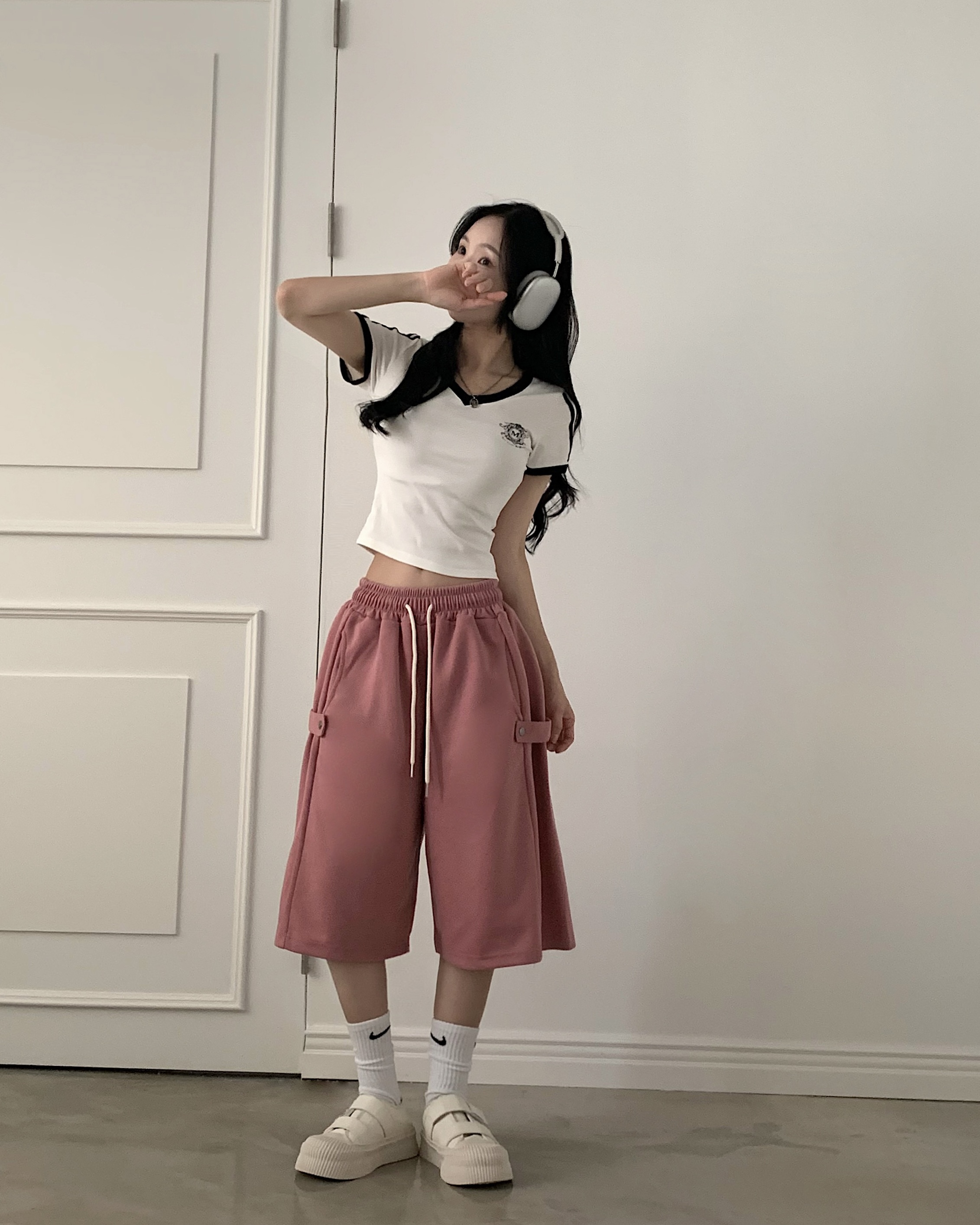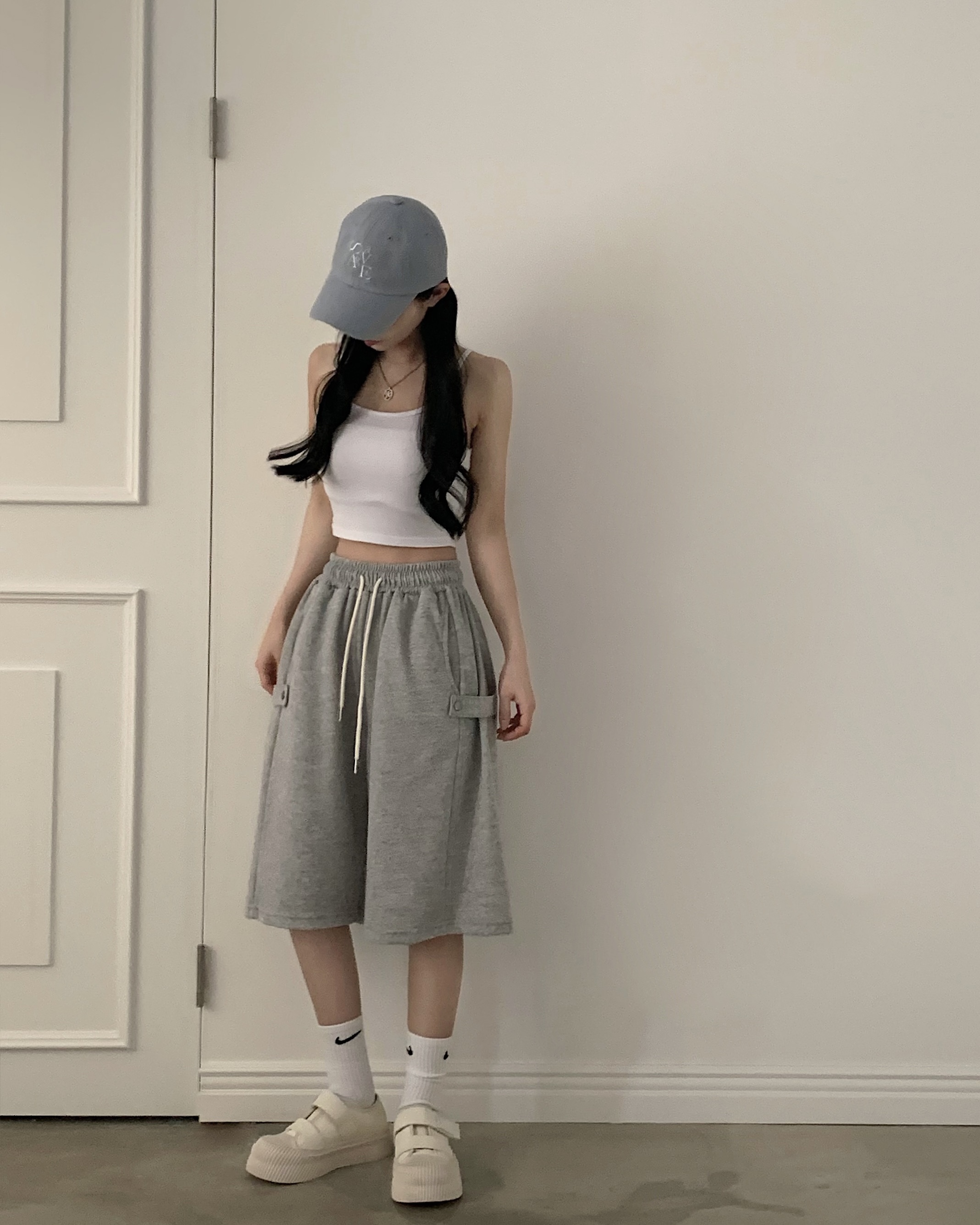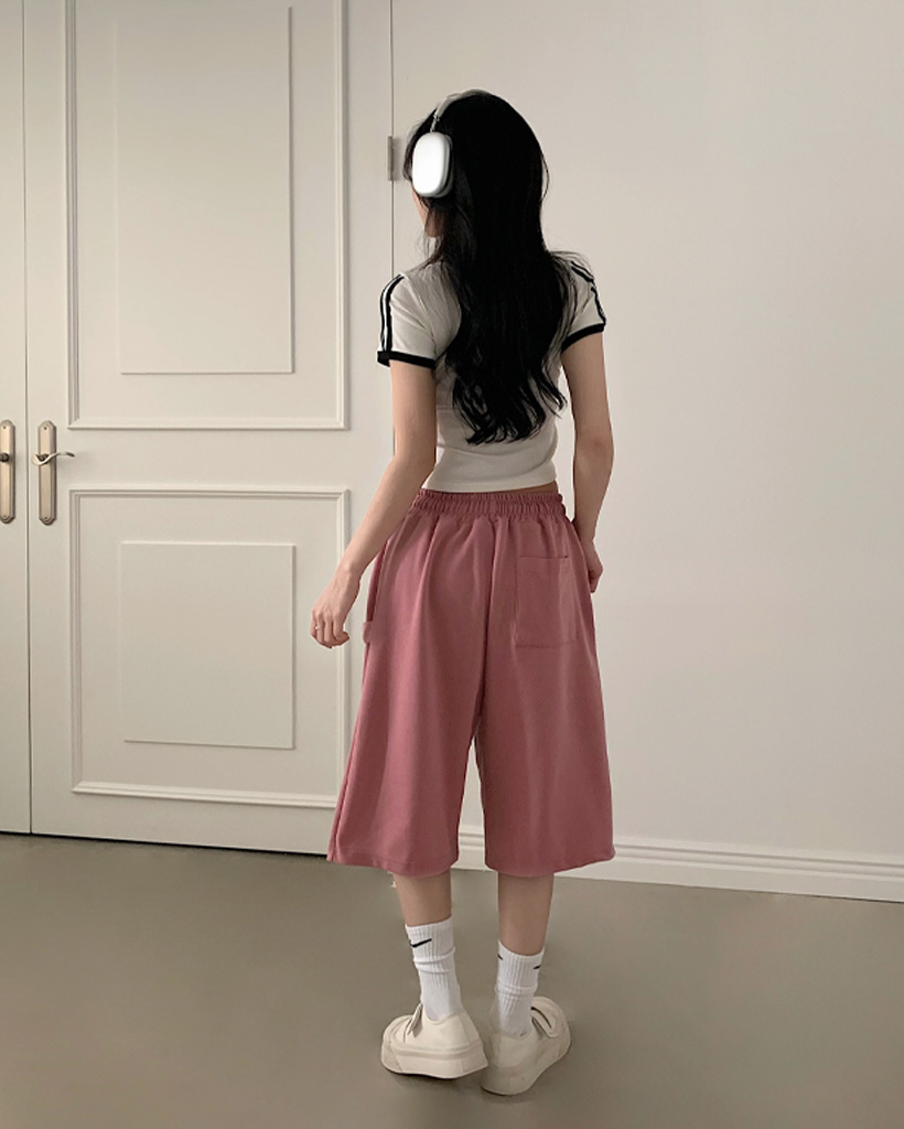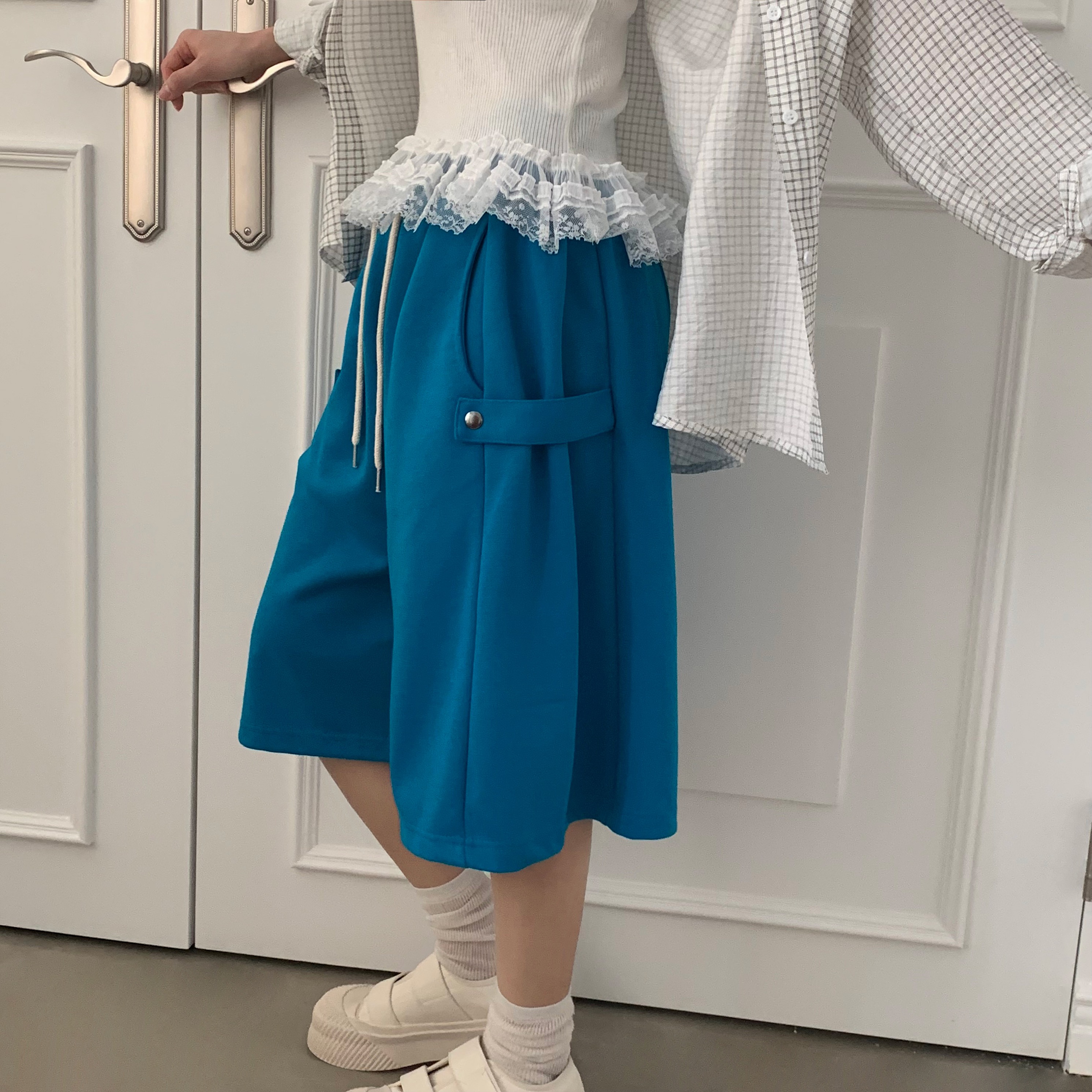 (11color)サイドバックルウエストゴムトレーニングハーフパンツ