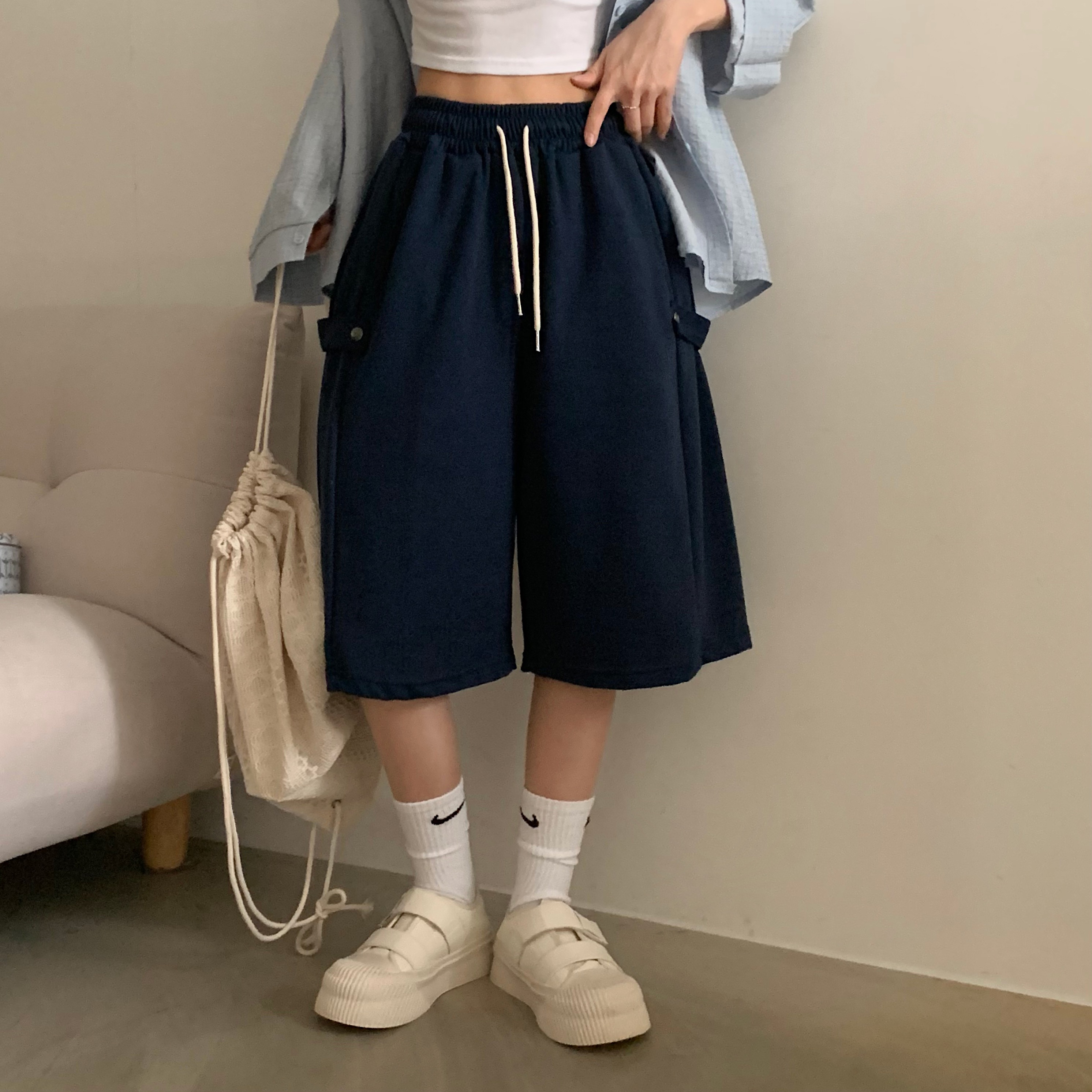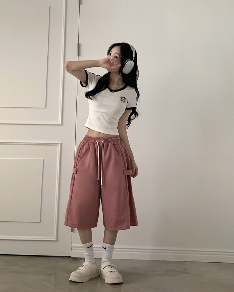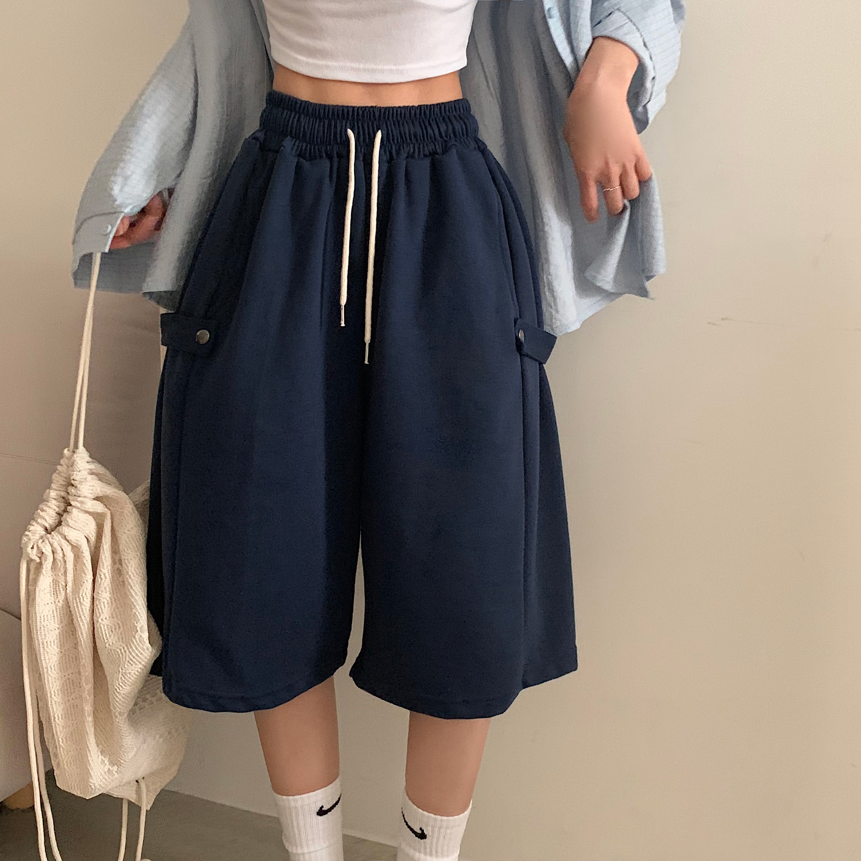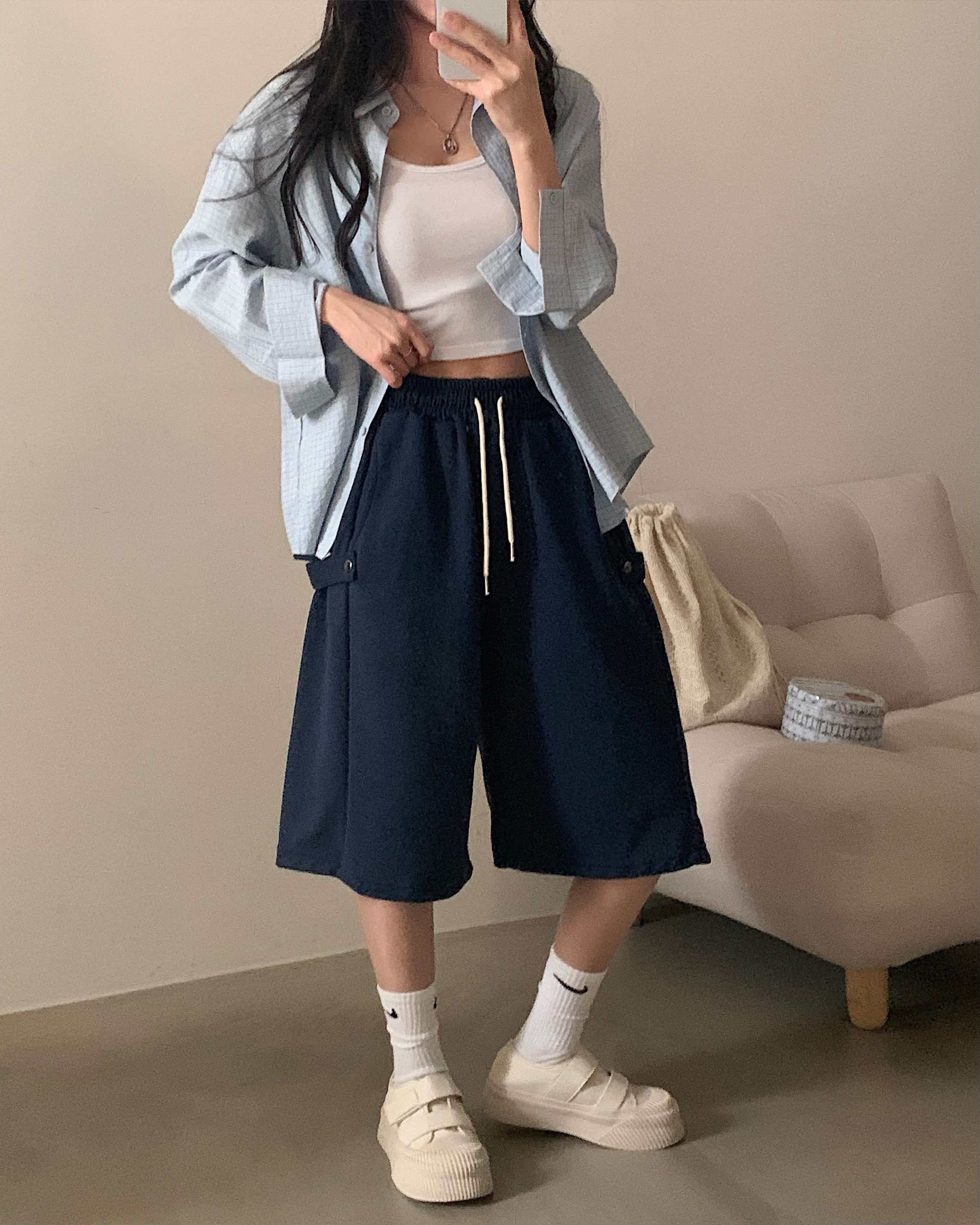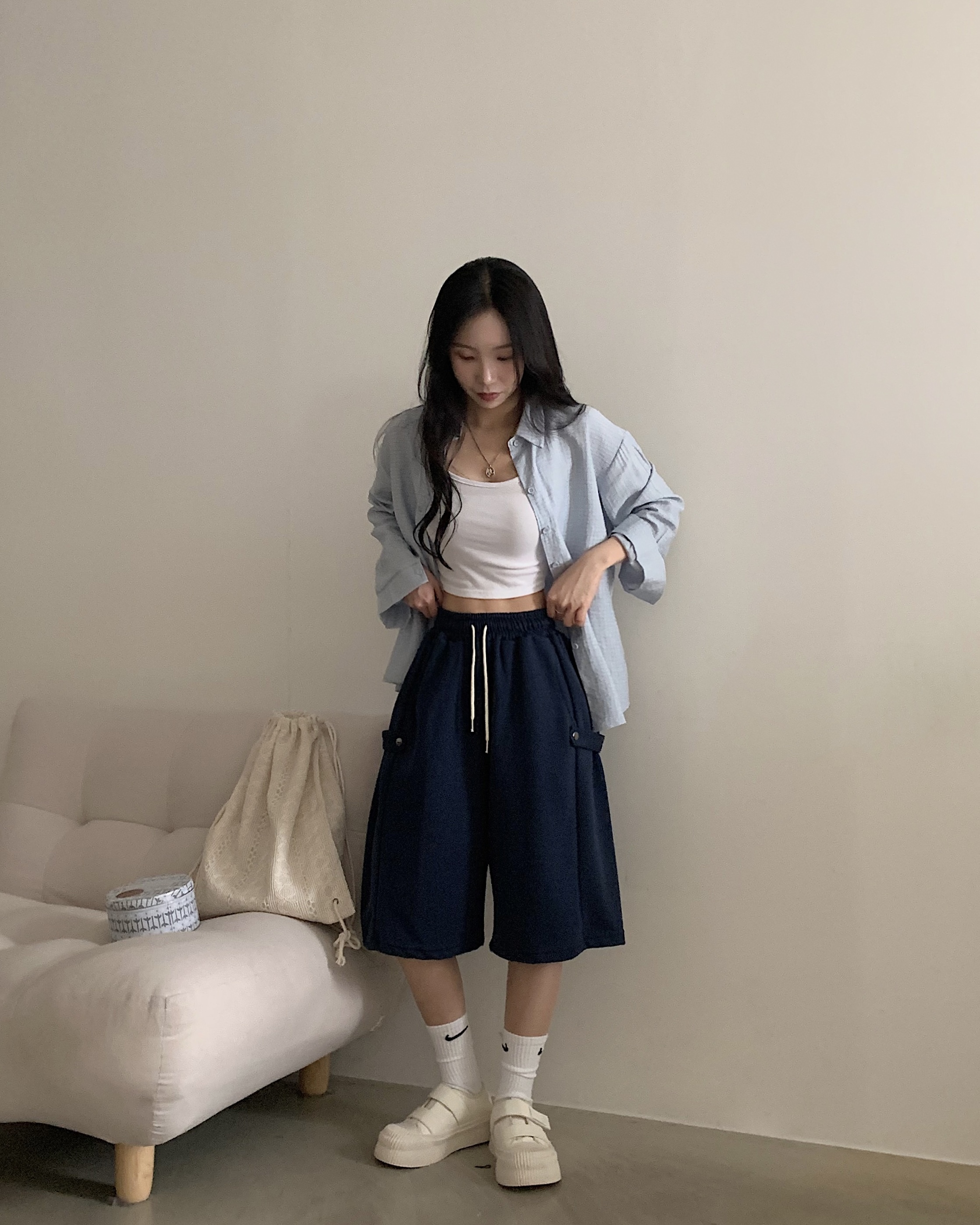 (11color)サイドバックルウエストゴムトレーニングハーフパンツ