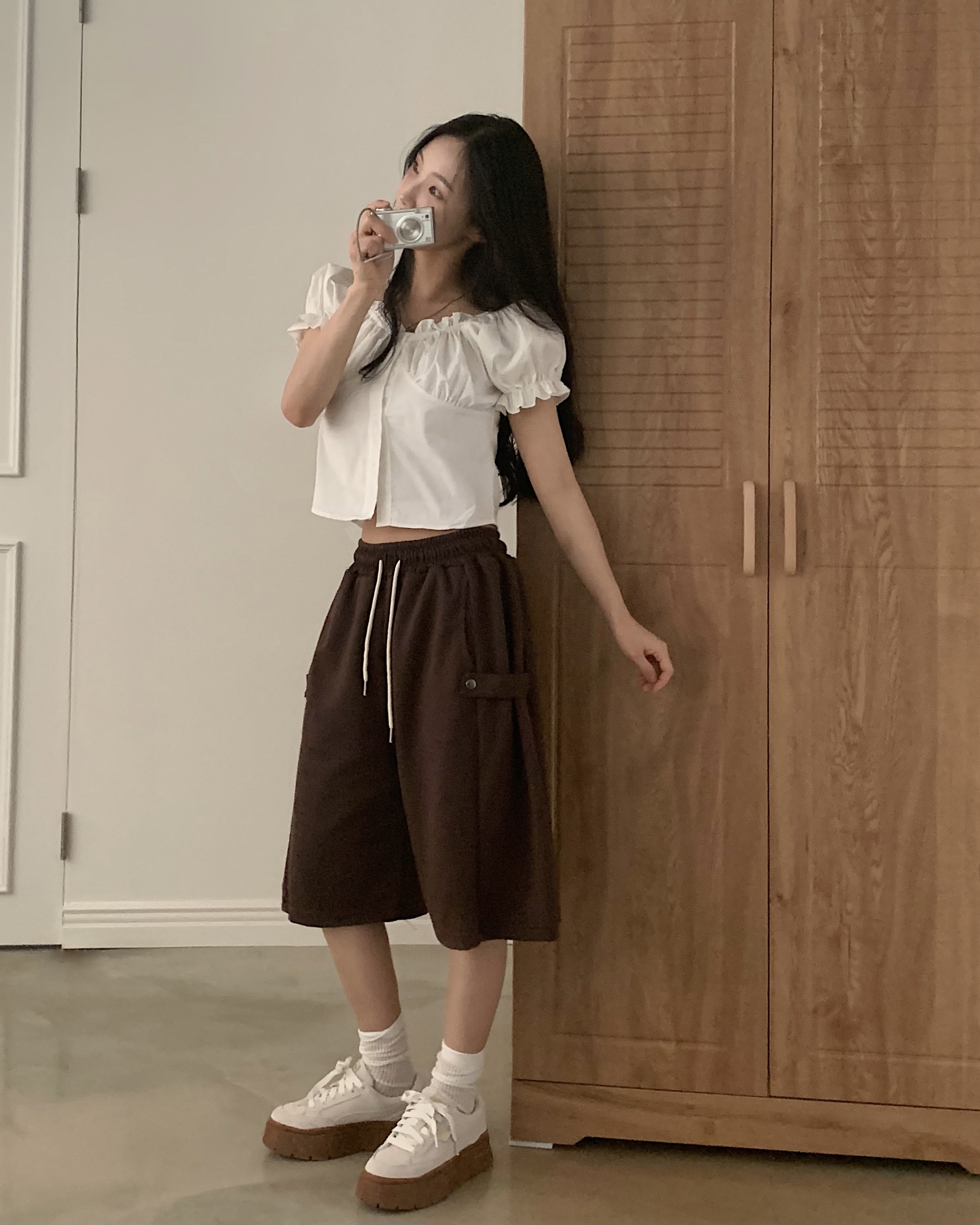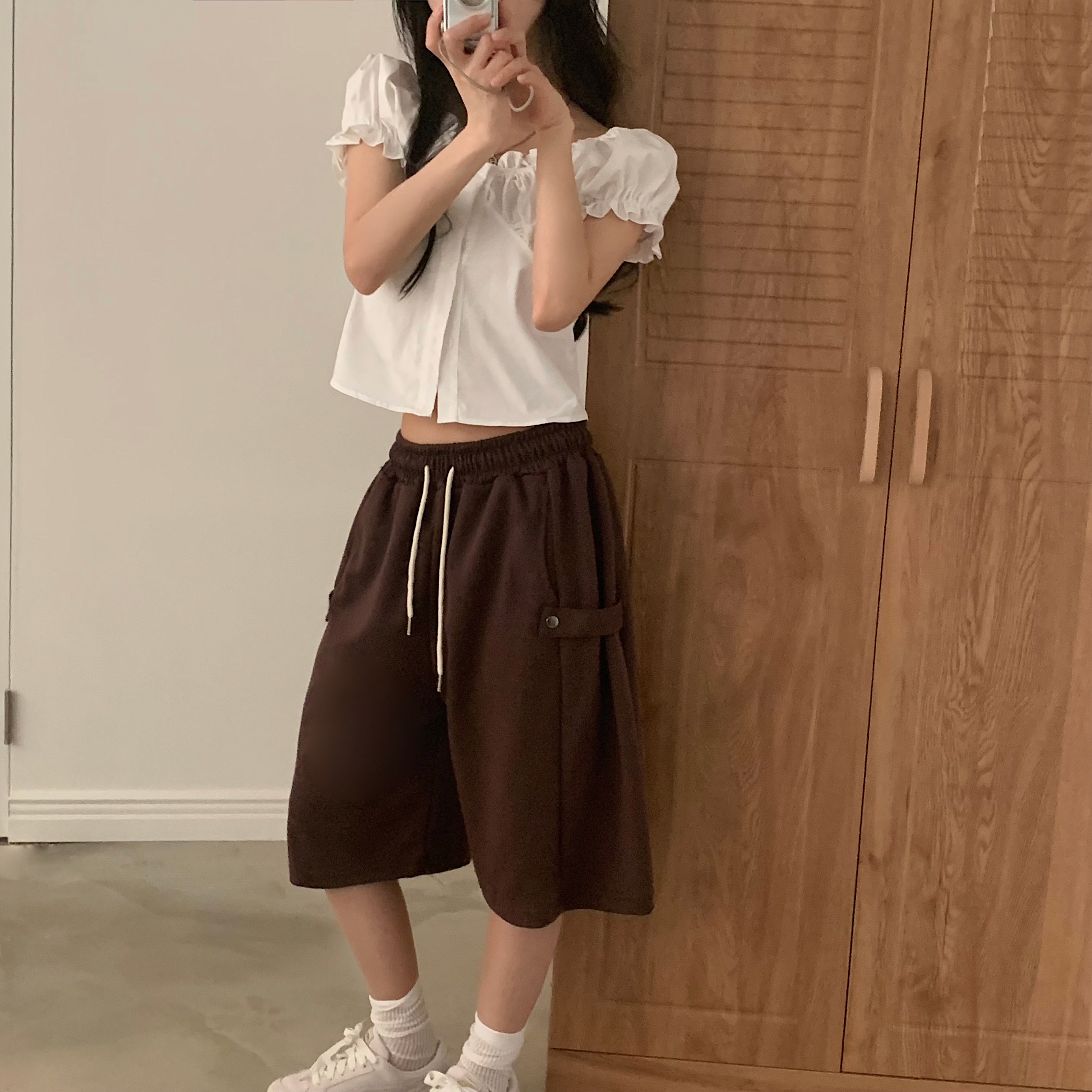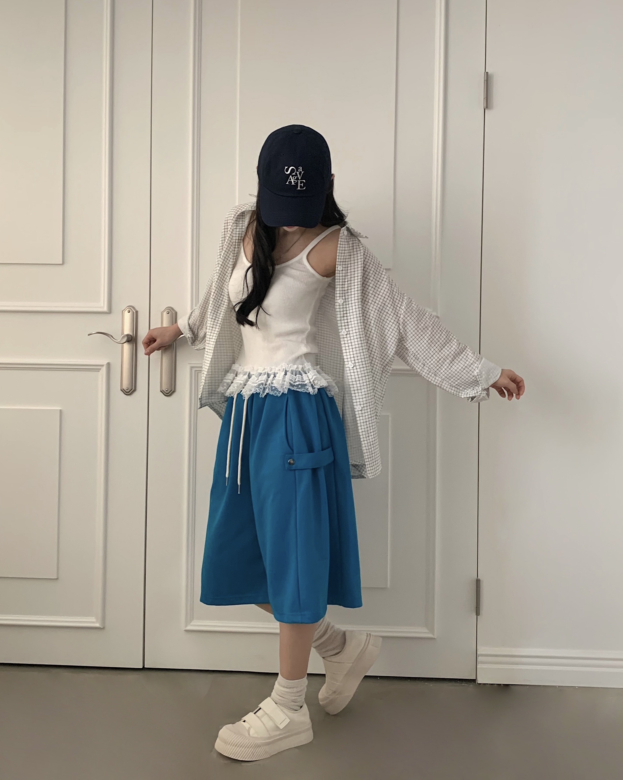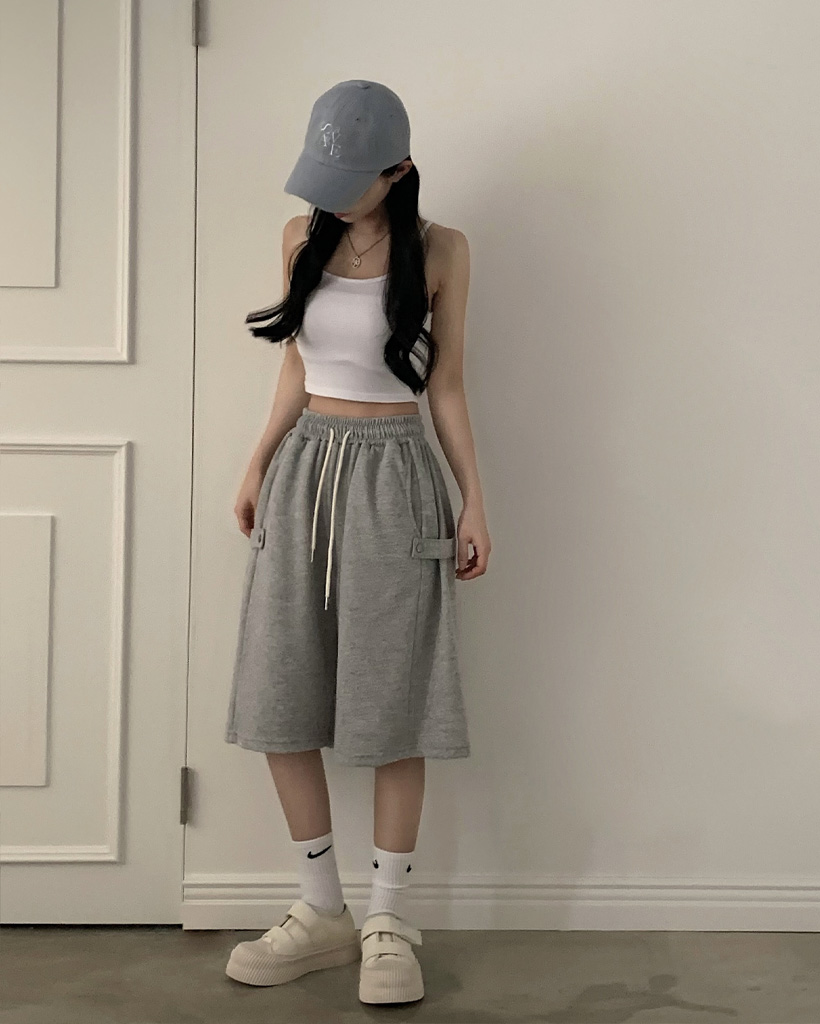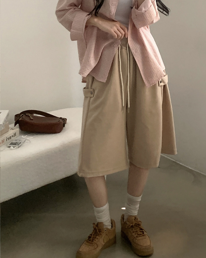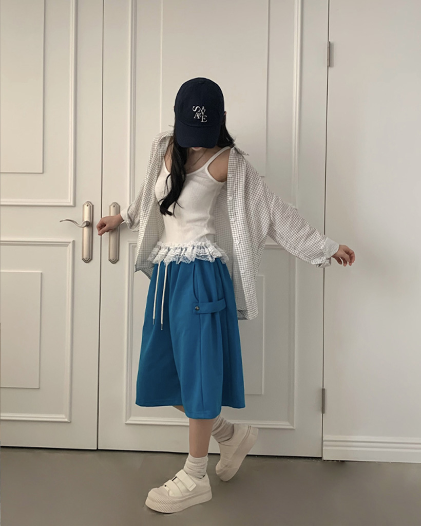 (11color)サイドバックルウエストゴムトレーニングハーフパンツ