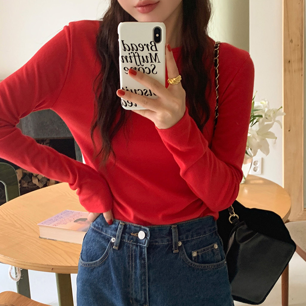 [original] Jennyスリムラウンドネック長袖Tシャツ