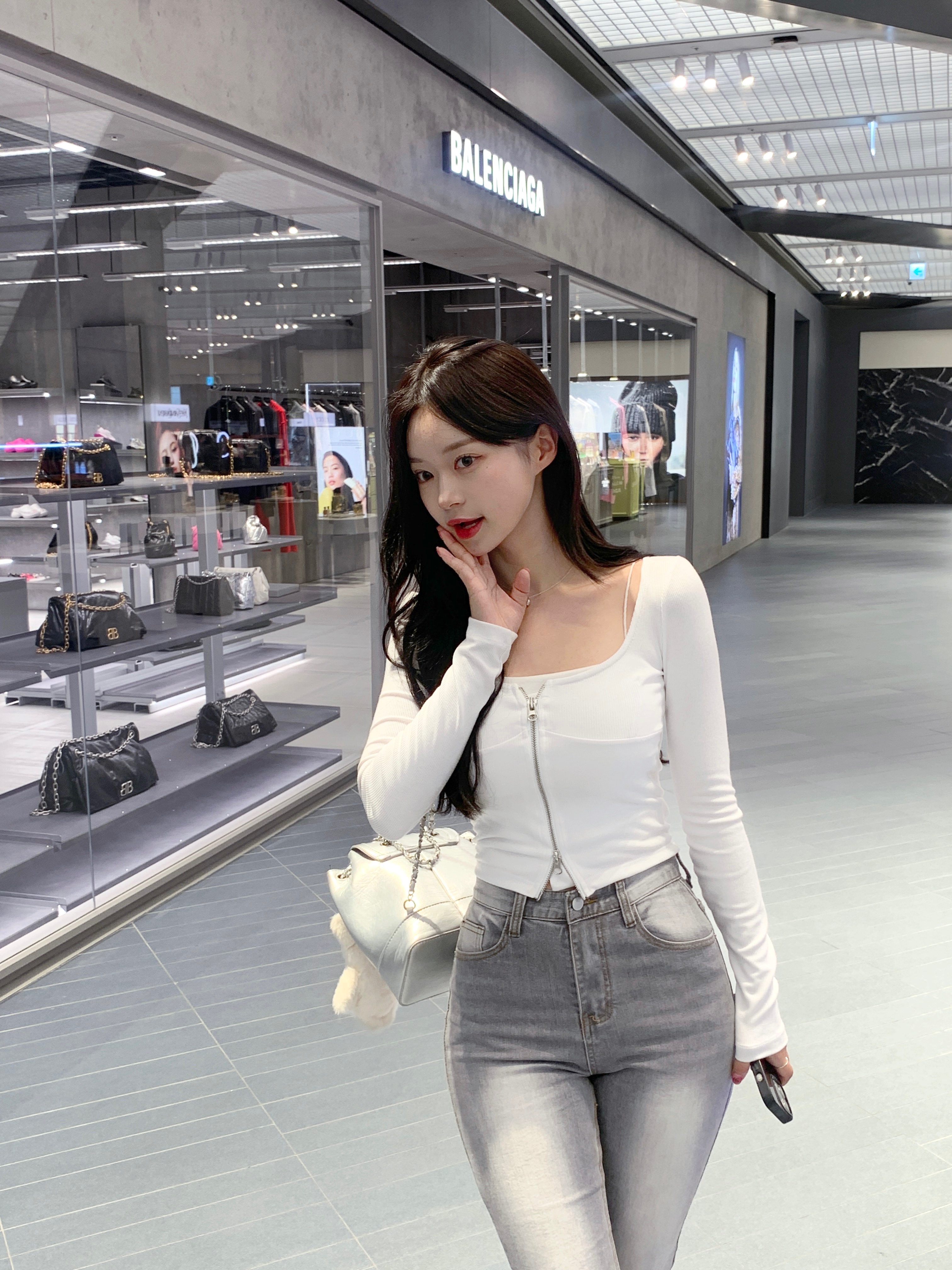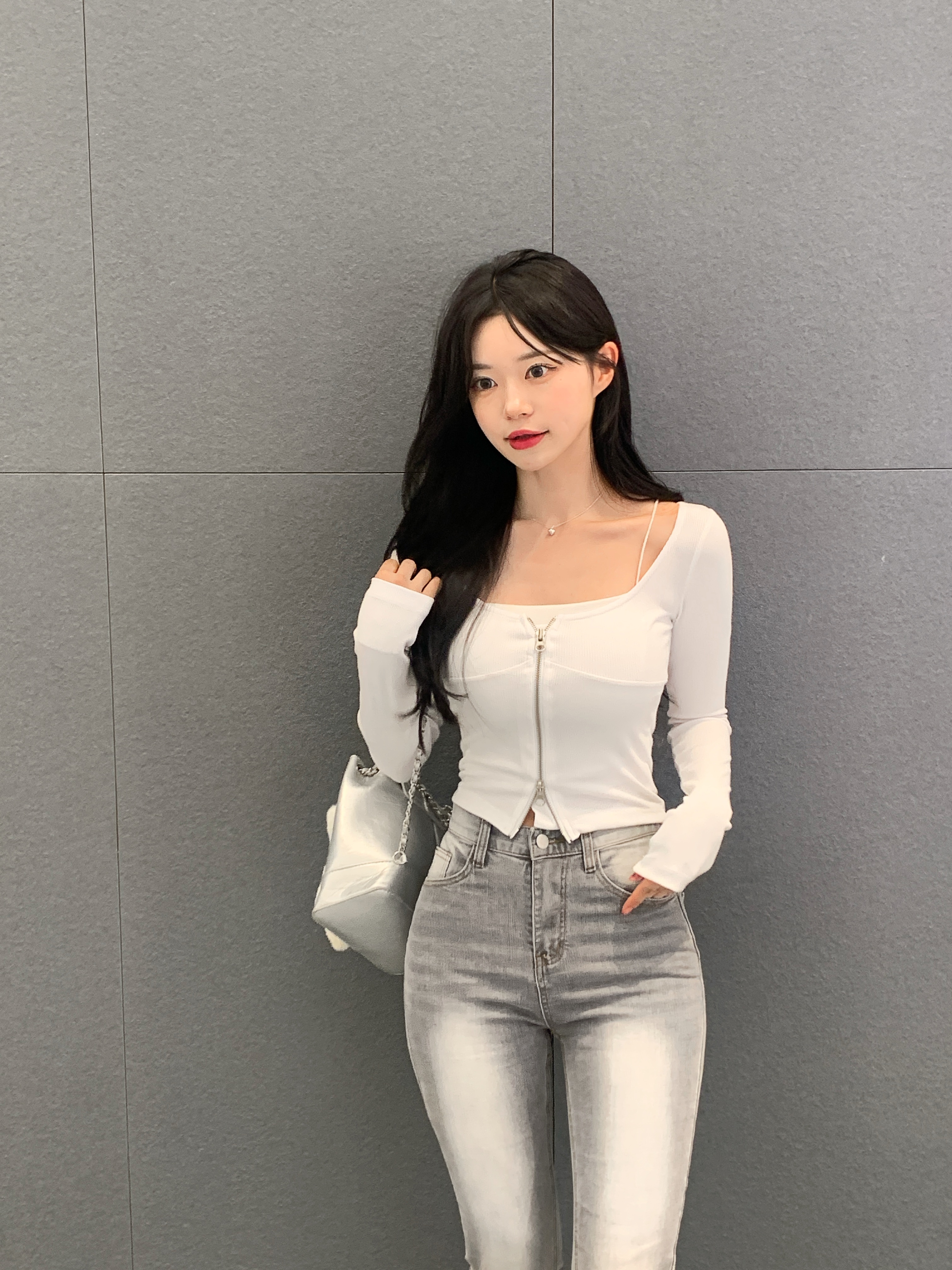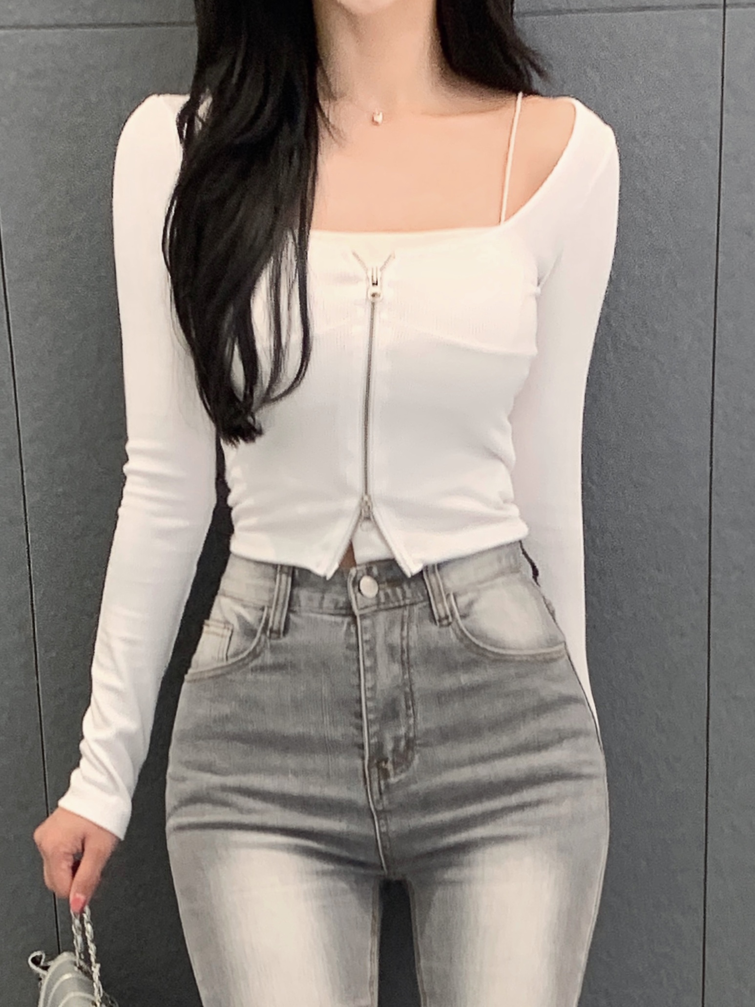 [자체제작, 스판 5%] 쉐입 슬림핏 크롭 셔츠 (화이트)