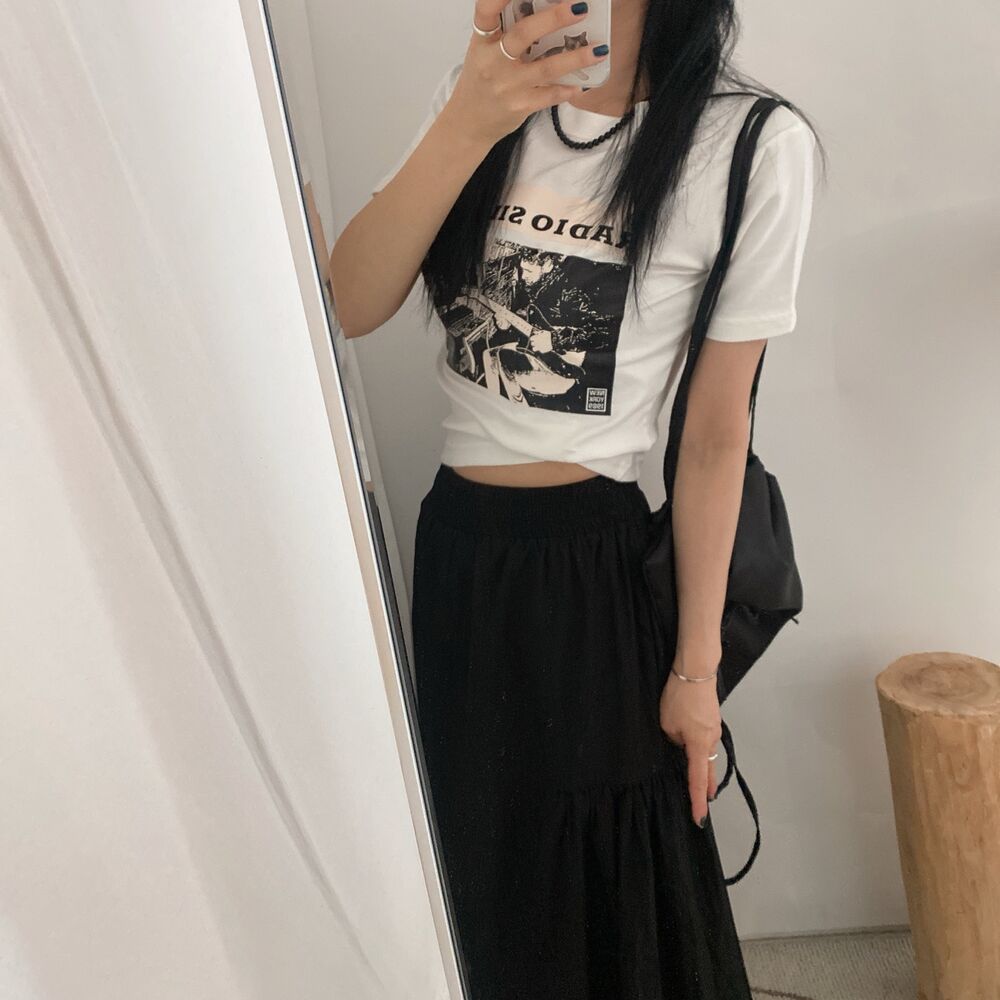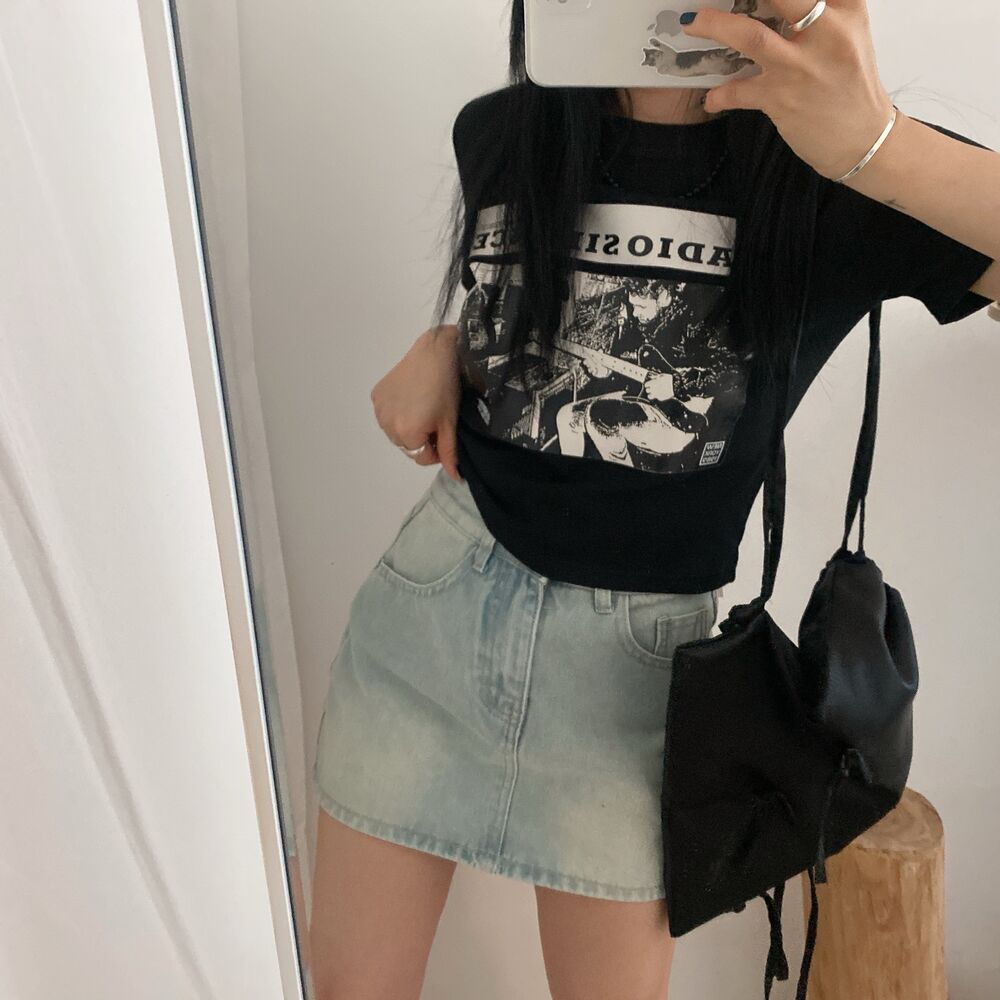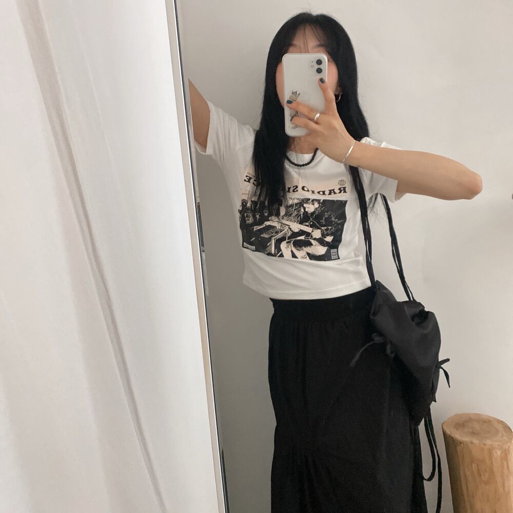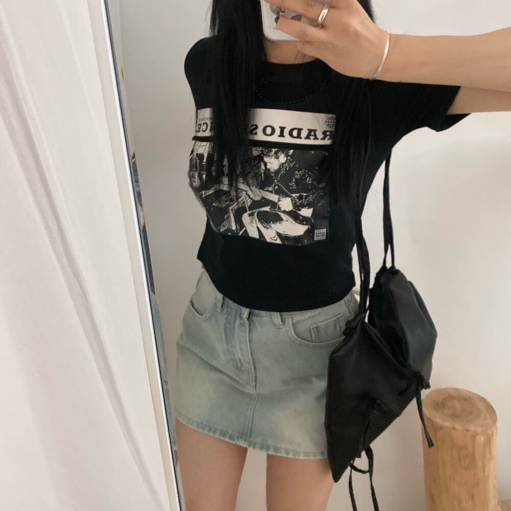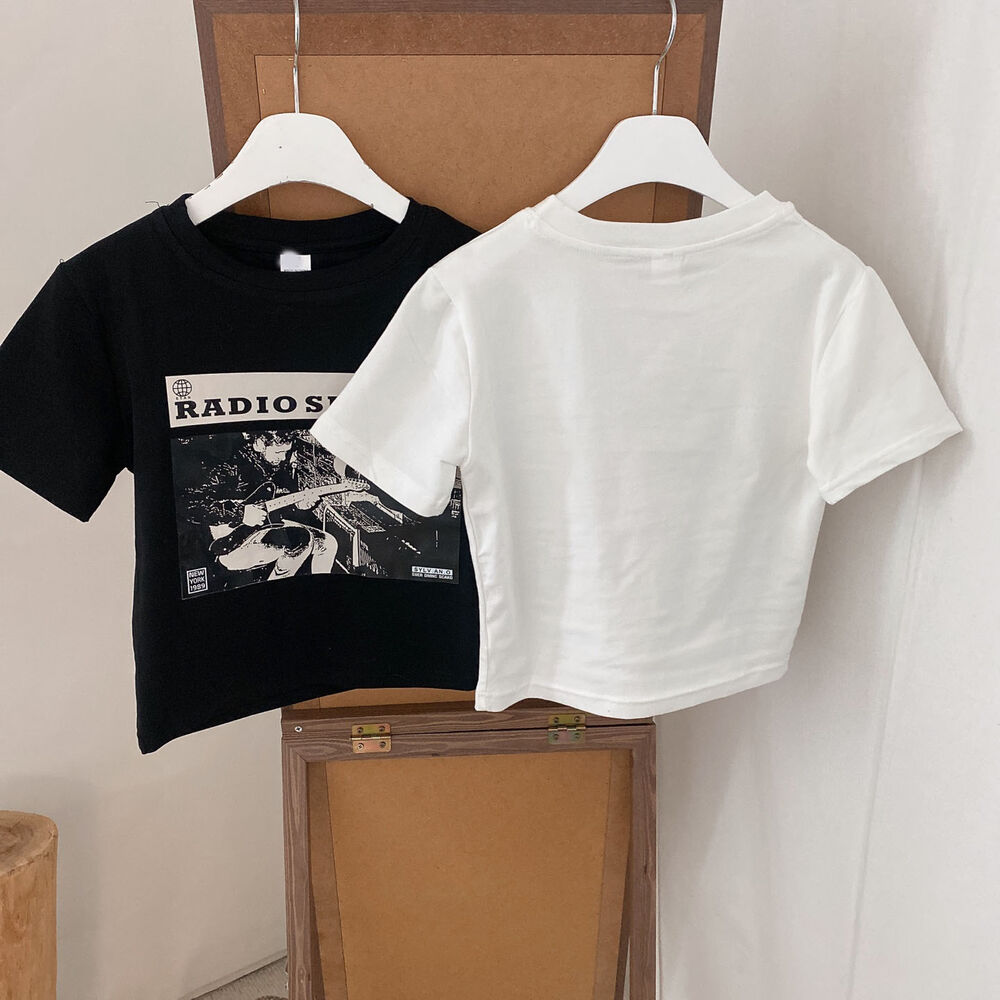 プリントクロップド半袖Tシャツ