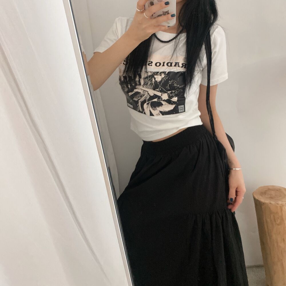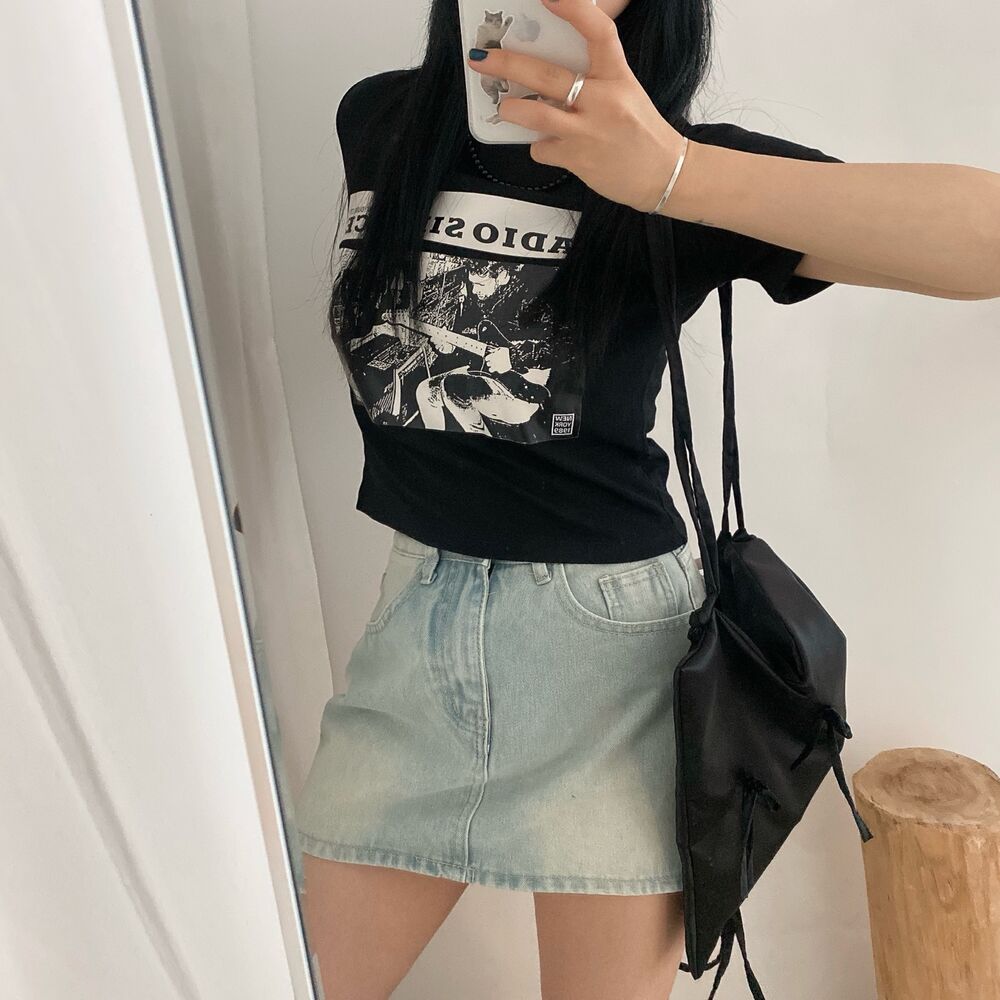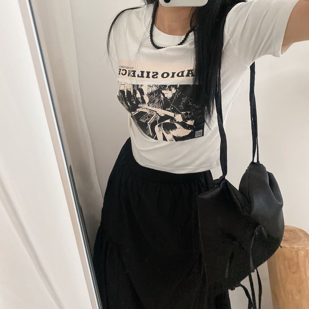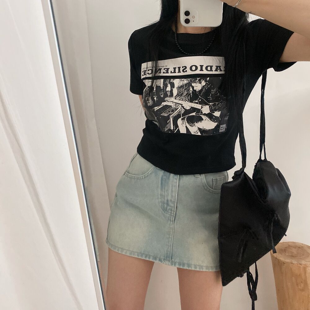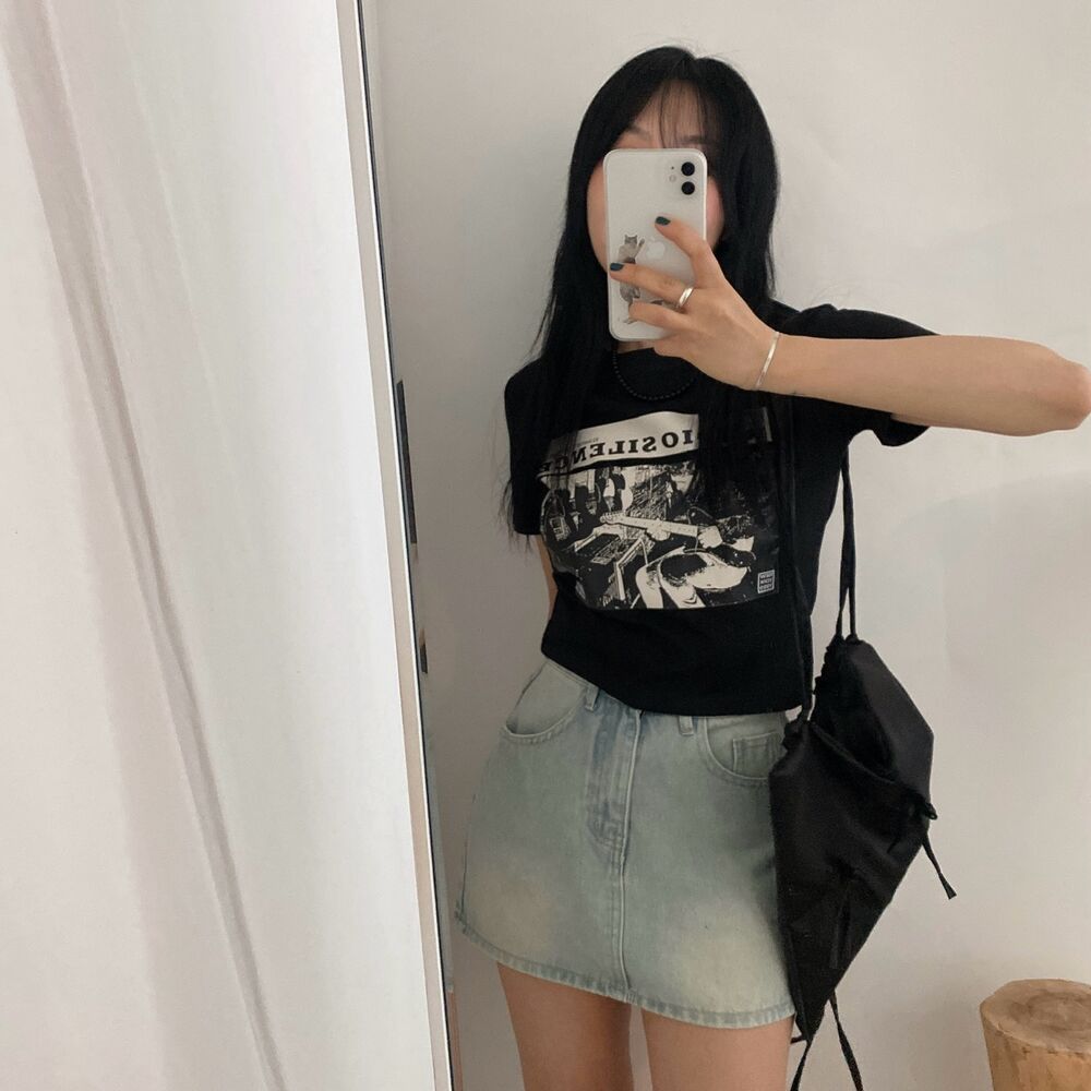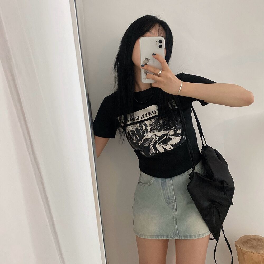 プリントクロップド半袖Tシャツ
