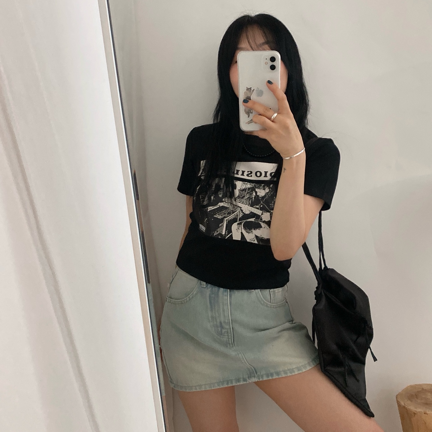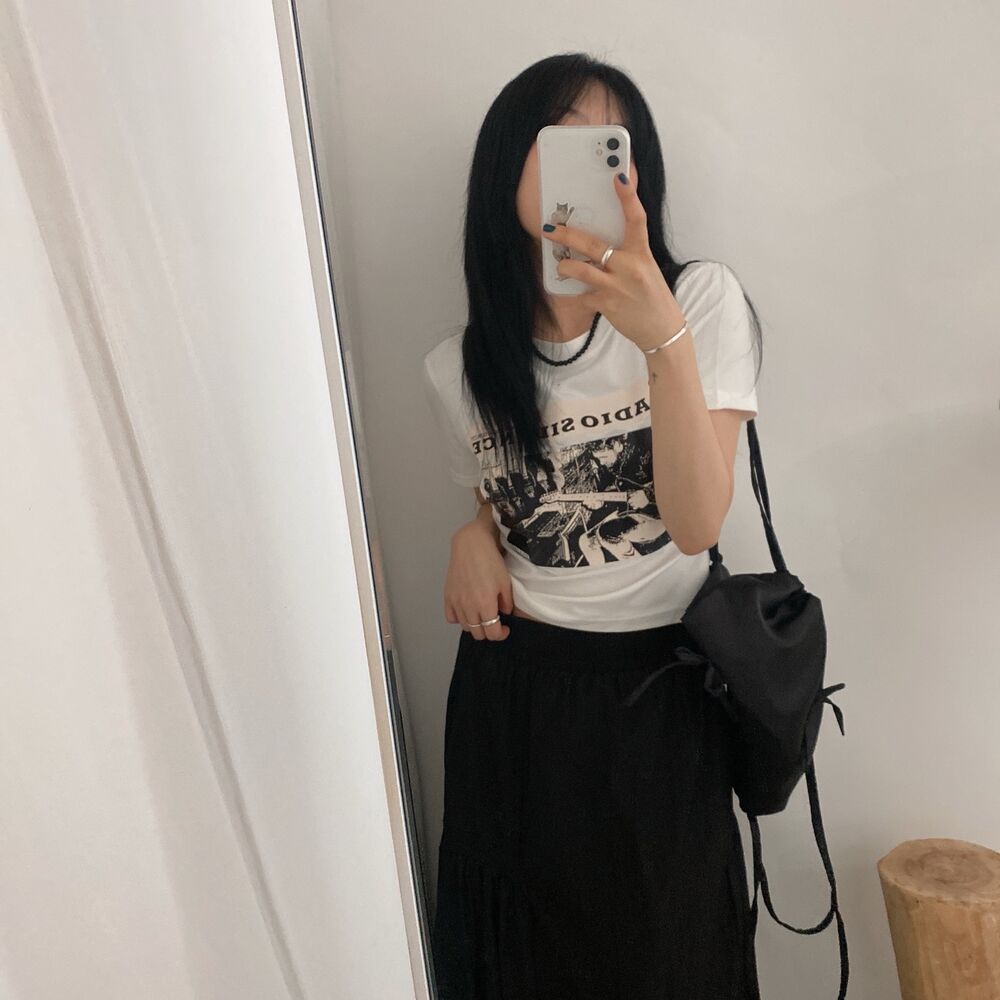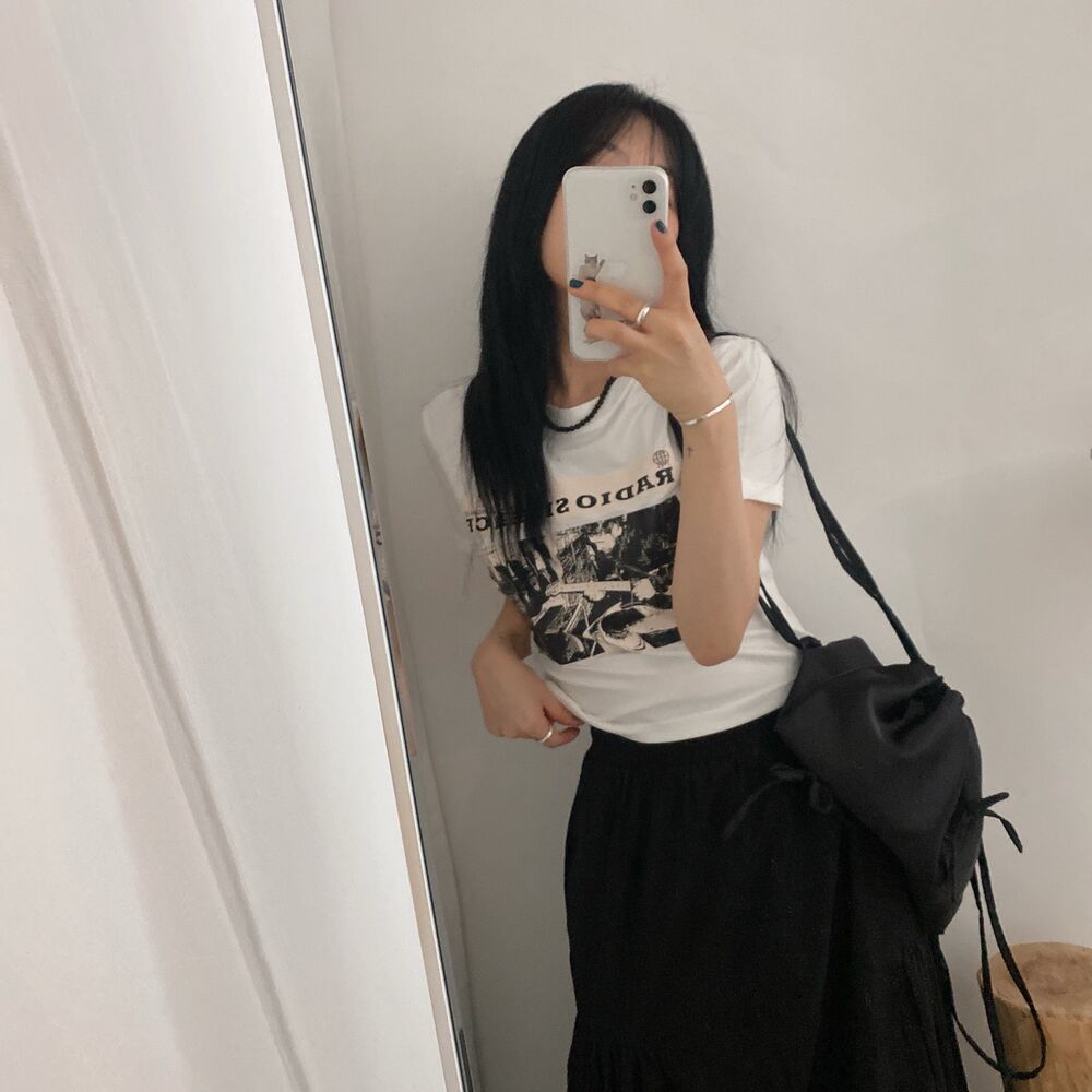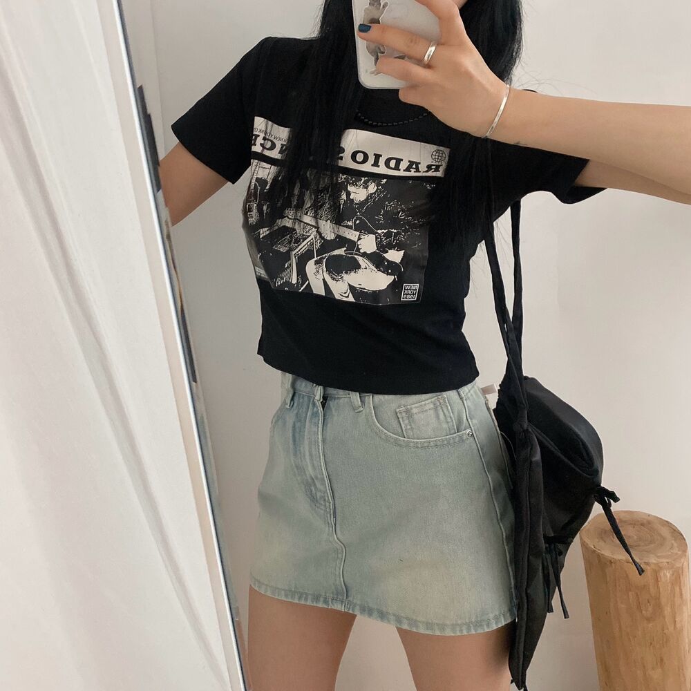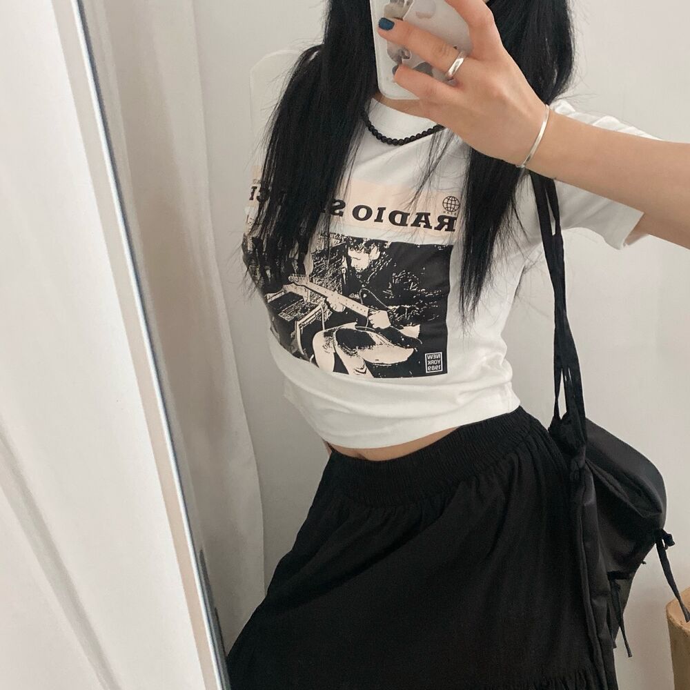 プリントクロップド半袖Tシャツ