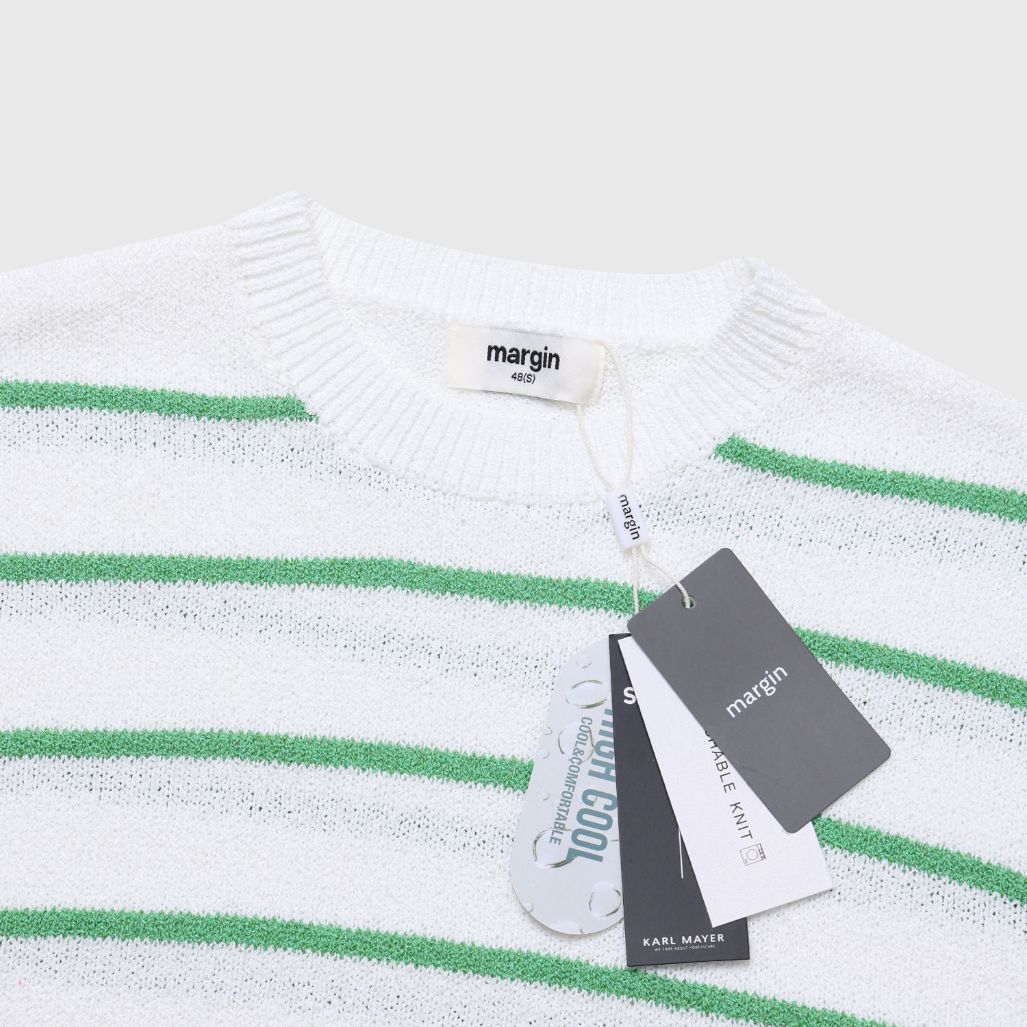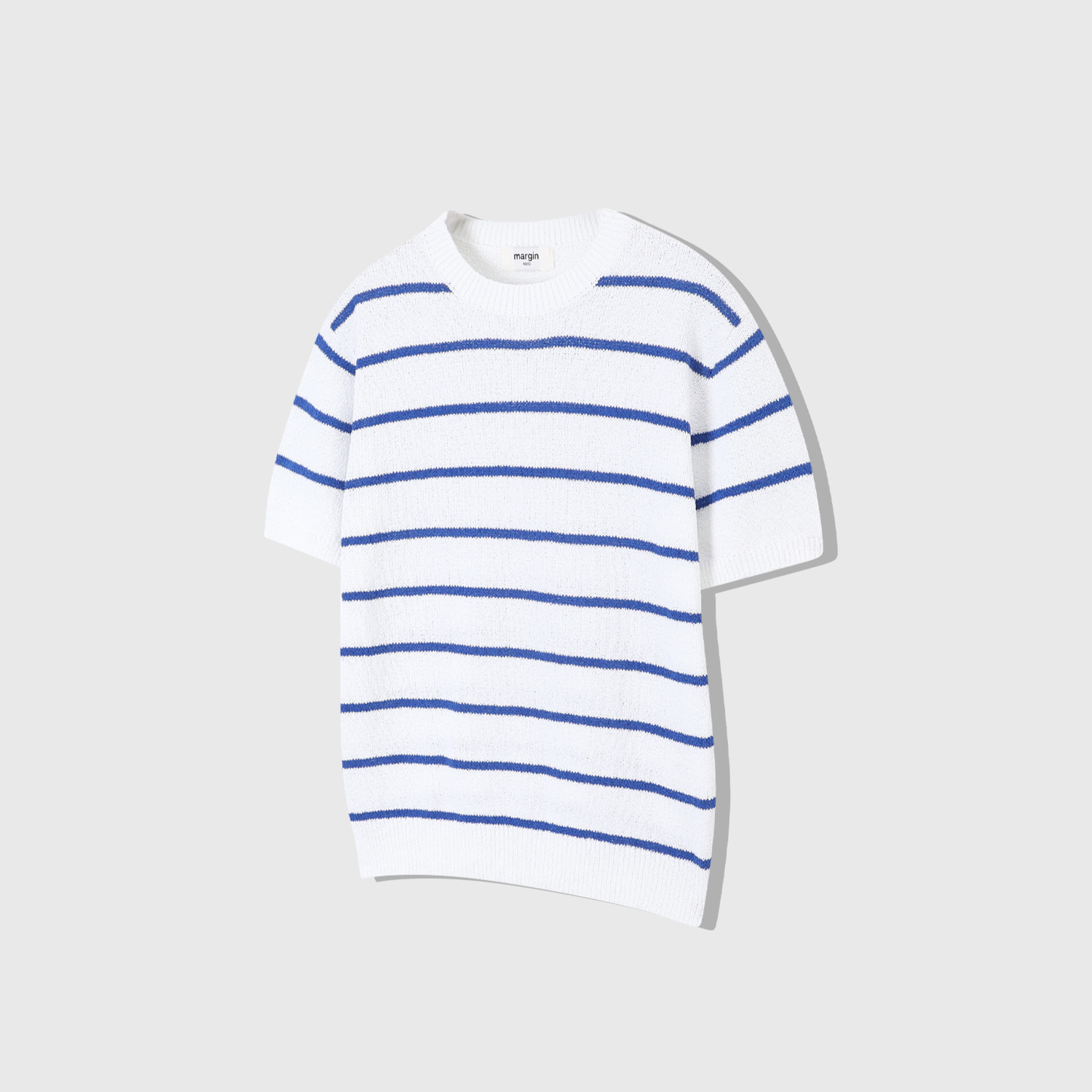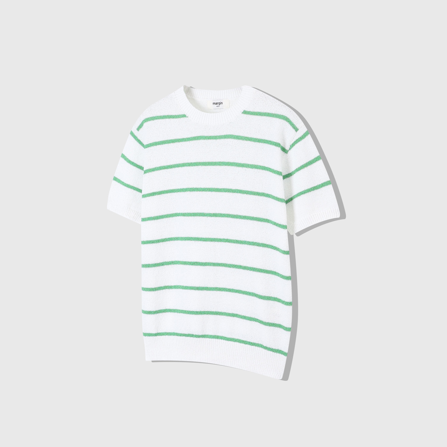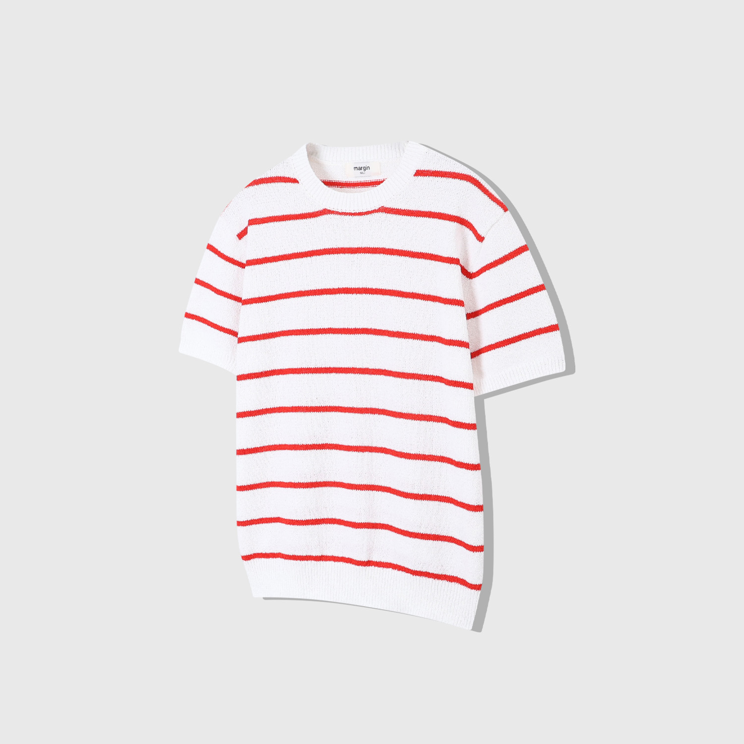 [unisex][ユニセックス] ストライプラウンド半袖ニット