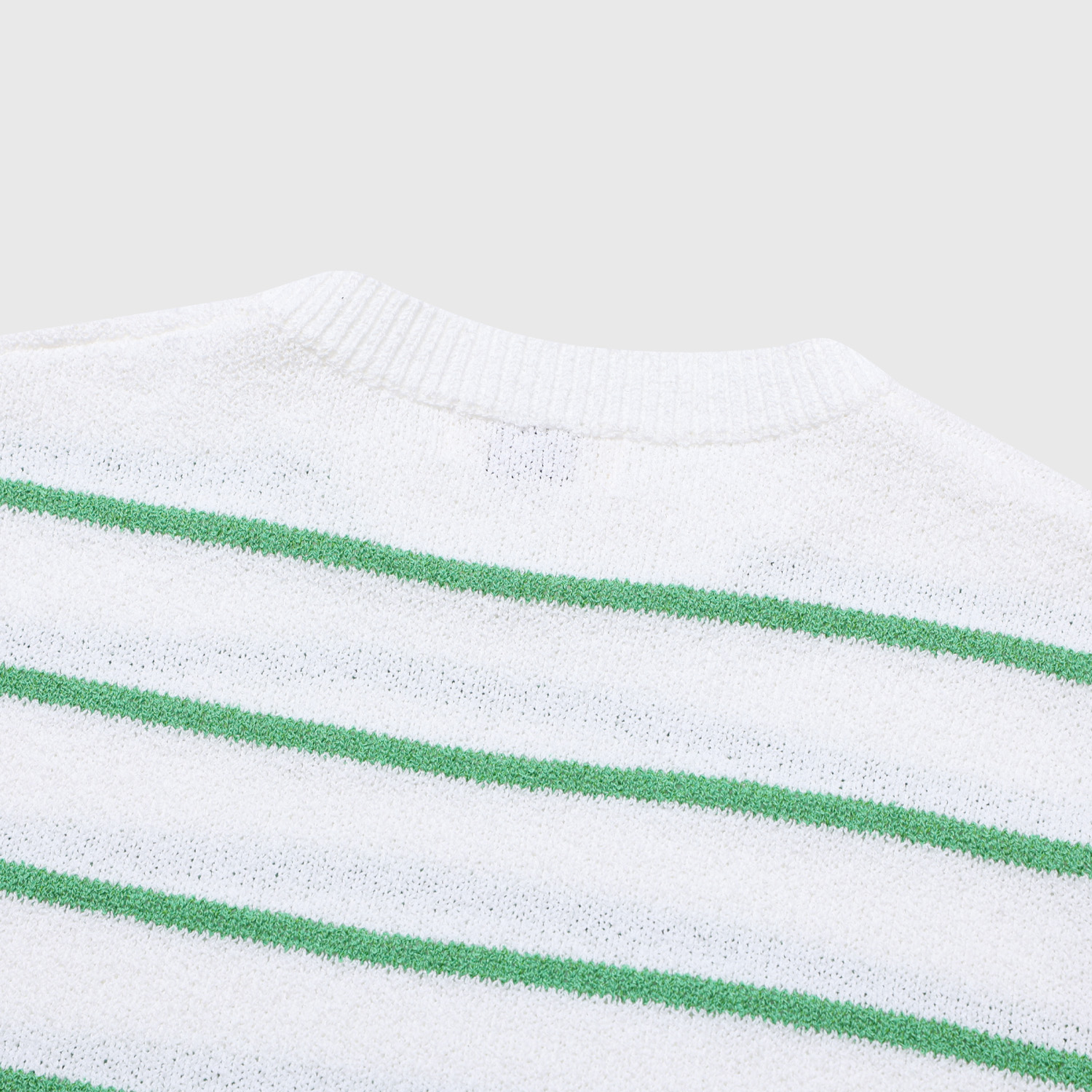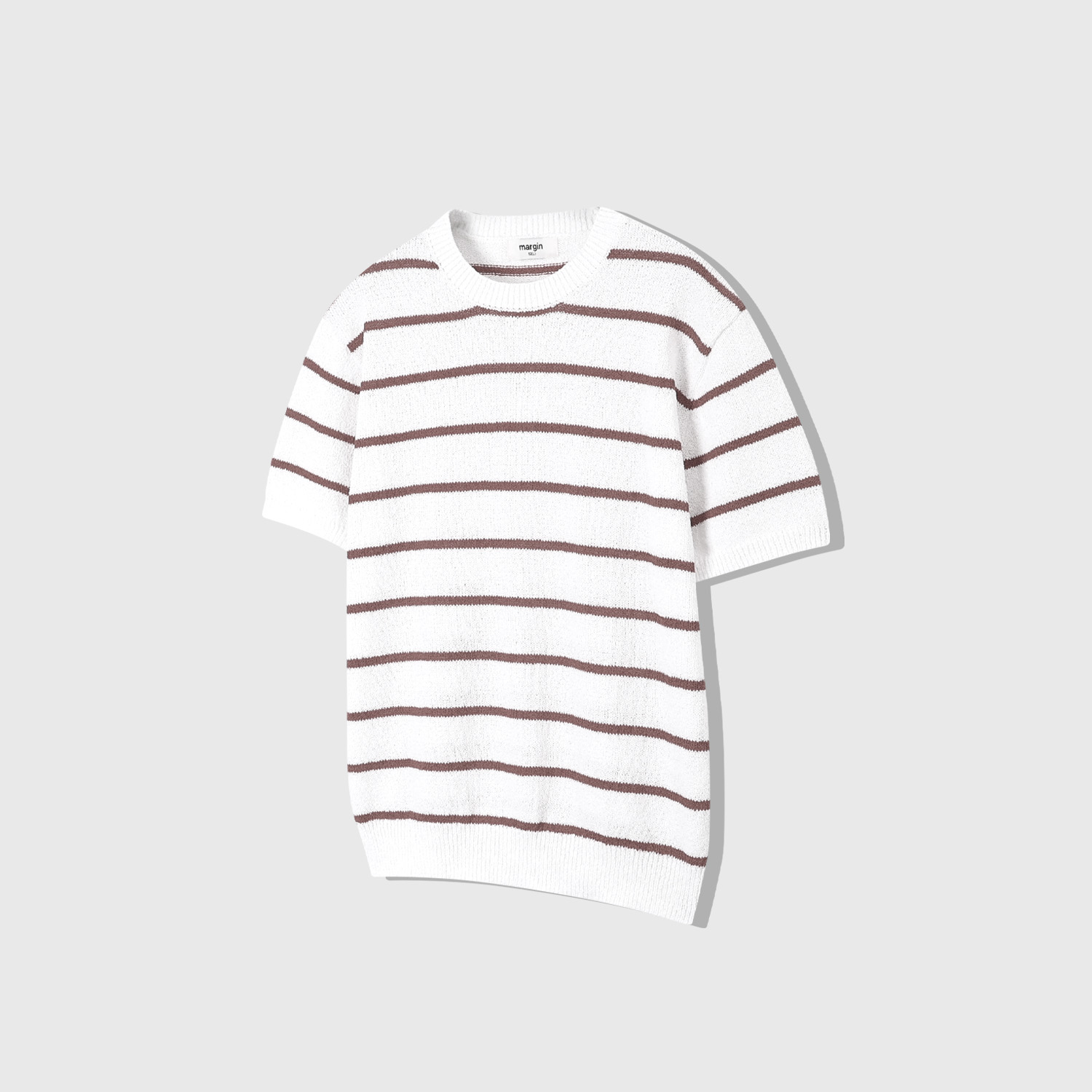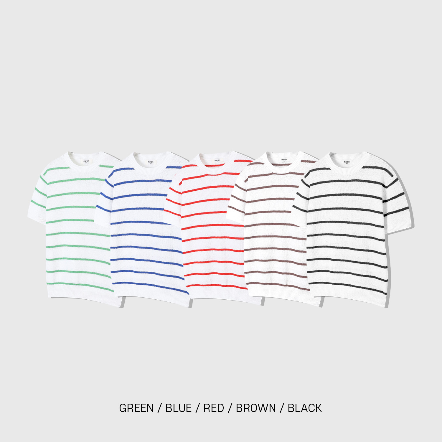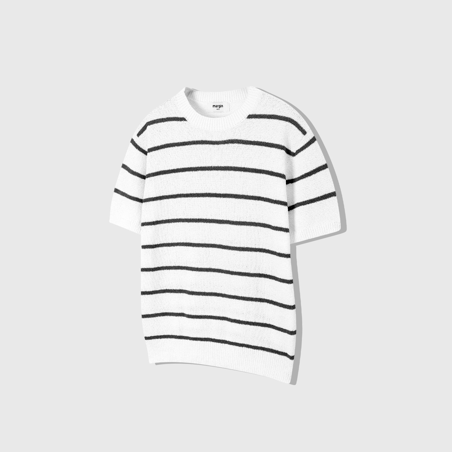 [unisex][ユニセックス] ストライプラウンド半袖ニット