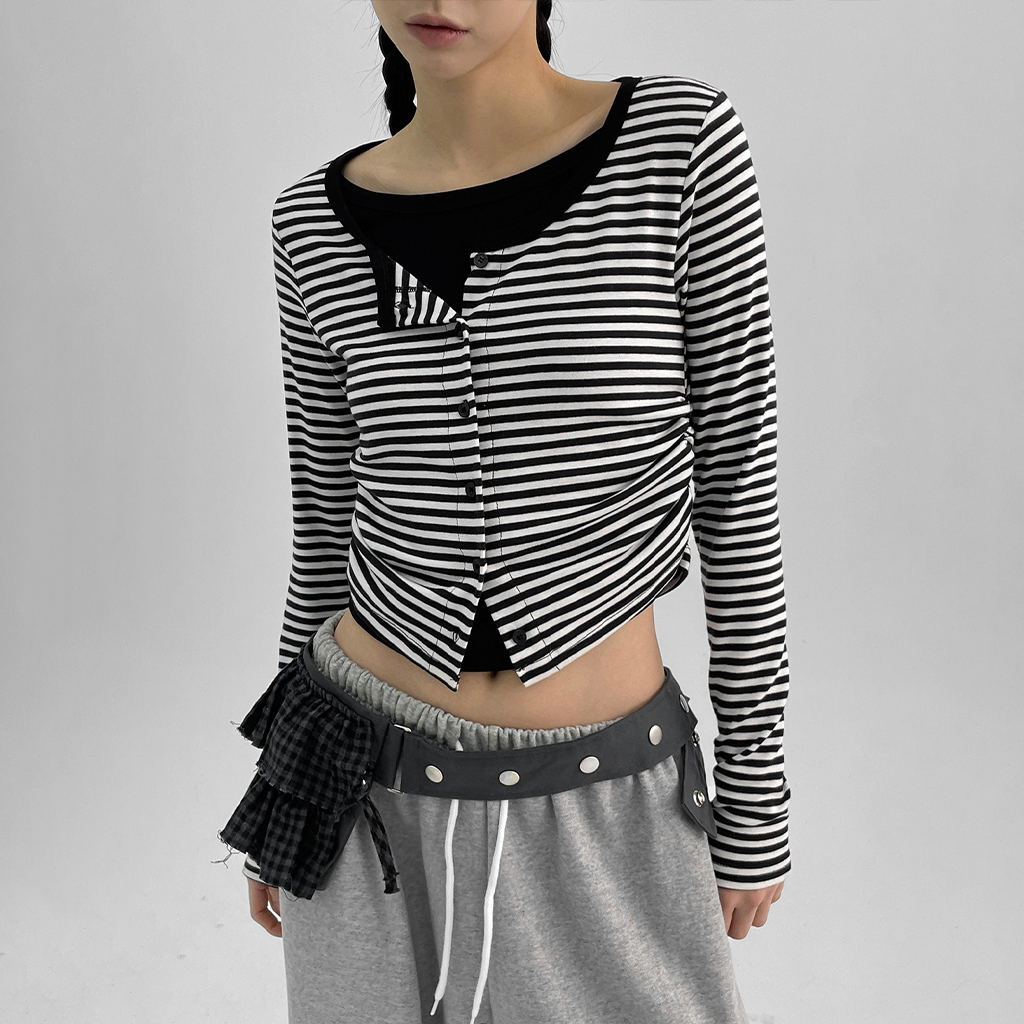 ソンシングストライプシャーリングカーディガンクロップロングファルティ