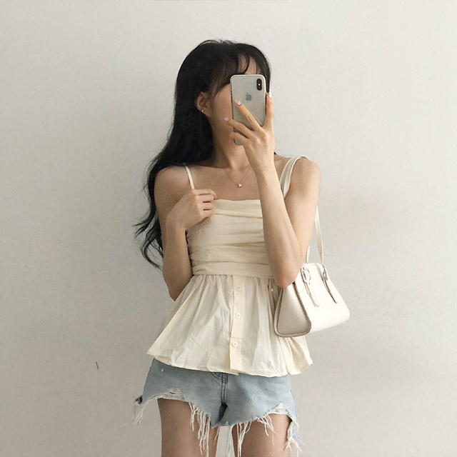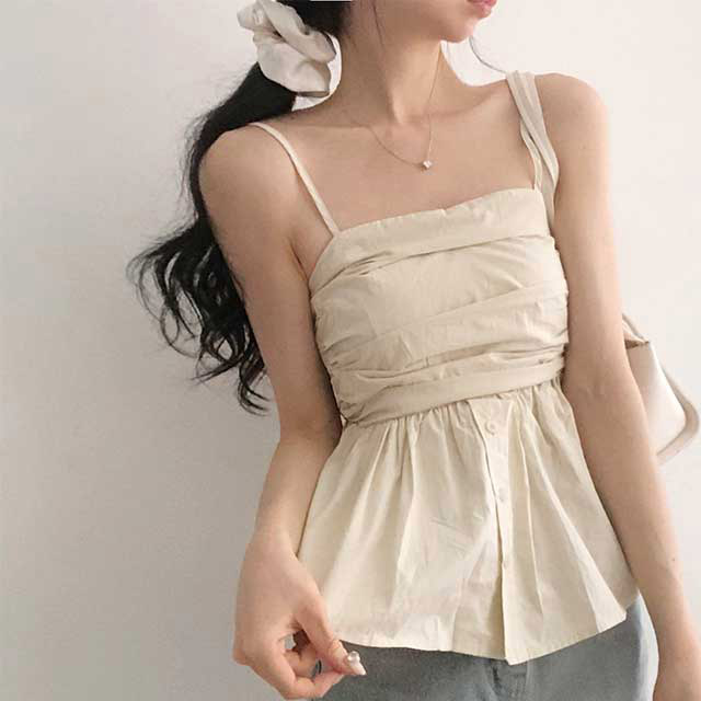 [3color]ブルー ボタン トップキャミソール