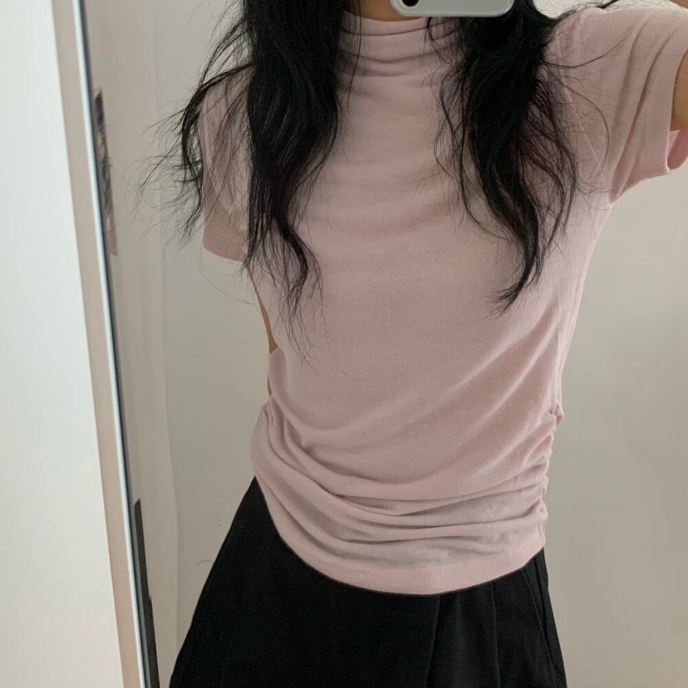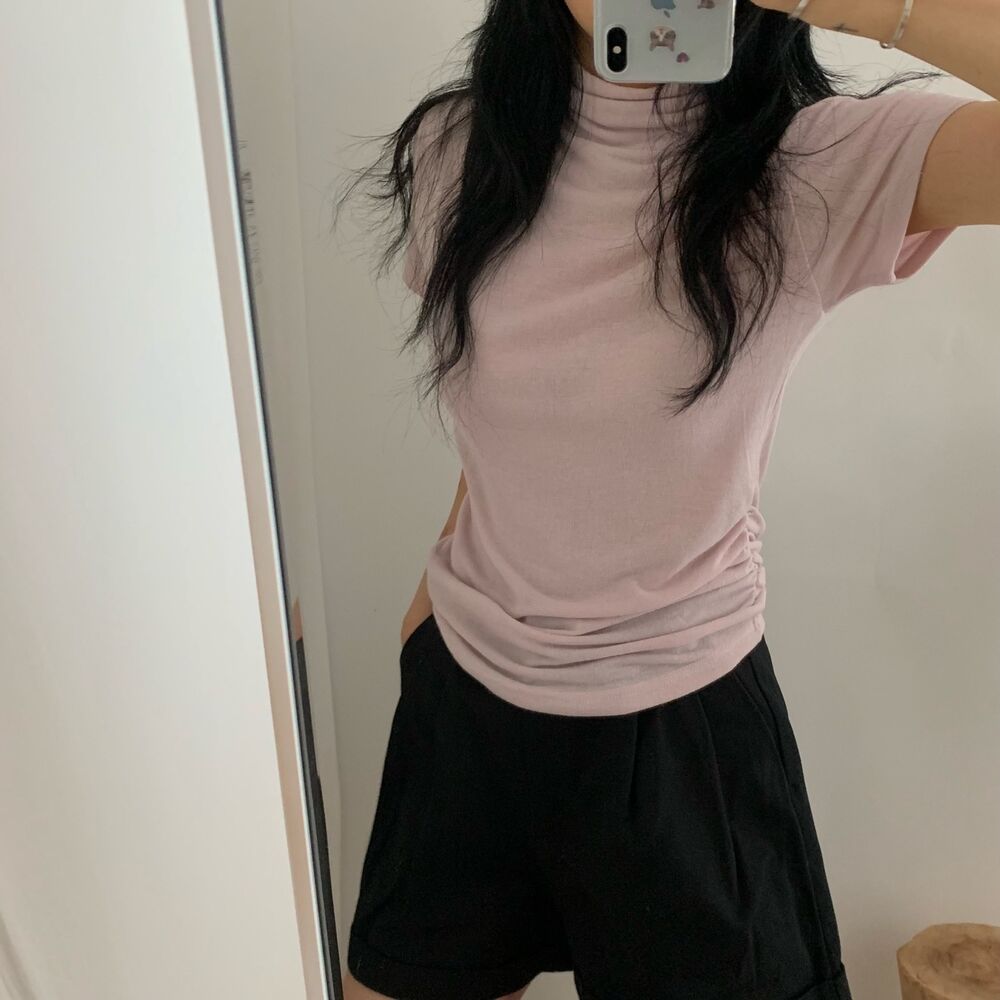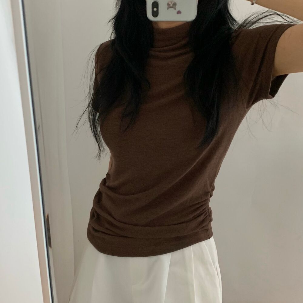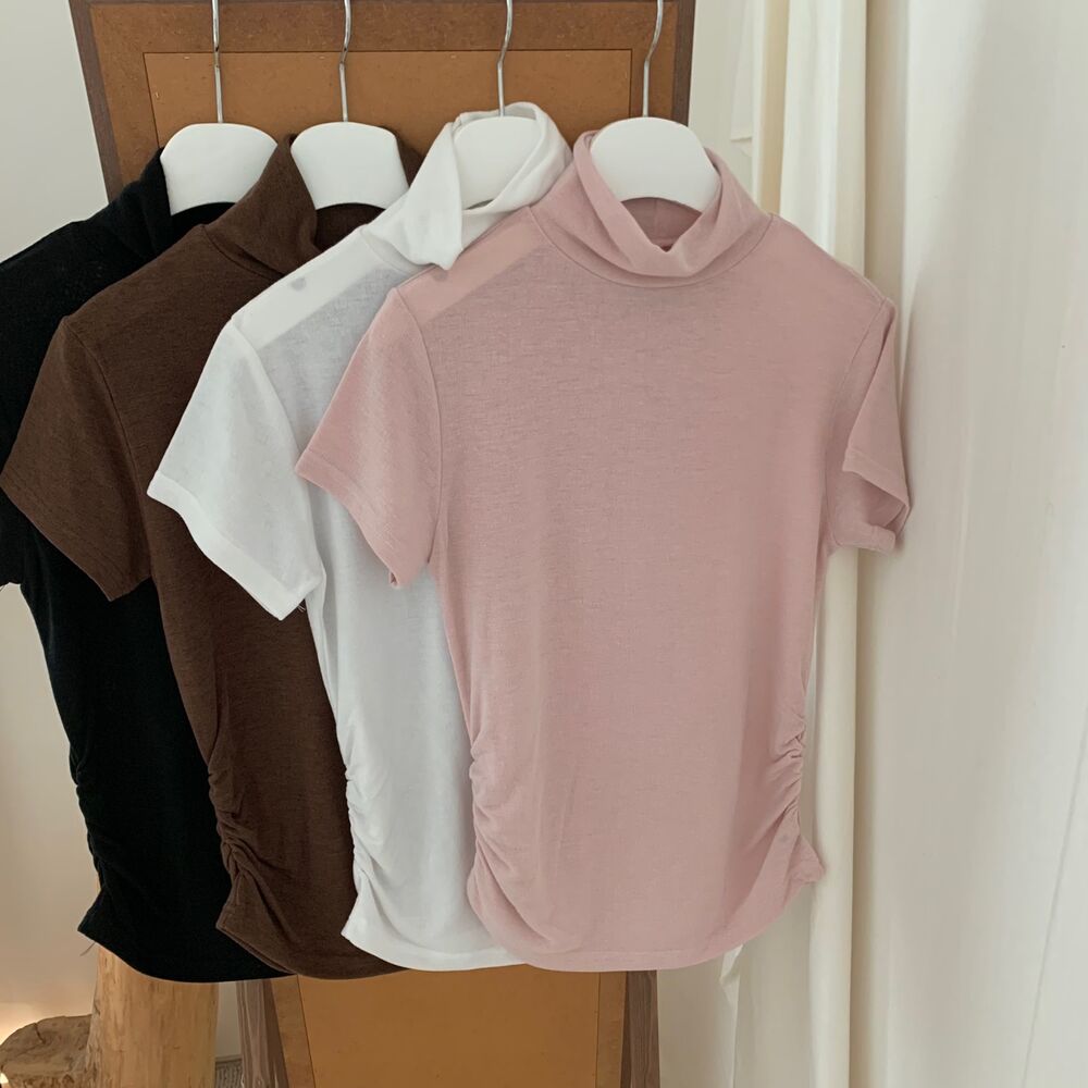 半袖シャーリングタートルネックTシャツ