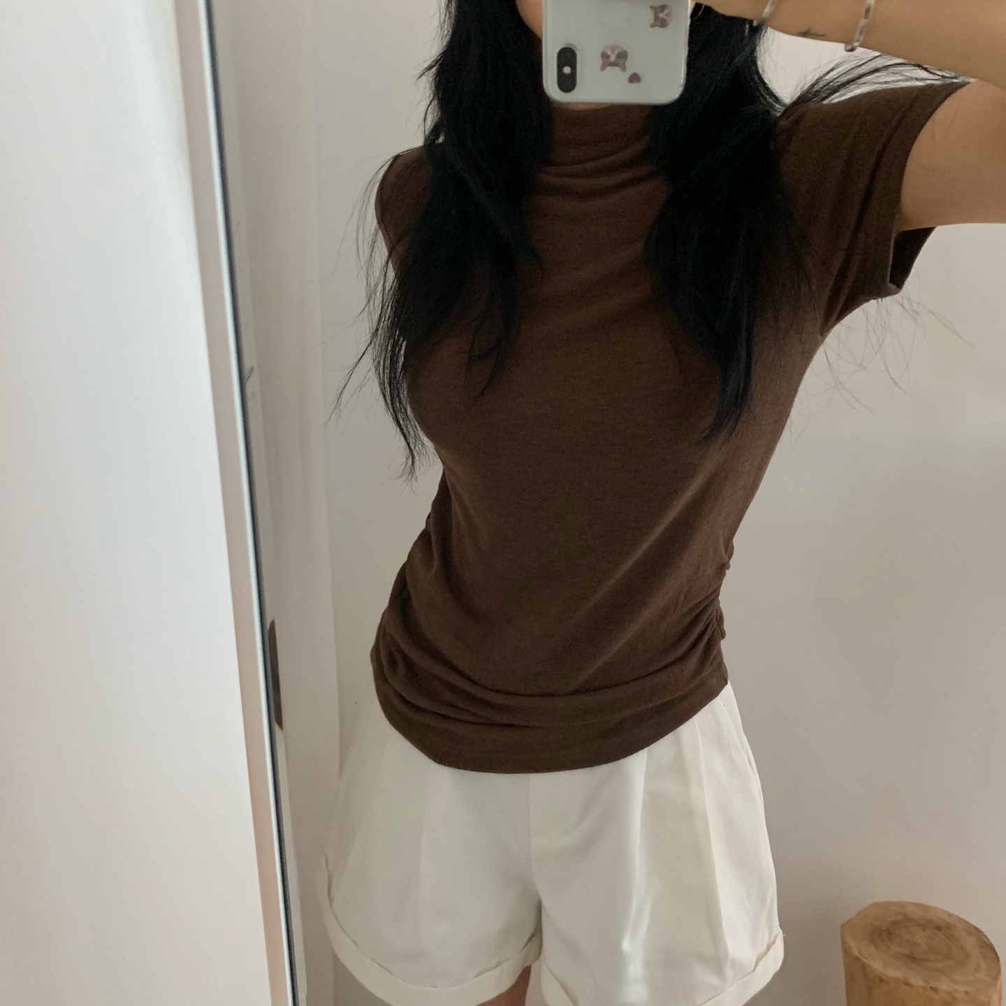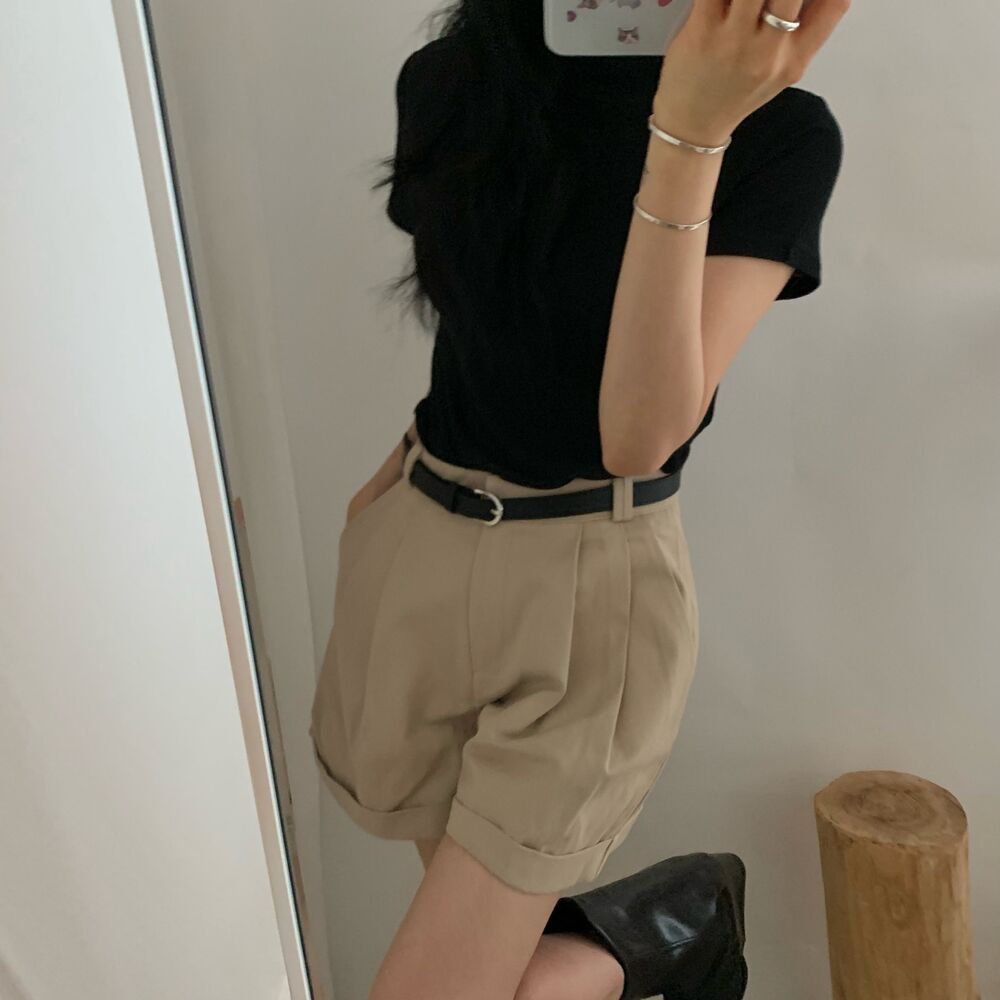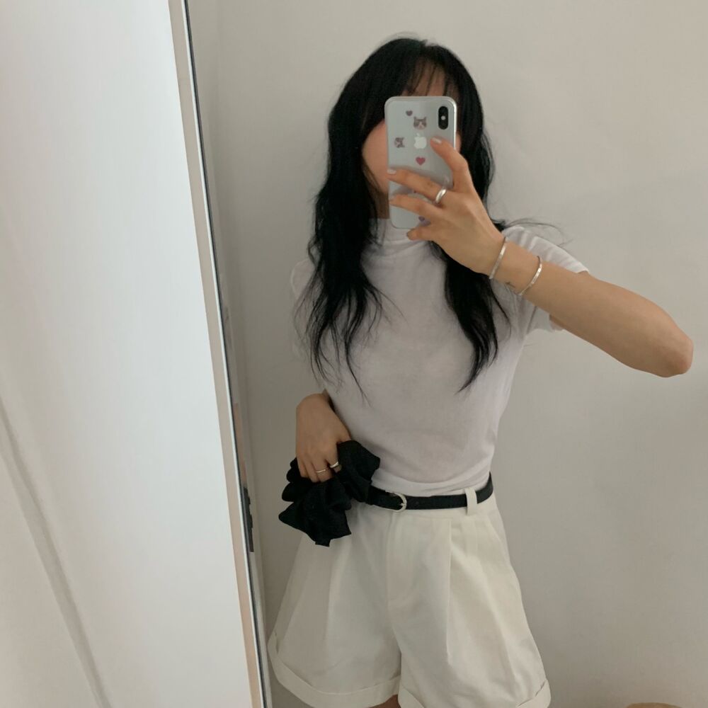 半袖シャーリングタートルネックTシャツ