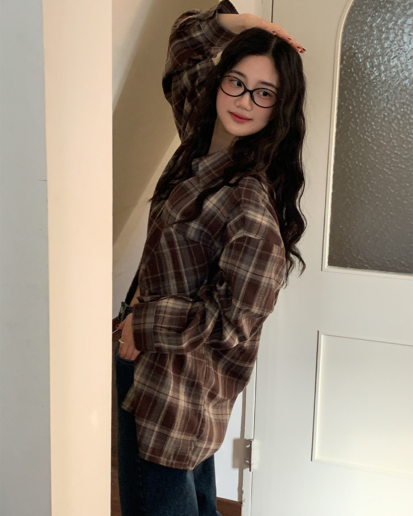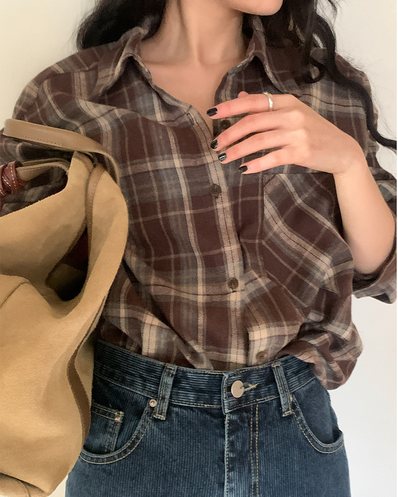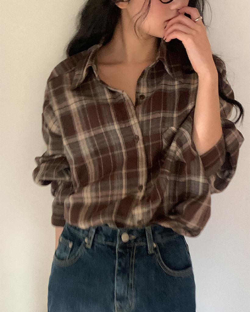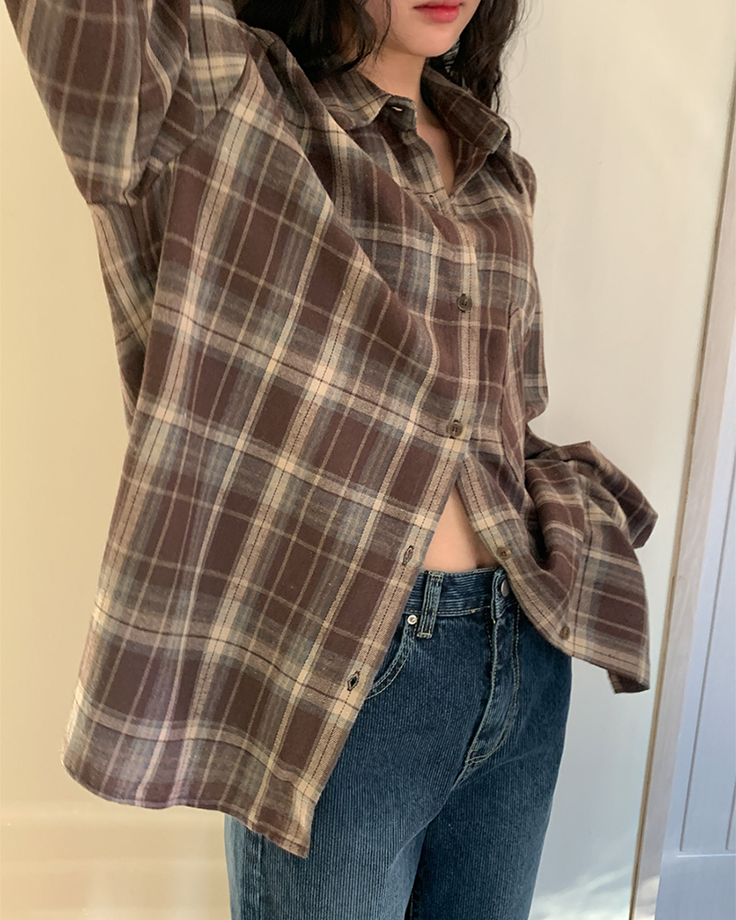 コットン裏起毛チェックオーバーサイズシャツ