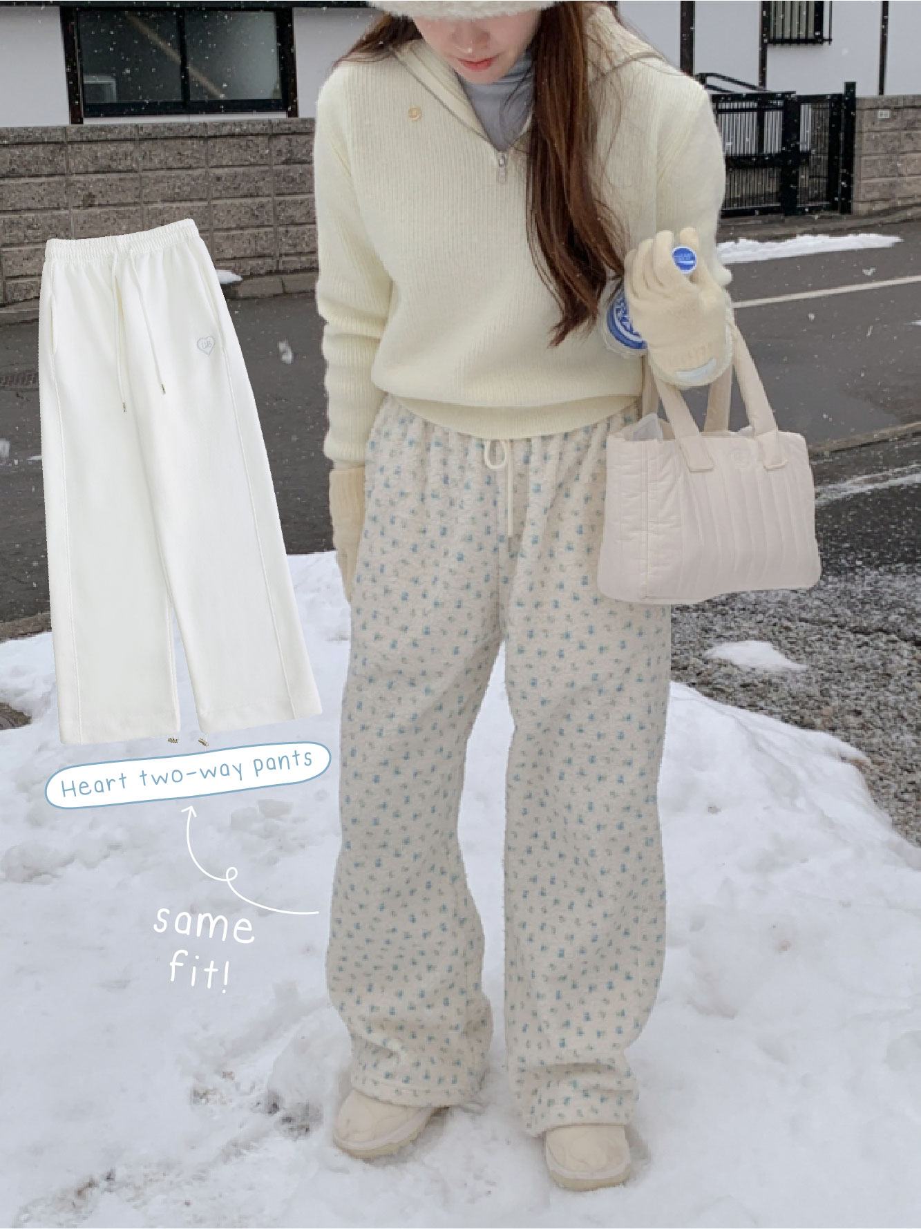 [original]プチフラワーブークレ裏起毛2WAYジョガーパンツ