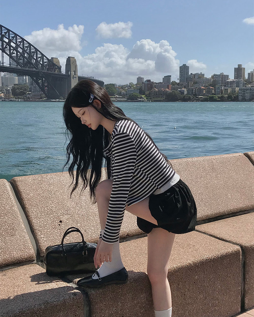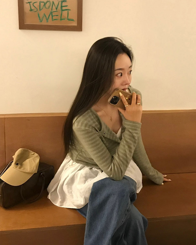 ボタンをいくつか外すとナチュラルに見える鎖骨ラインで華奢なムードまで演出できます!