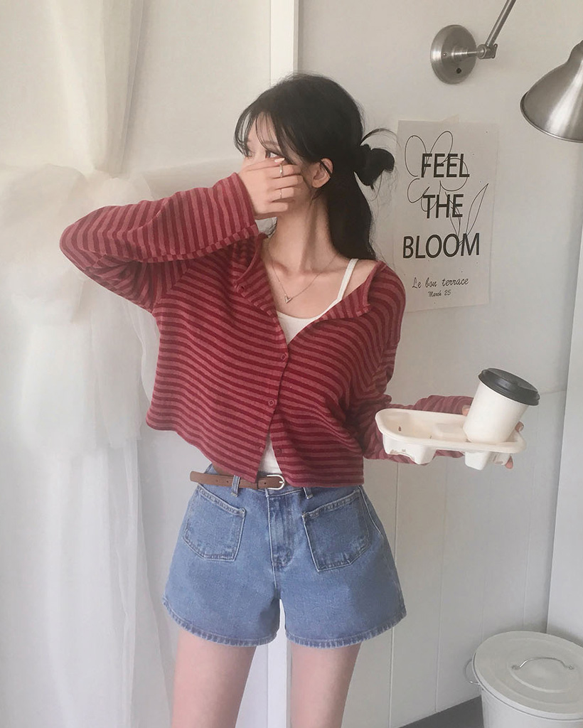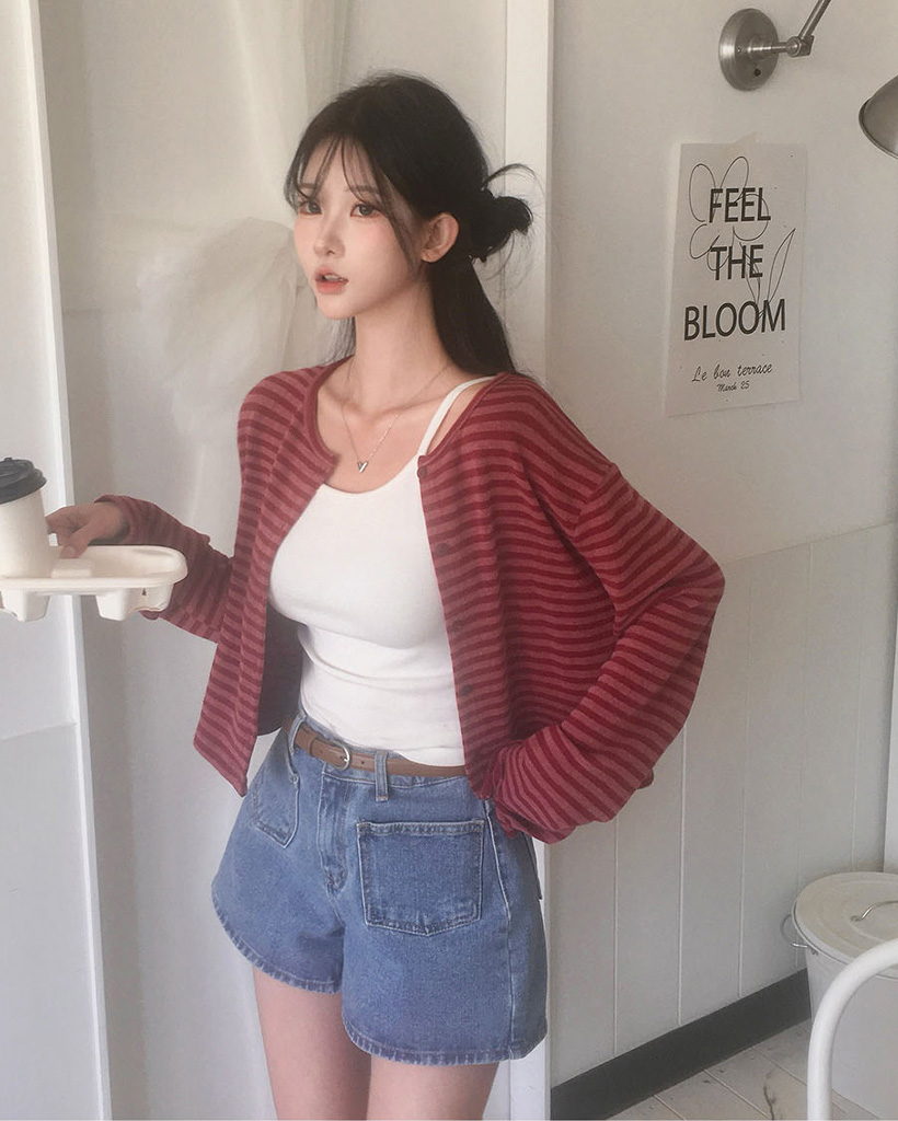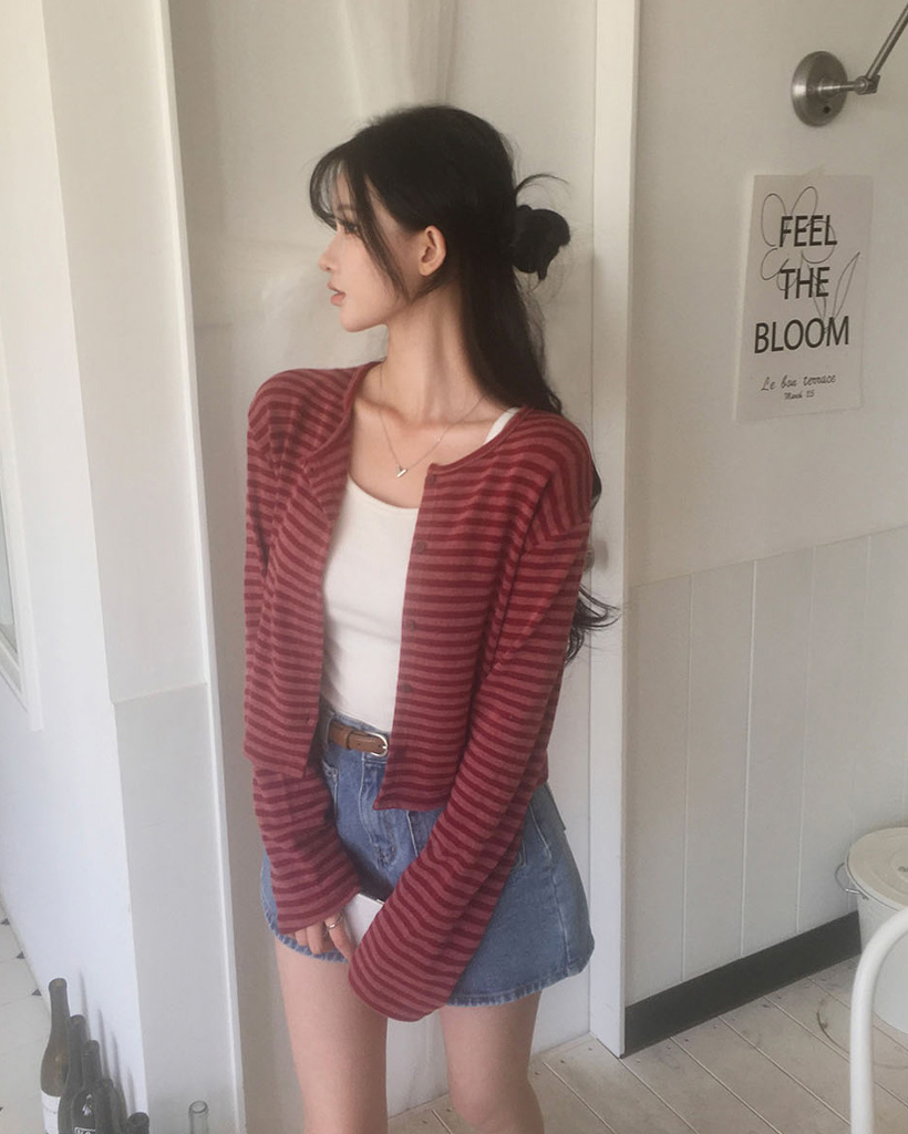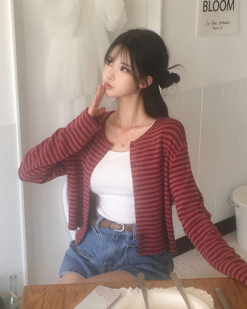 [MADE] ジブリ、ストライプクロップドカーディガン