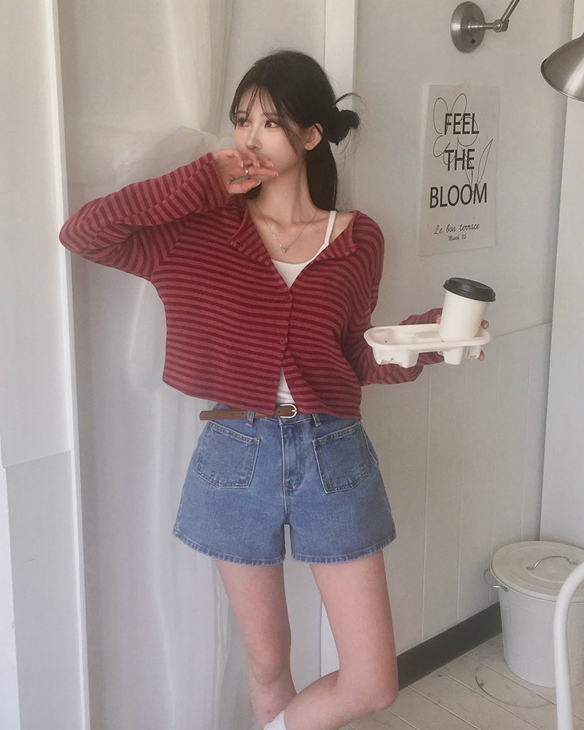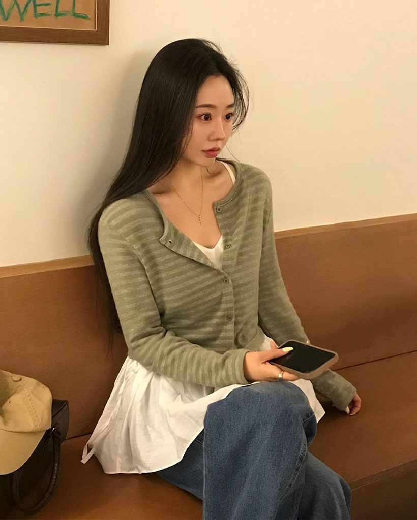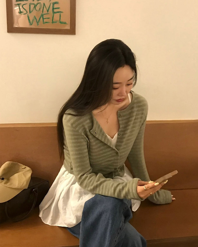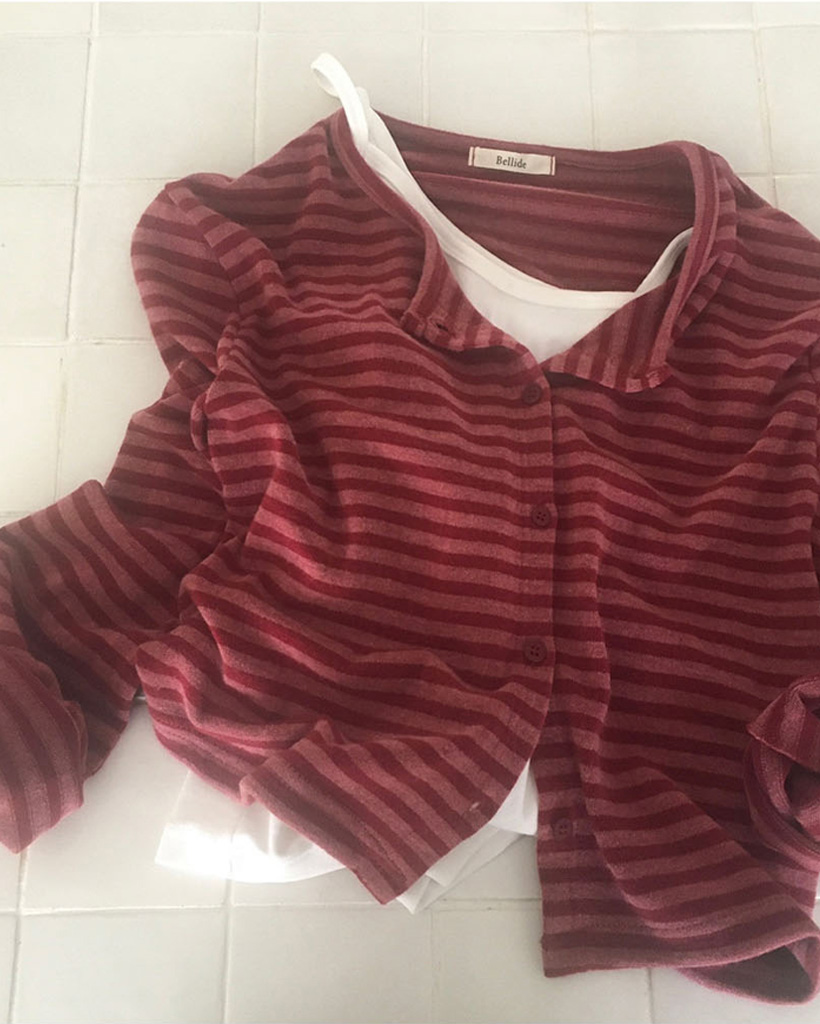 [MADE] ジブリ、ストライプクロップドカーディガン