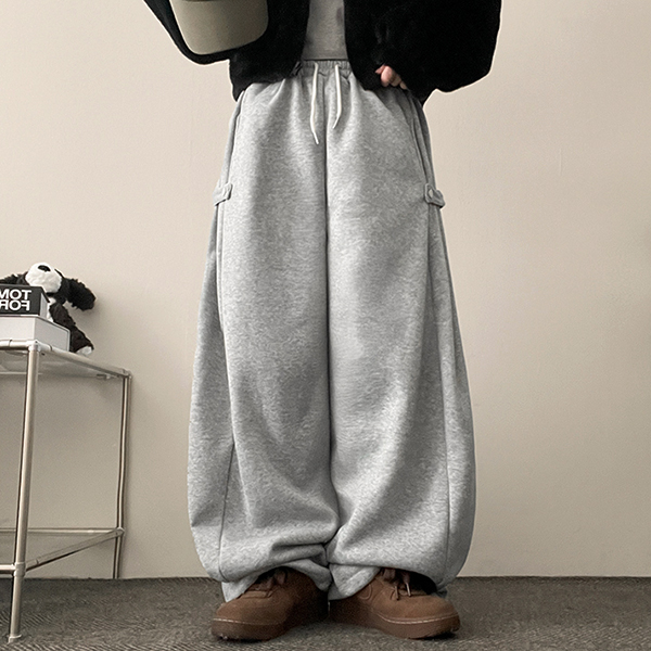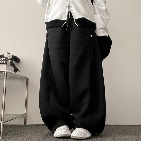 裏起毛サイドバックルワイドゴムパンツ